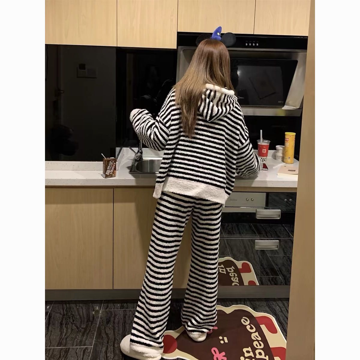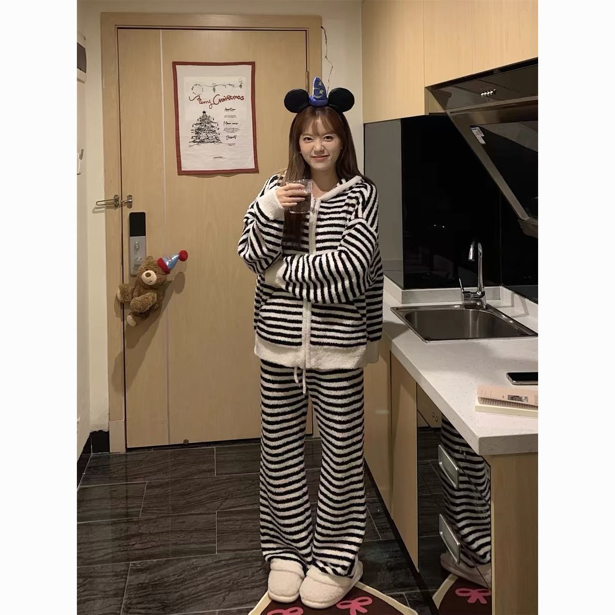 半边绒睡衣女冬季2024新款加厚加绒珊瑚绒家居服套装秋冬天可外穿
