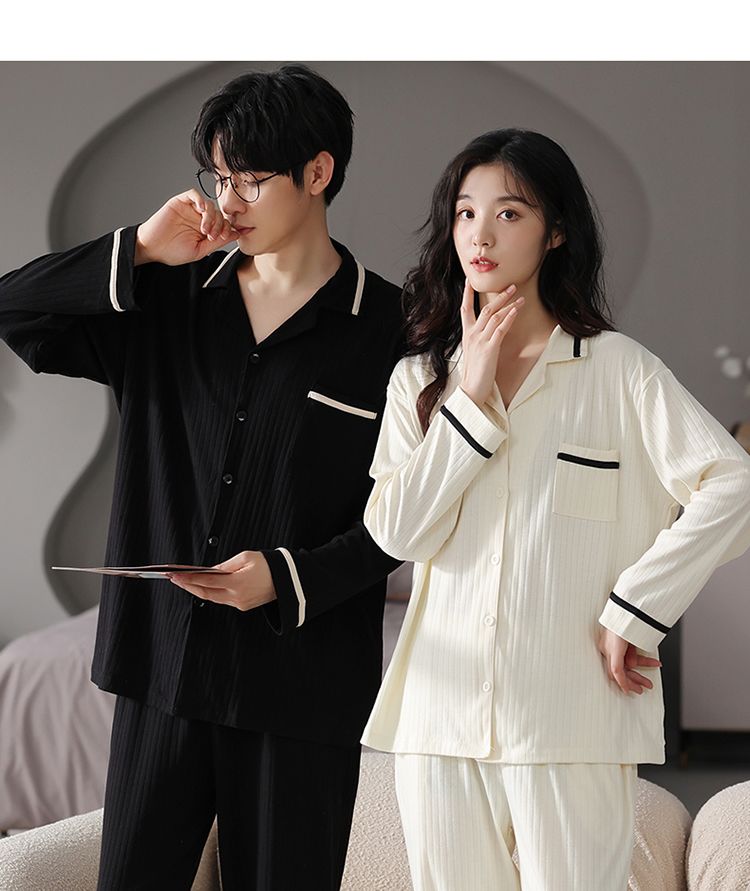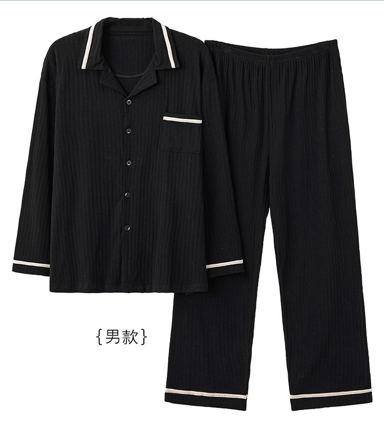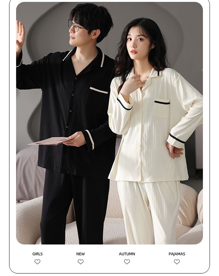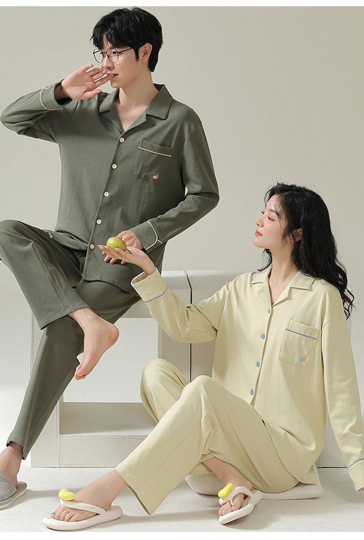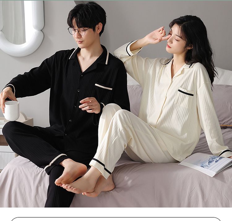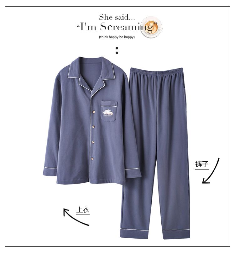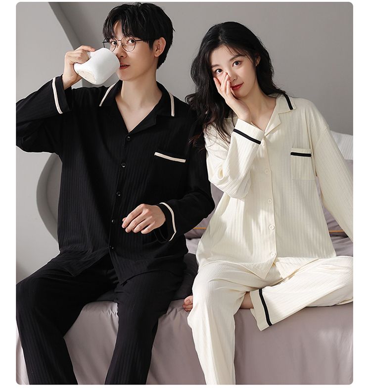 浪莎情侣睡衣春秋季纯棉开衫长袖宽松大码家居服一男一女两件套装