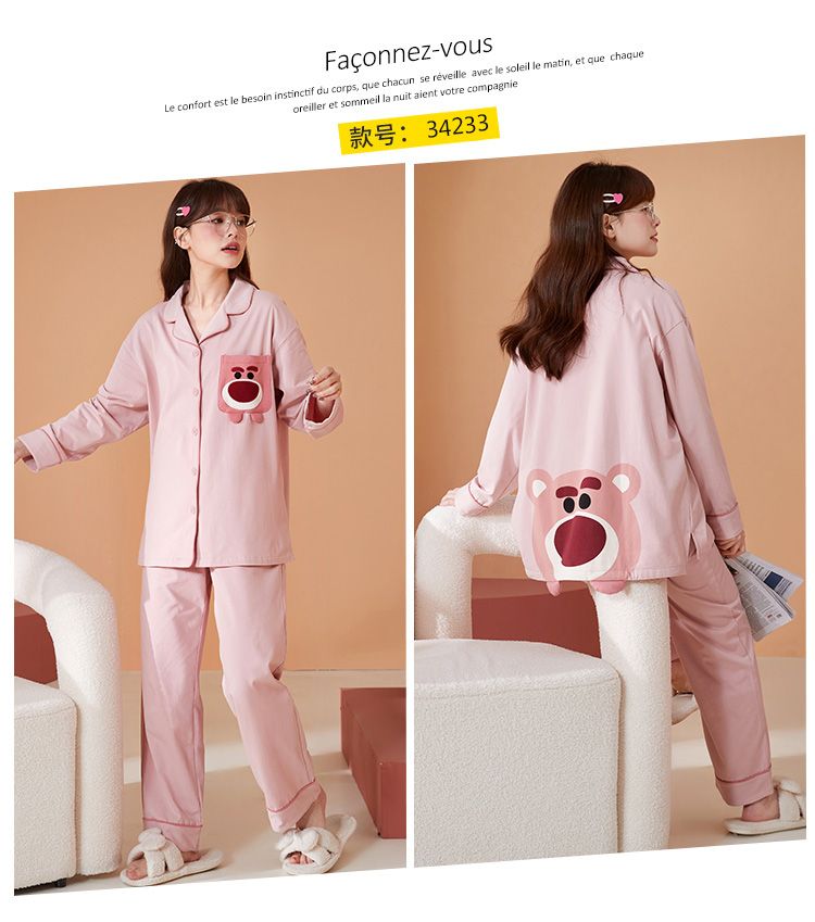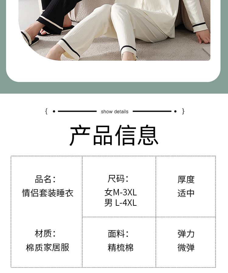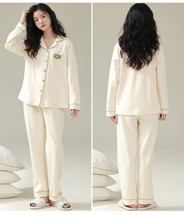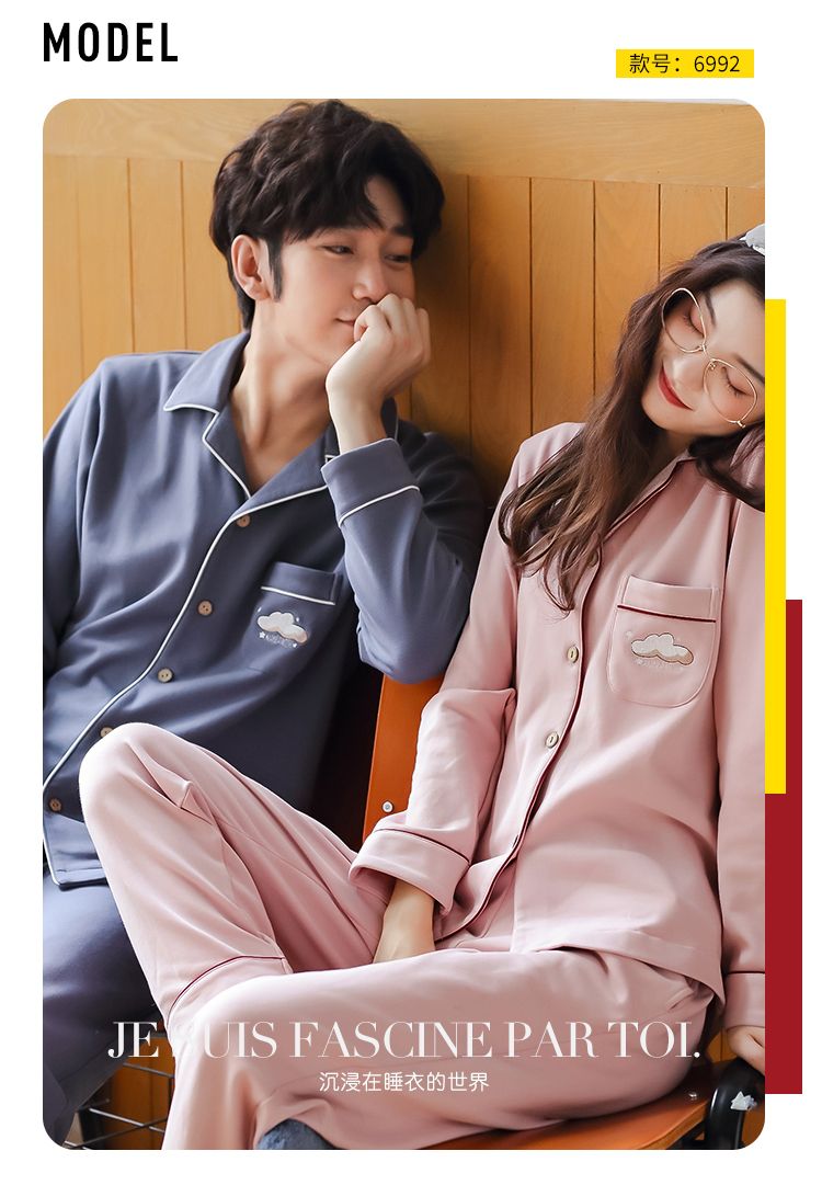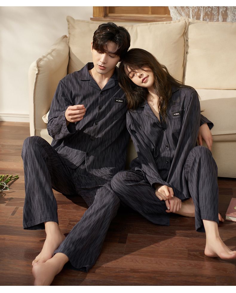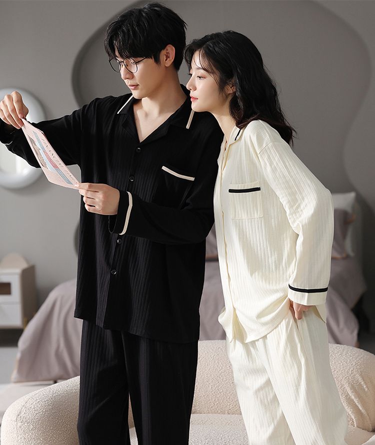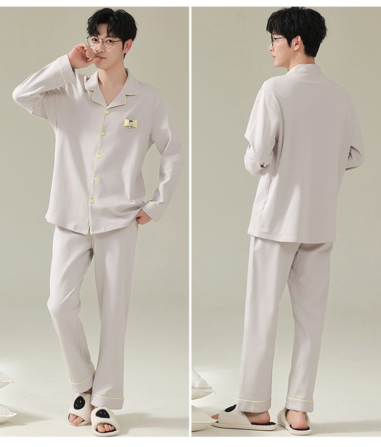 浪莎情侣睡衣春秋季纯棉开衫长袖宽松大码家居服一男一女两件套装