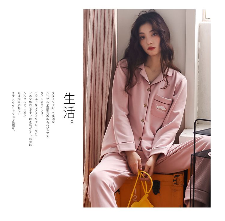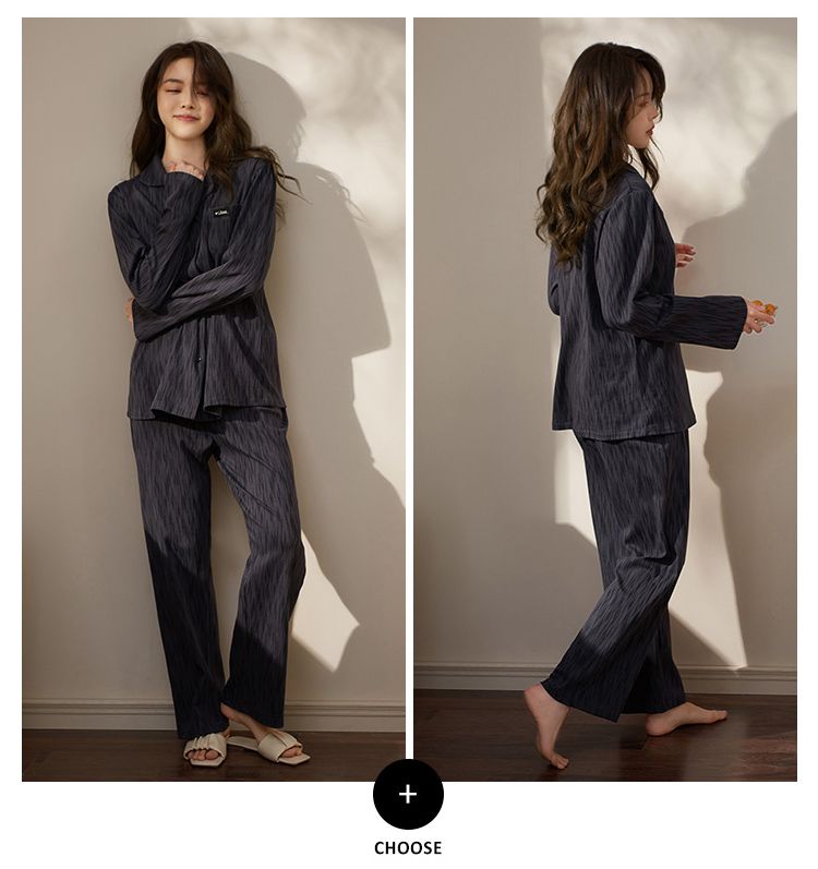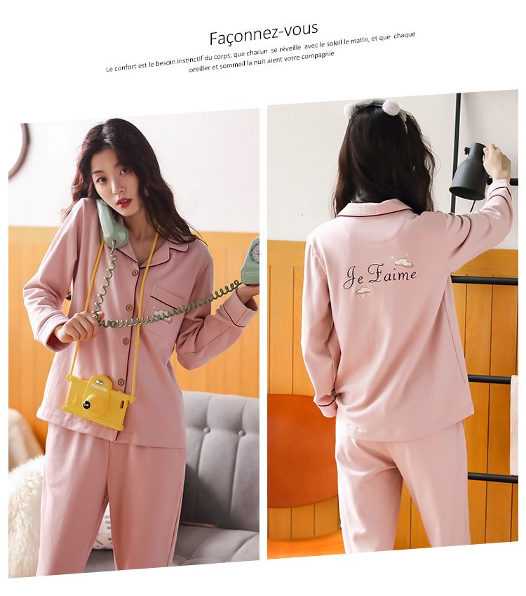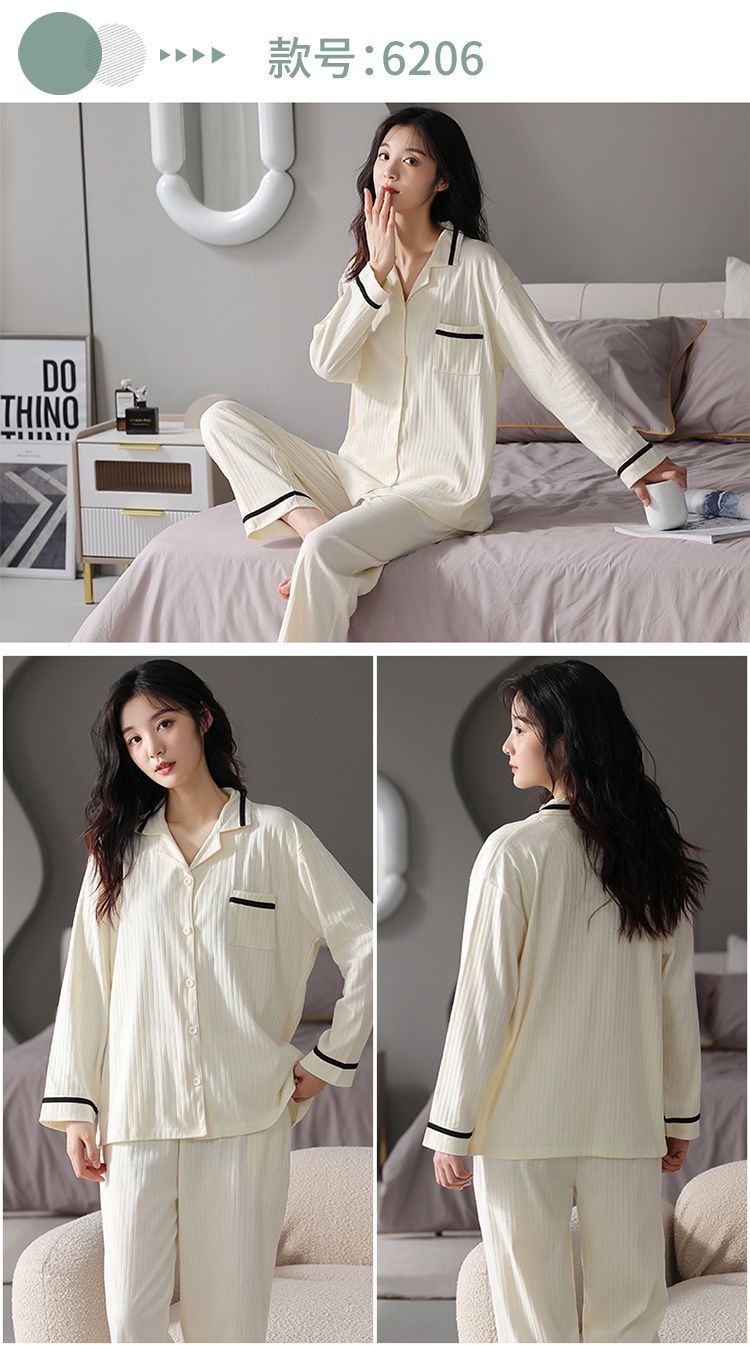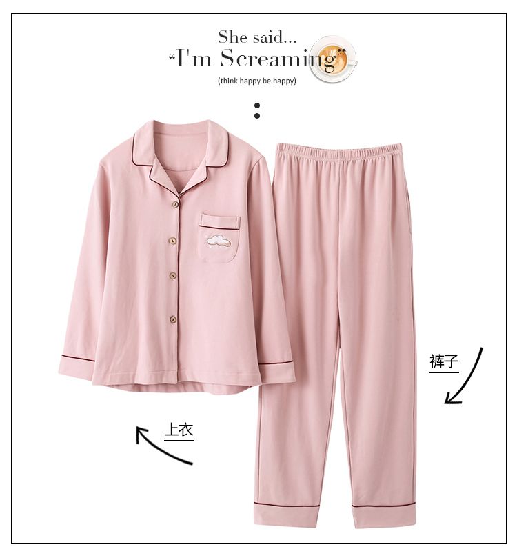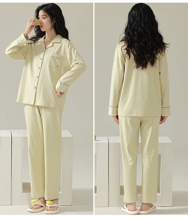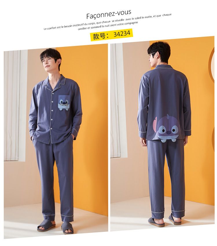 浪莎情侣睡衣春秋季纯棉开衫长袖宽松大码家居服一男一女两件套装