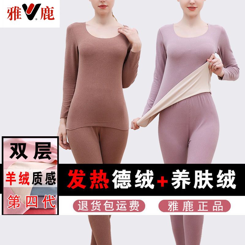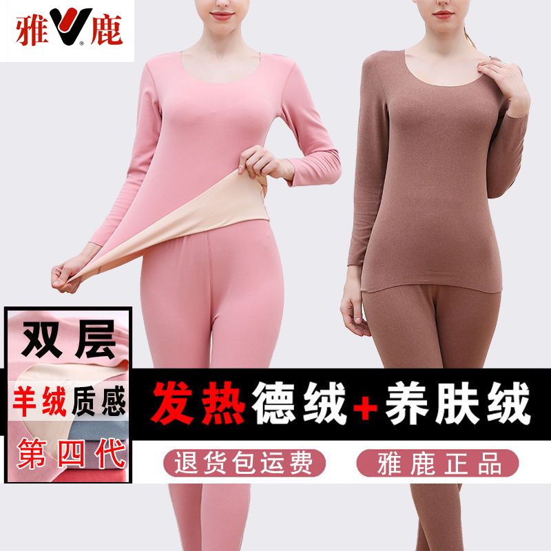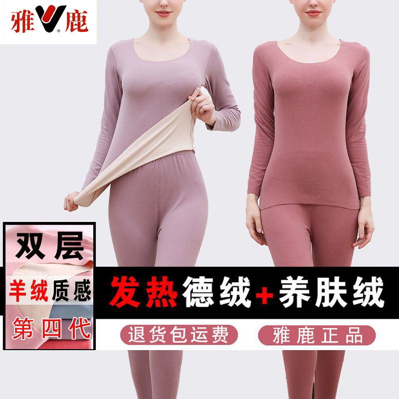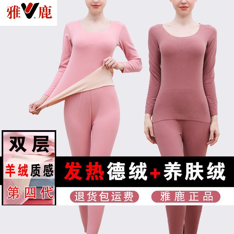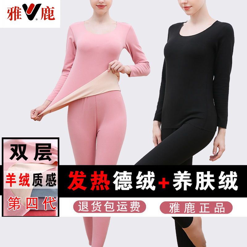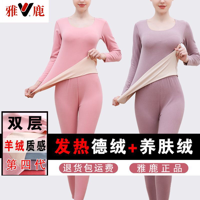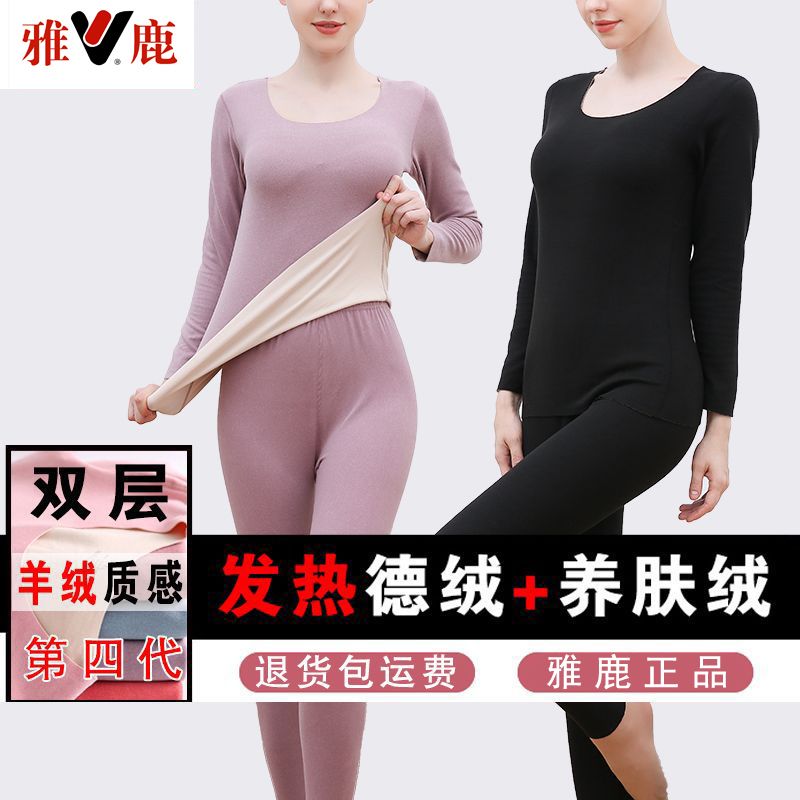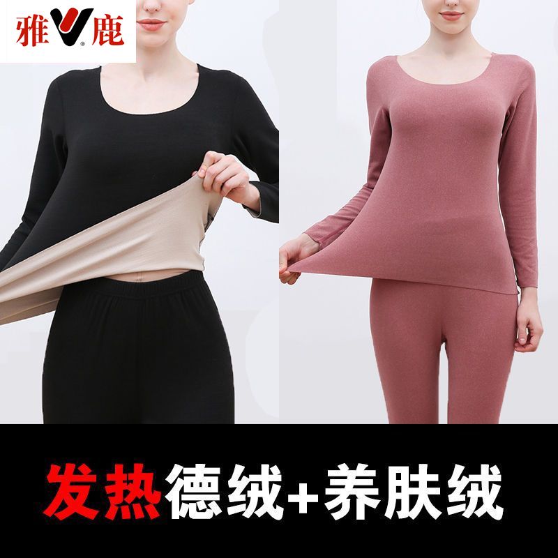 【雅鹿】新款德绒保暖内衣女自发热双面无痕打底薄款秋衣秋裤套装