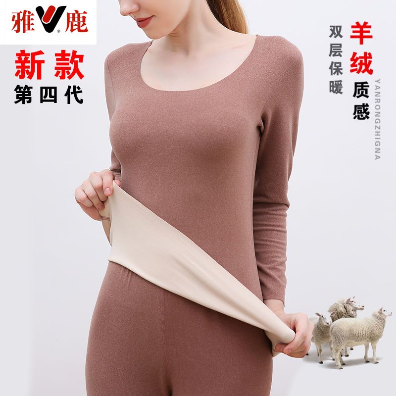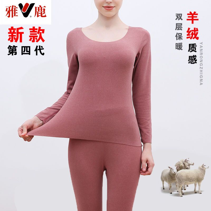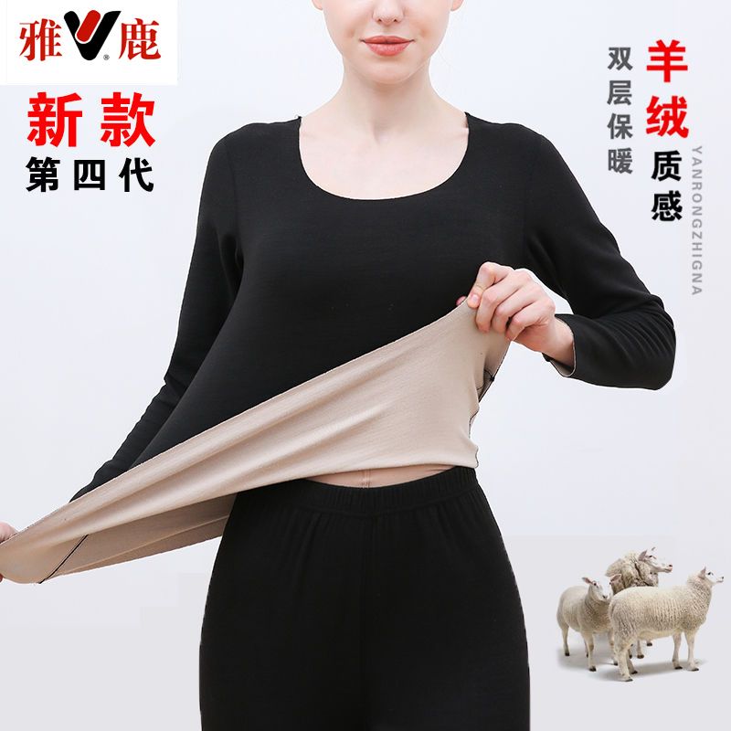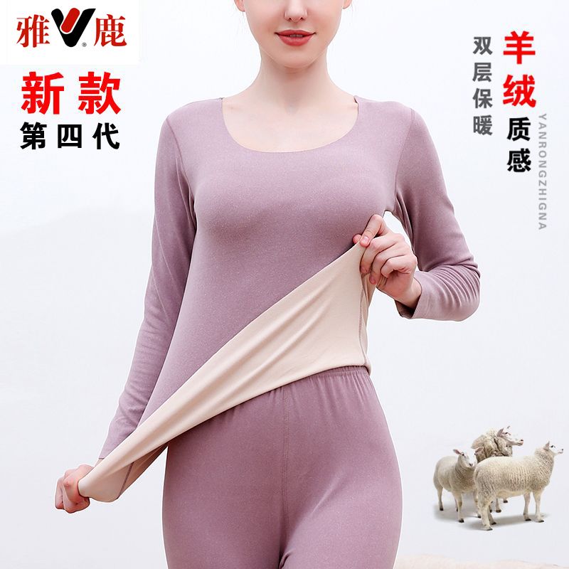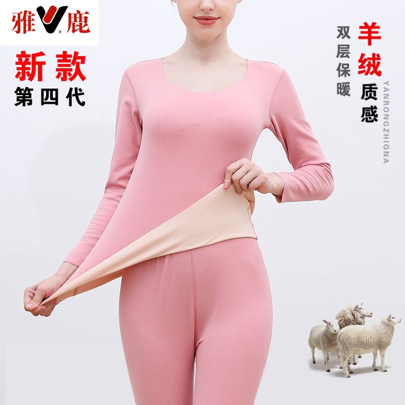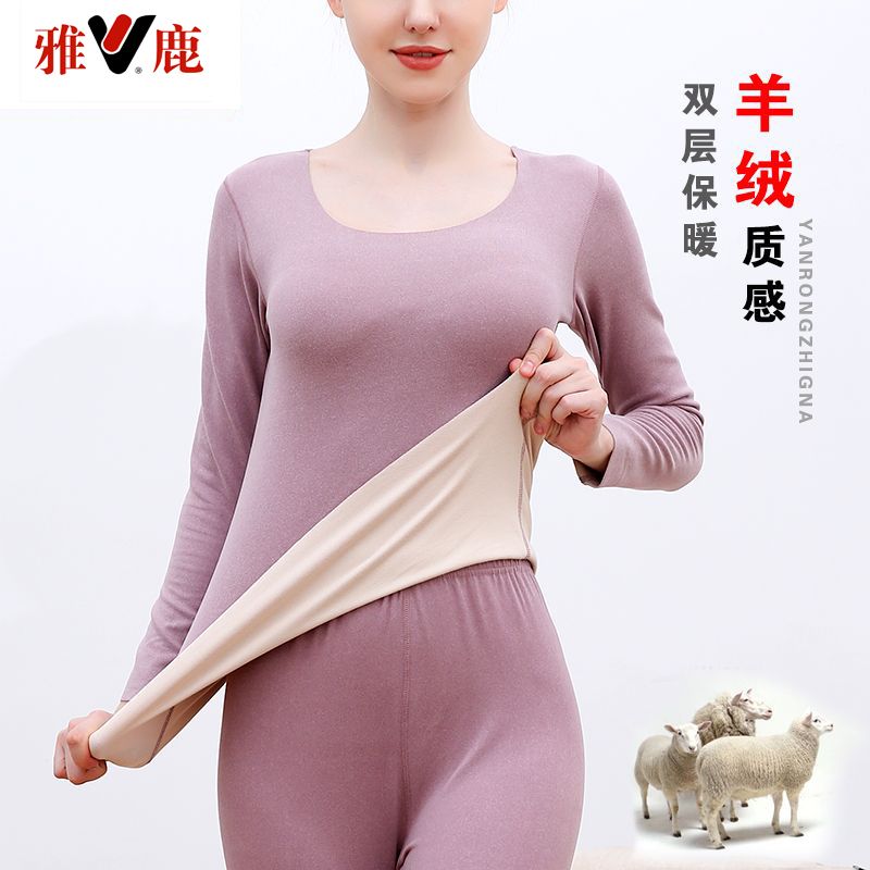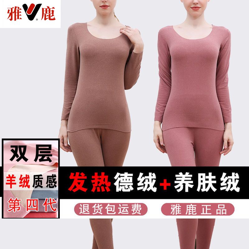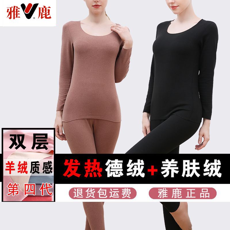 【雅鹿】新款德绒保暖内衣女自发热双面无痕打底薄款秋衣秋裤套装