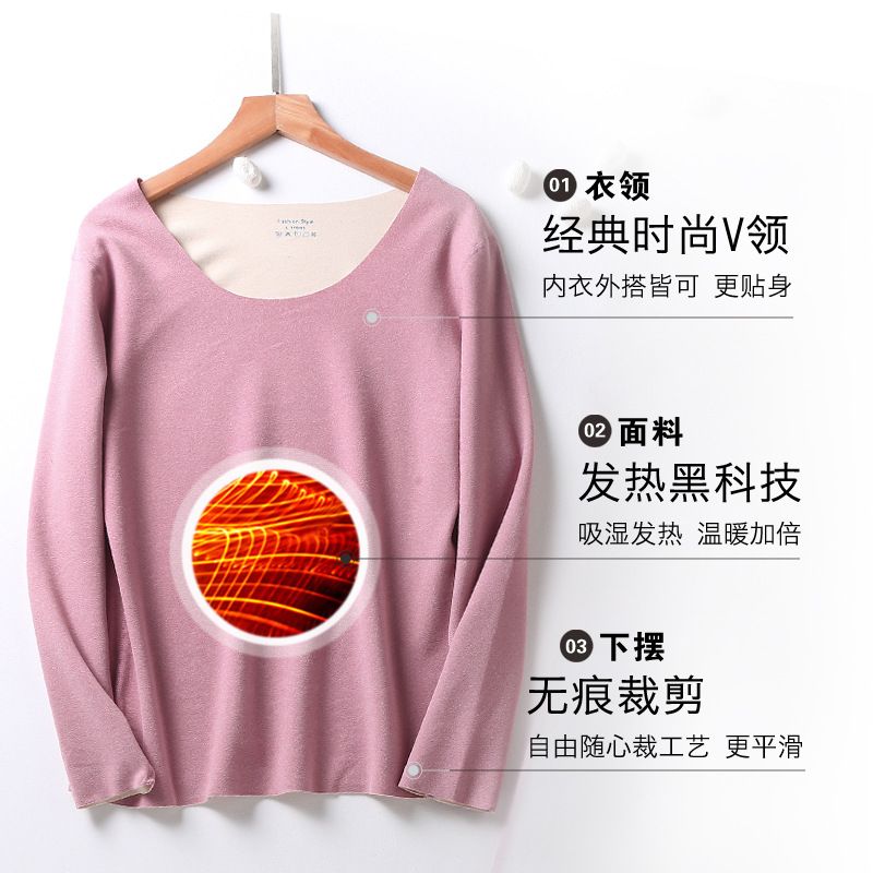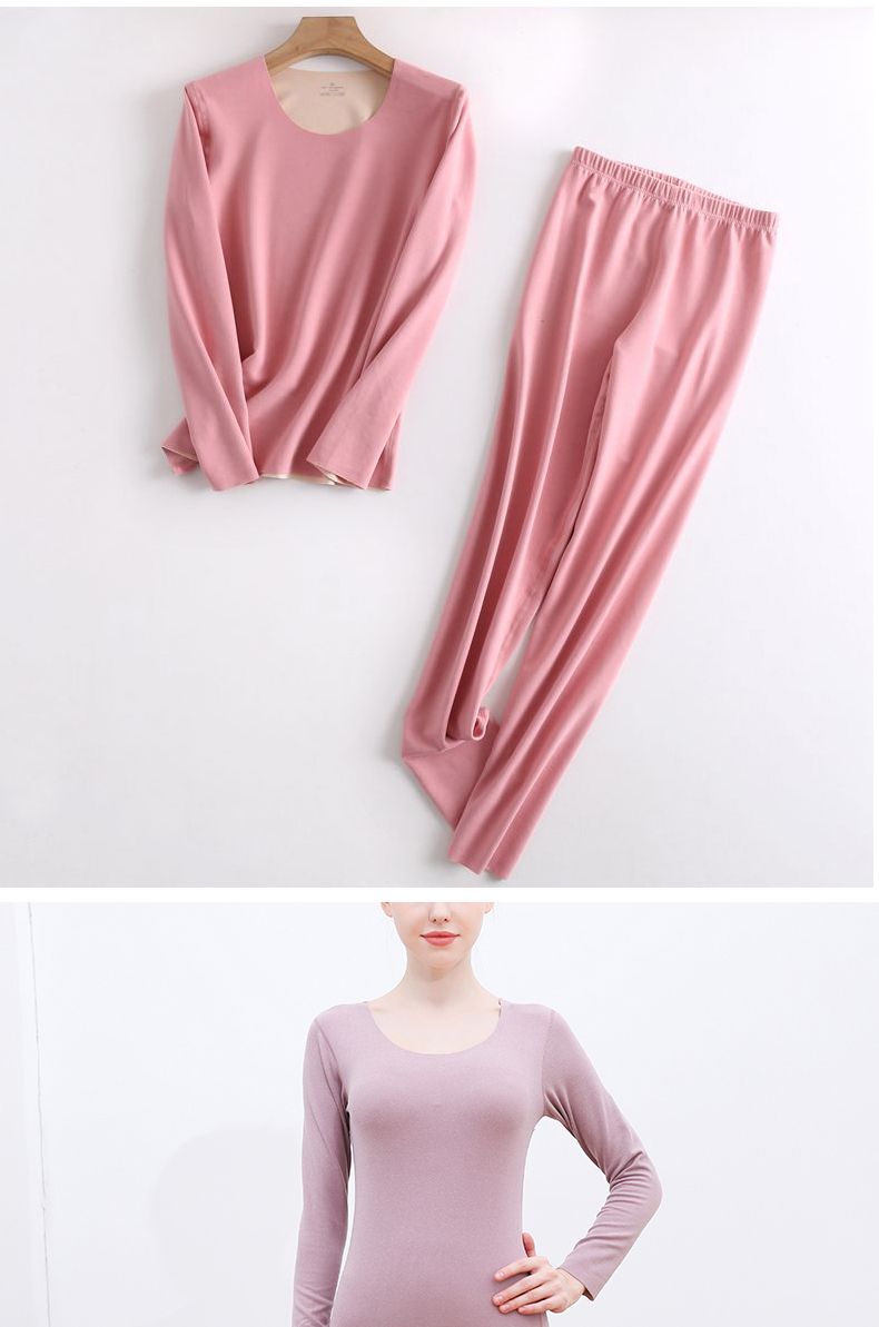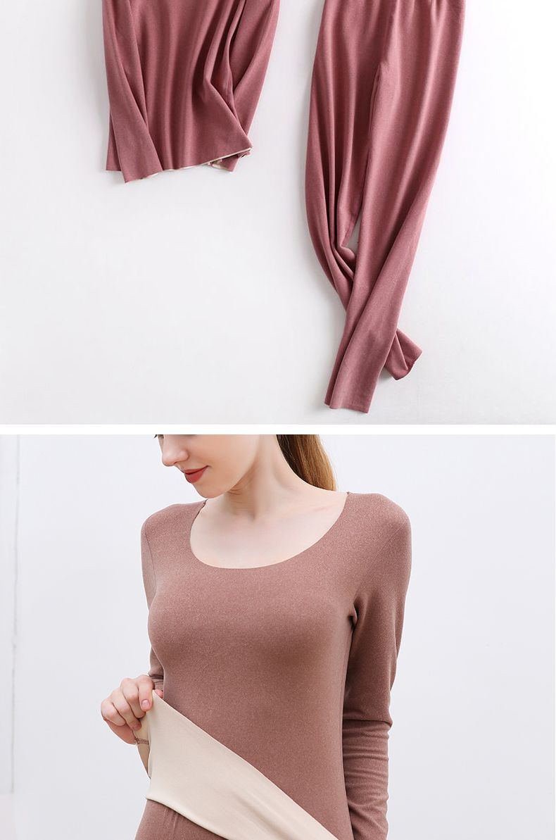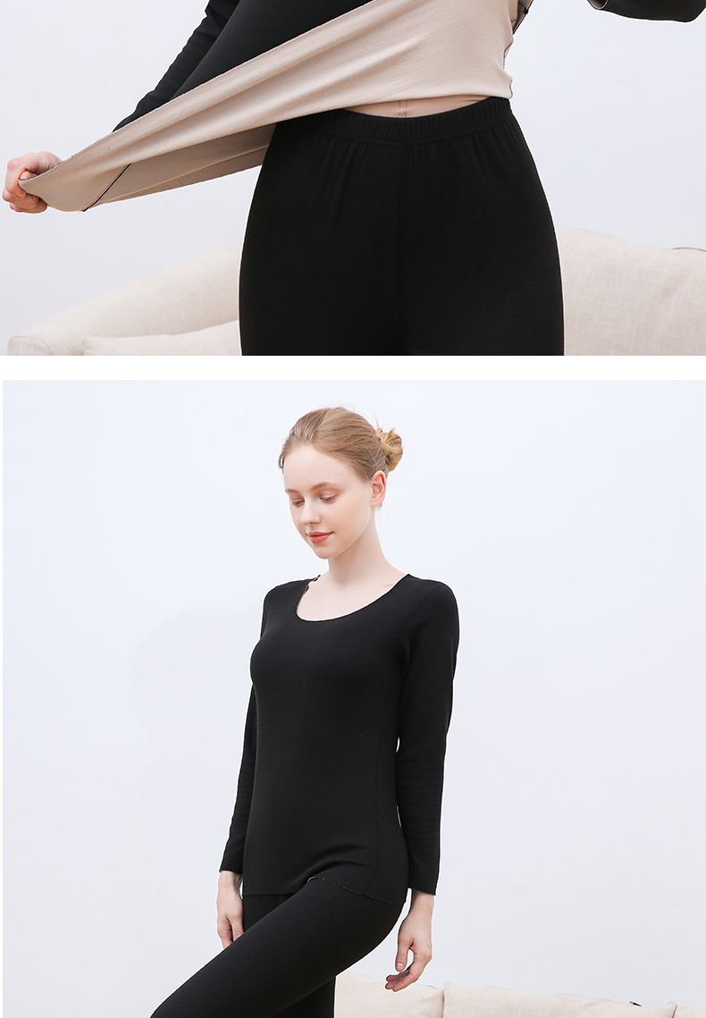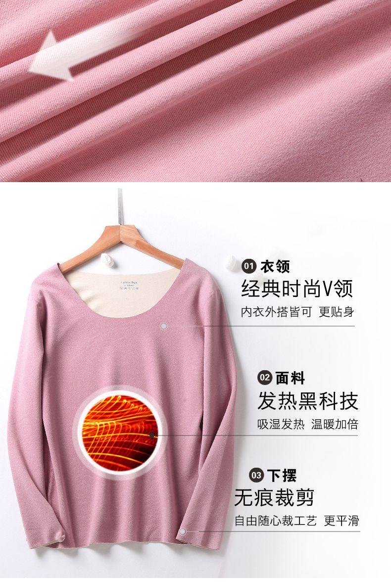 【雅鹿】新款德绒保暖内衣女自发热双面无痕打底薄款秋衣秋裤套装