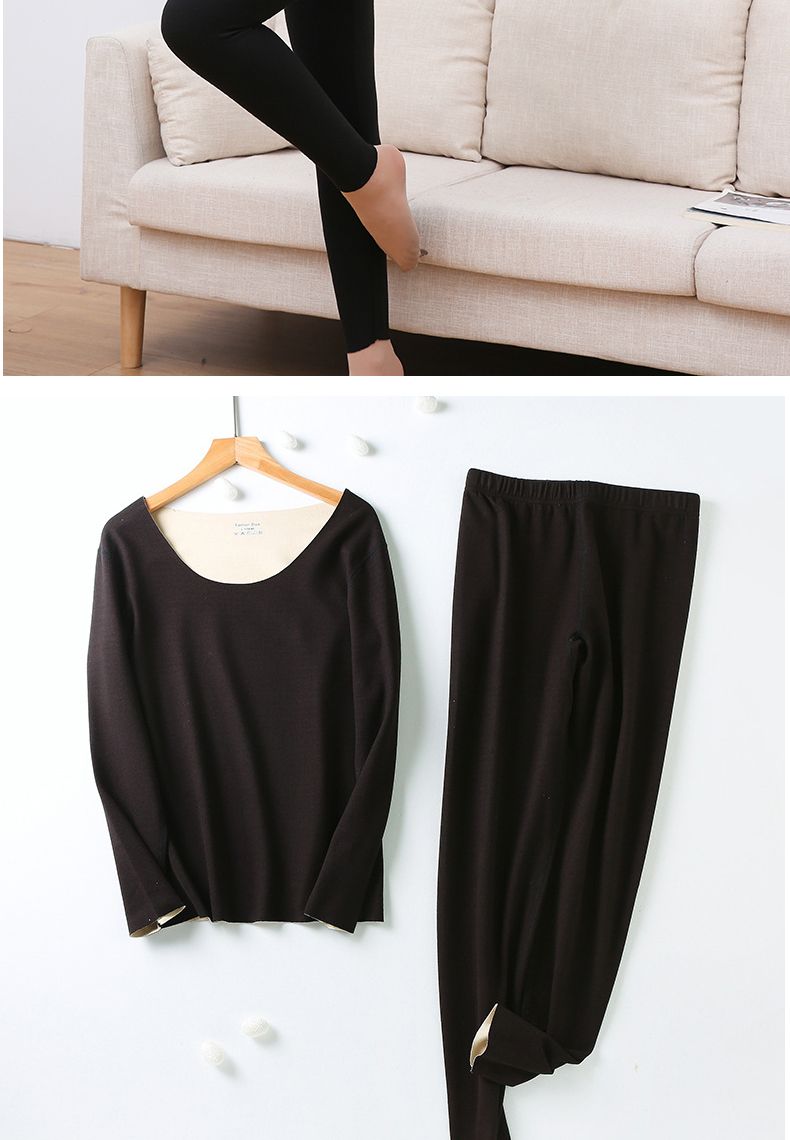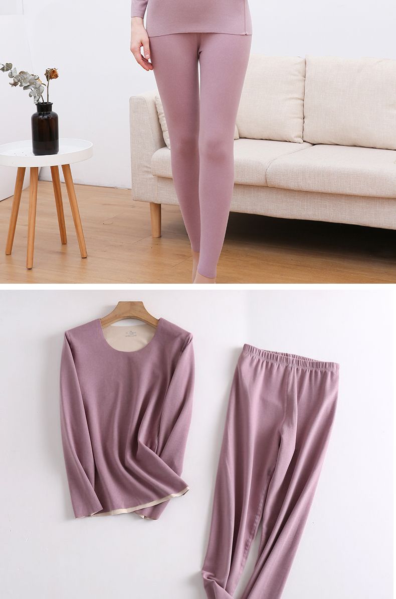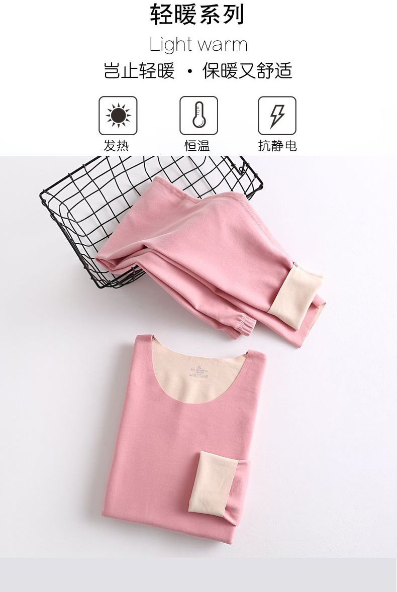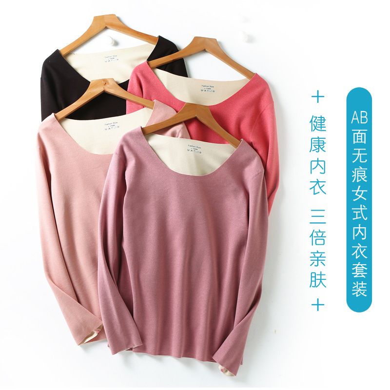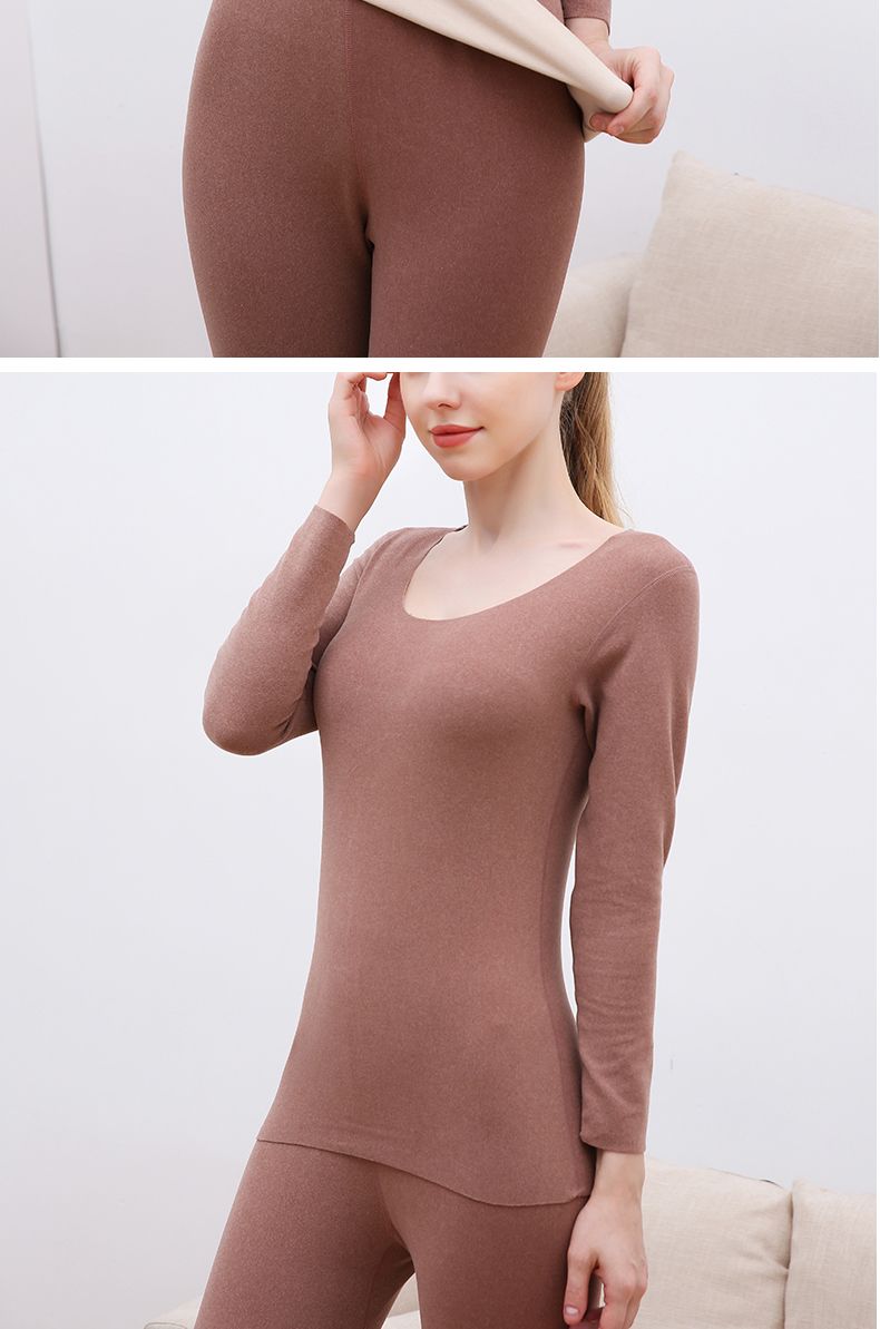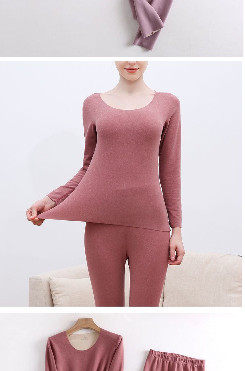 【雅鹿】新款德绒保暖内衣女自发热双面无痕打底薄款秋衣秋裤套装