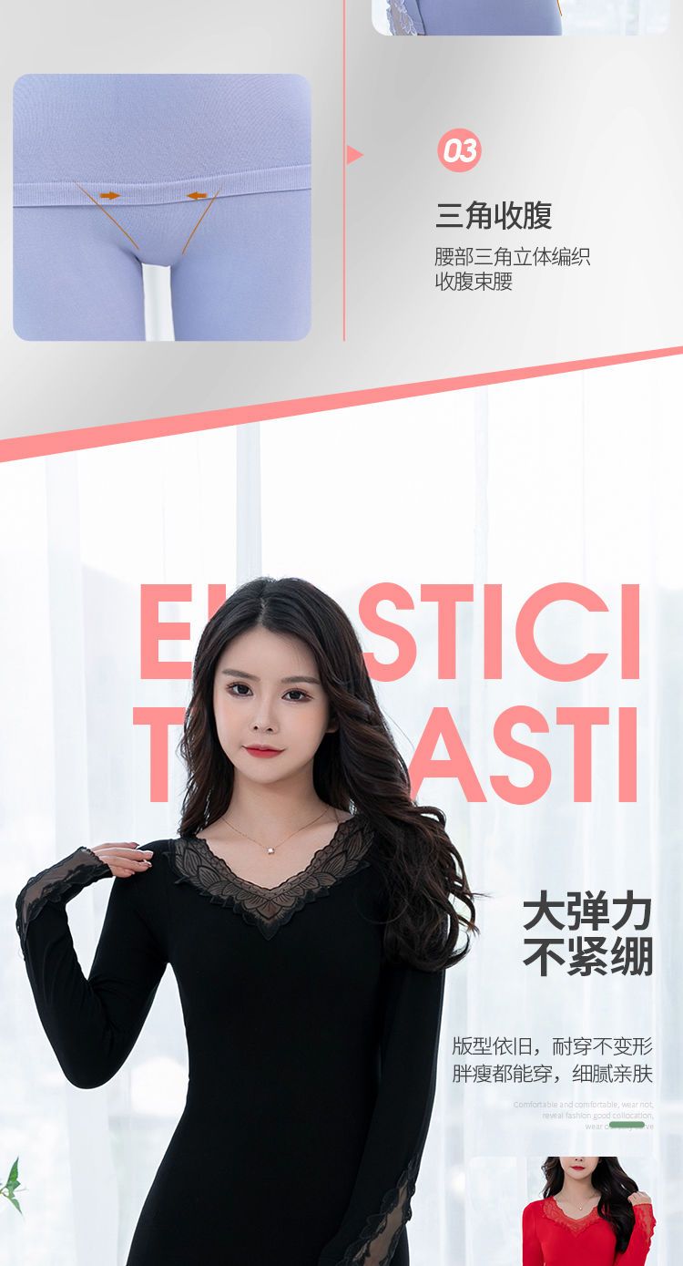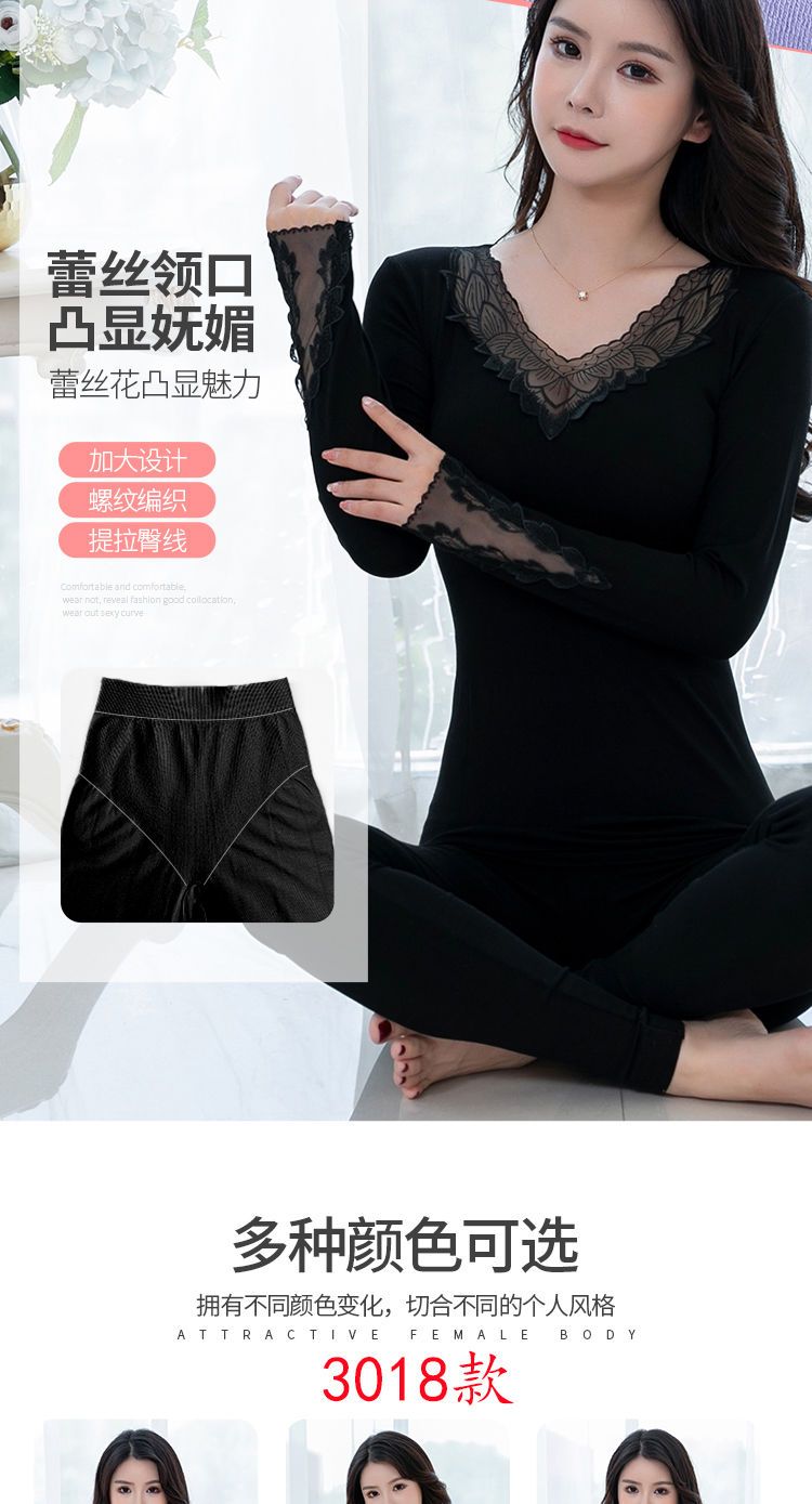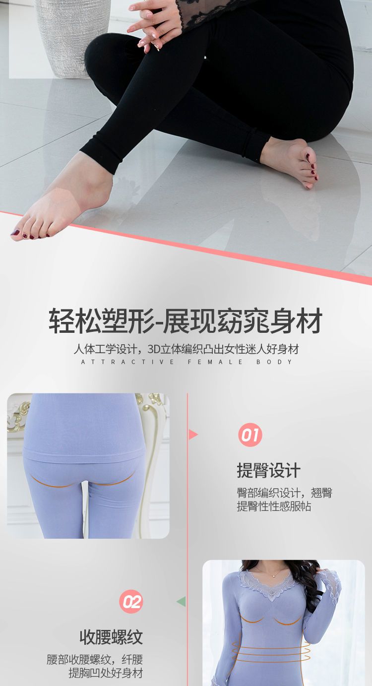秋衣秋裤女士美体修身V领紧身打底线衣线裤薄款恒温保暖内衣套装