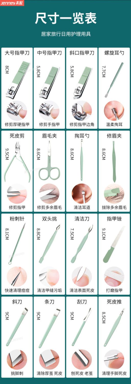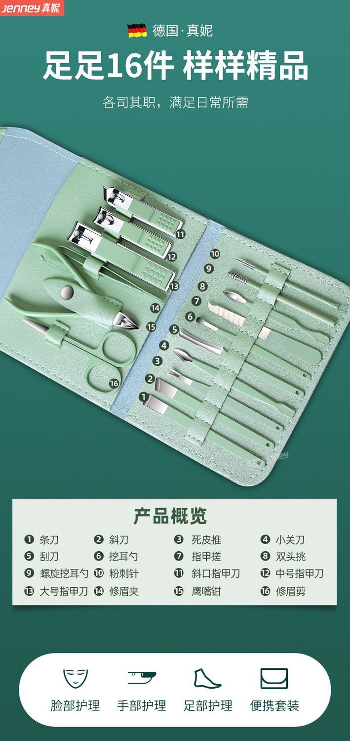 真妮德国指甲刀套装全套指甲剪钳套装家用挖耳勺死皮剪修脚工具刀