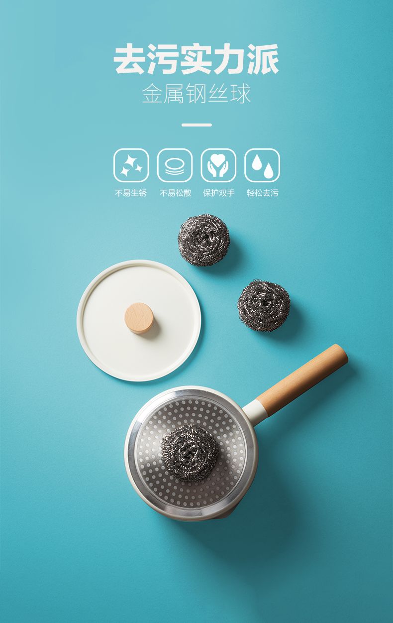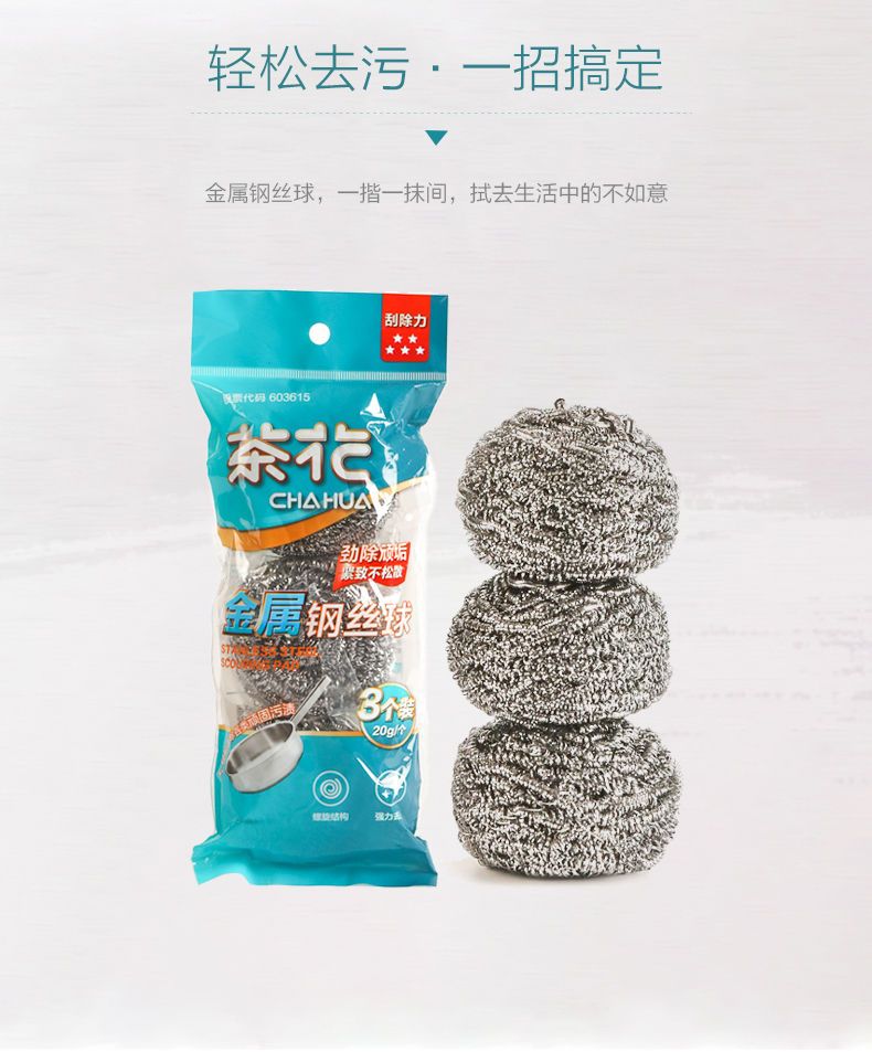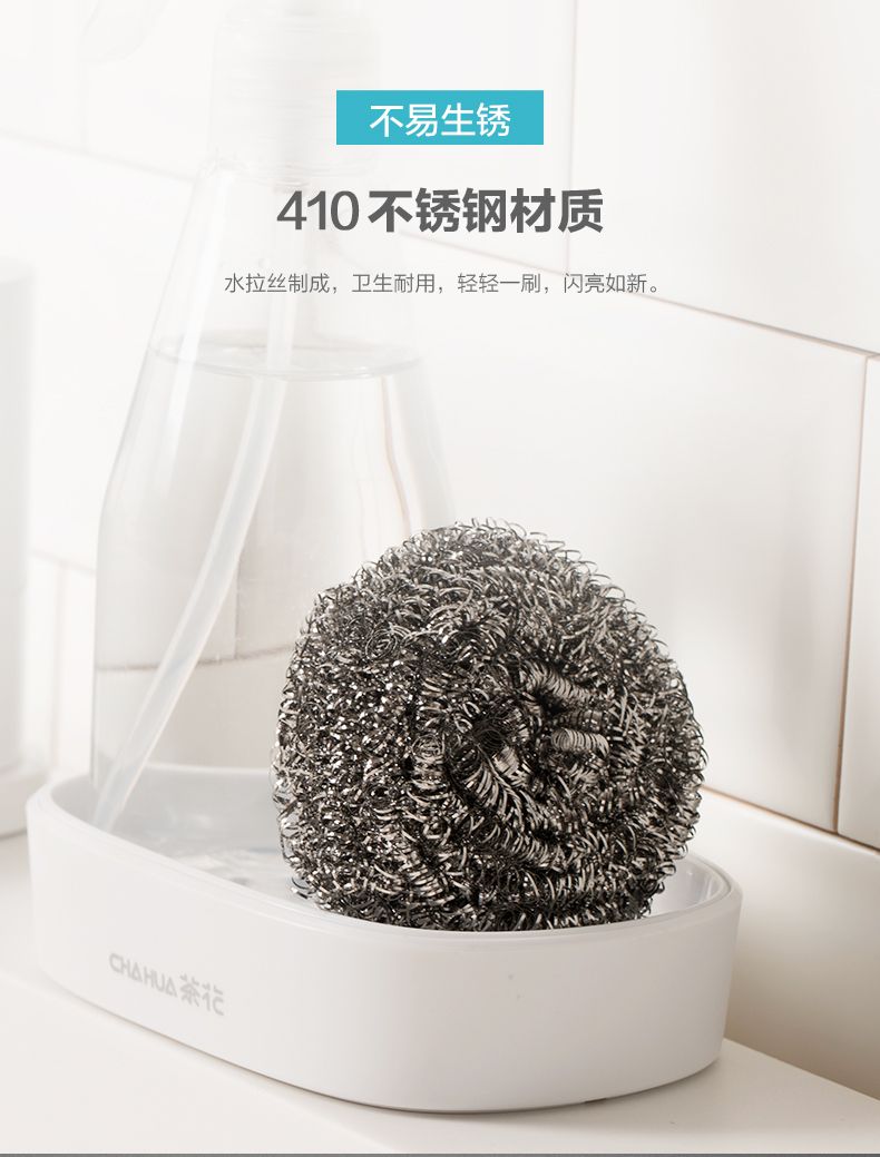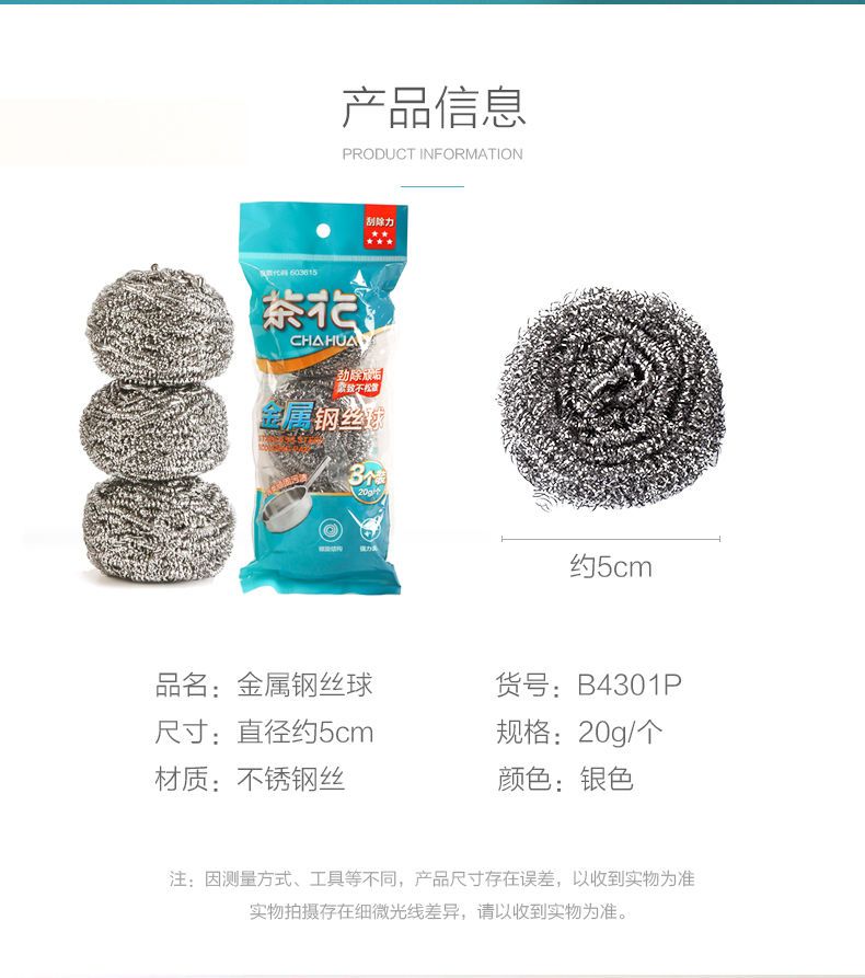 茶花钢丝球不锈钢金属厨房用家用锅刷清洁洗碗除顽垢球去污清洁球