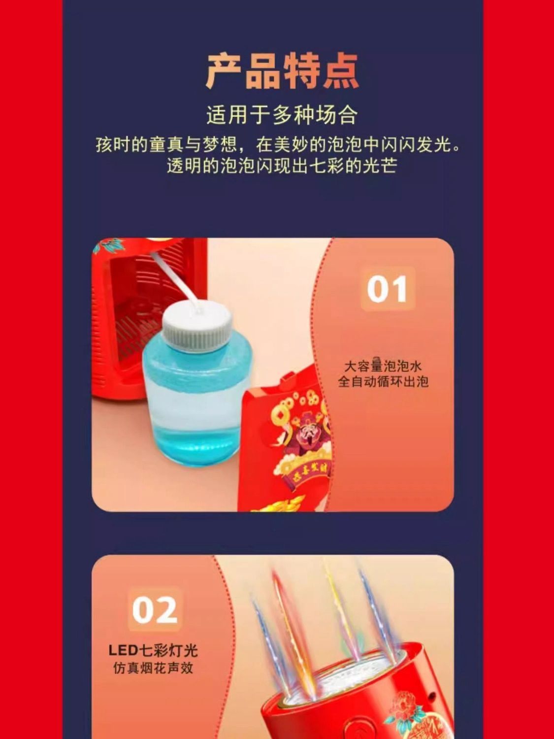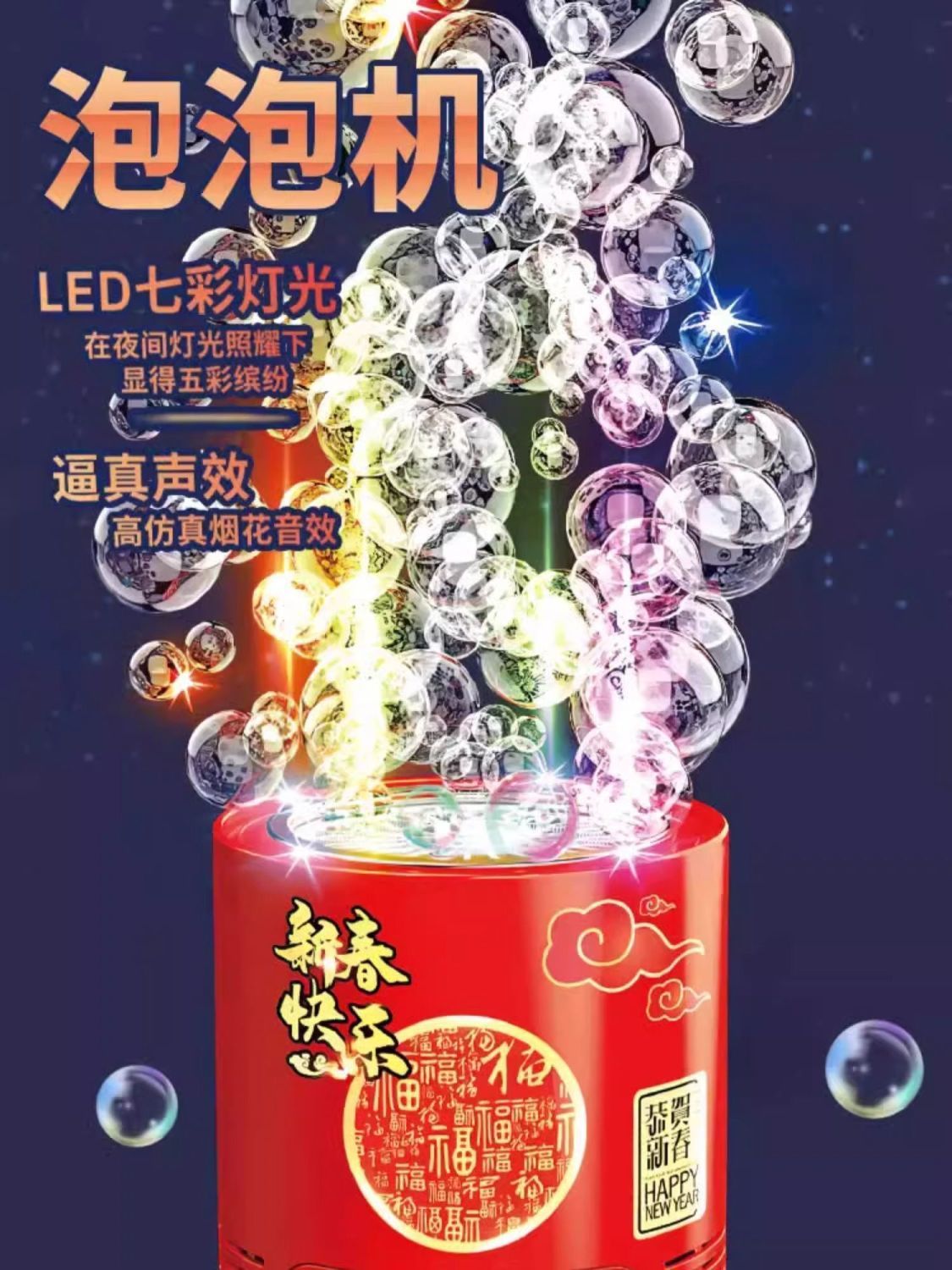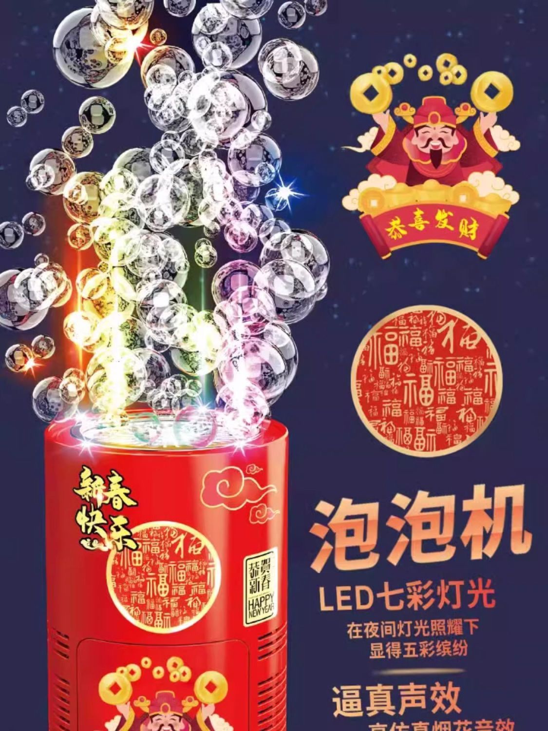 2025新款烟花新年跨年春节七彩泡泡机鞭炮礼花吹泡泡儿童结婚礼物