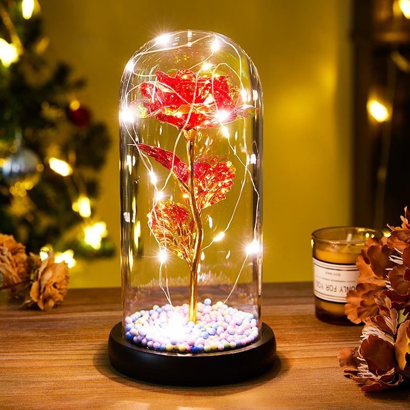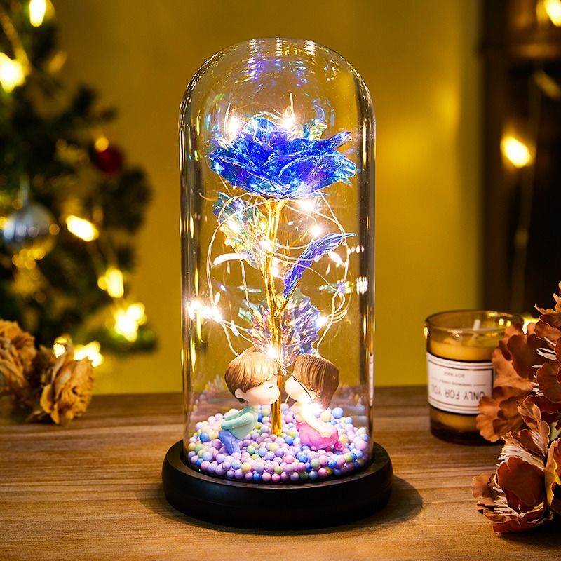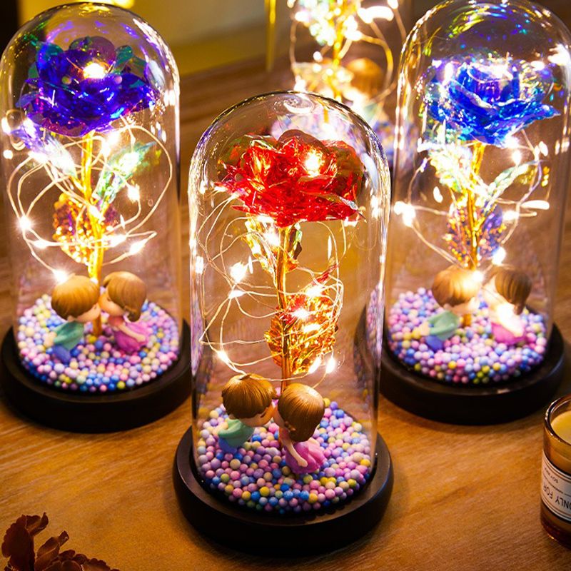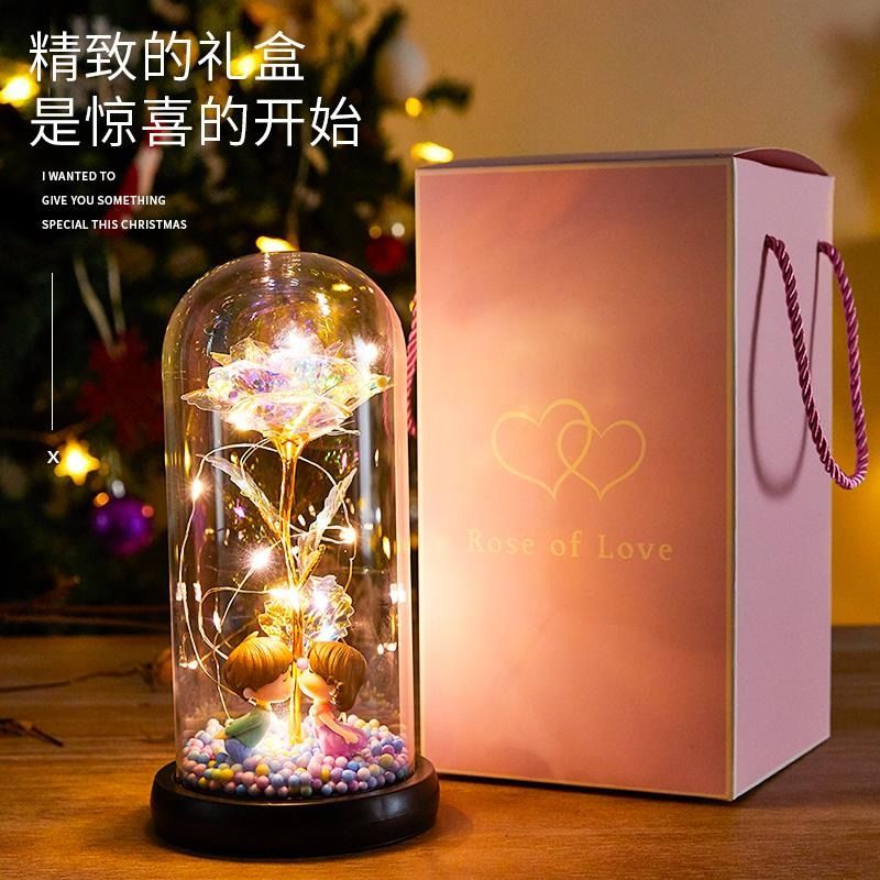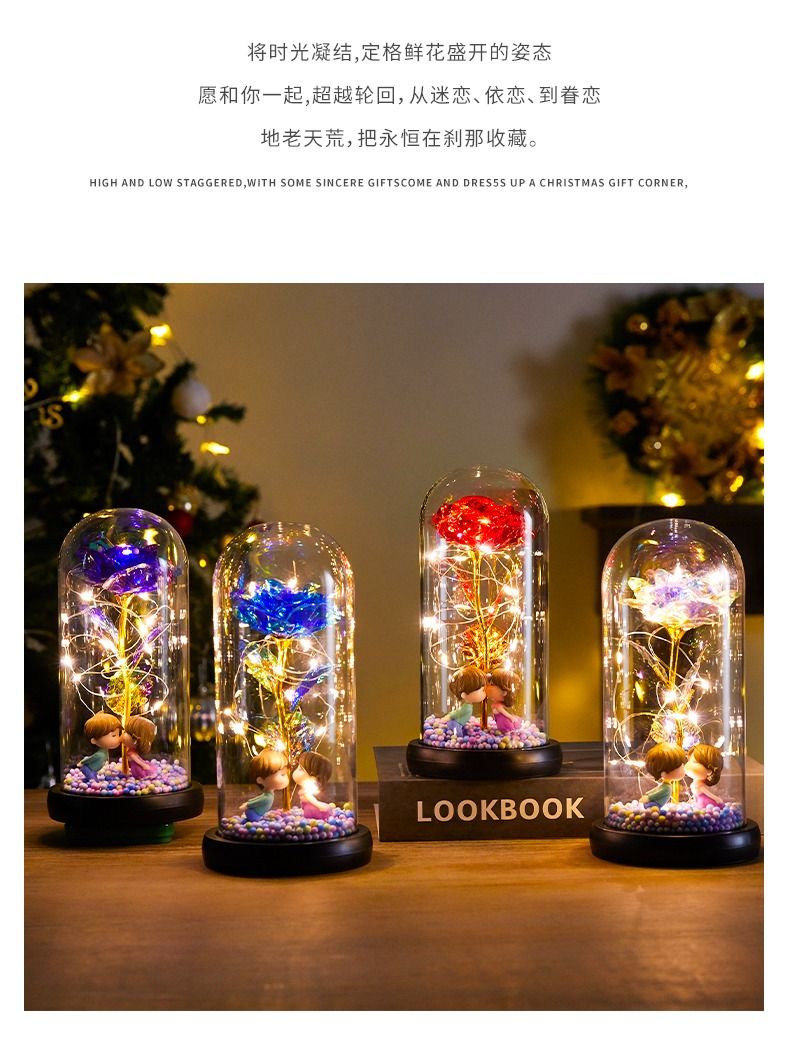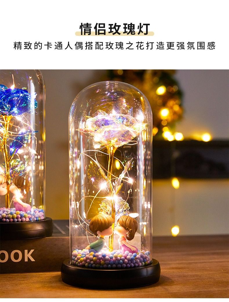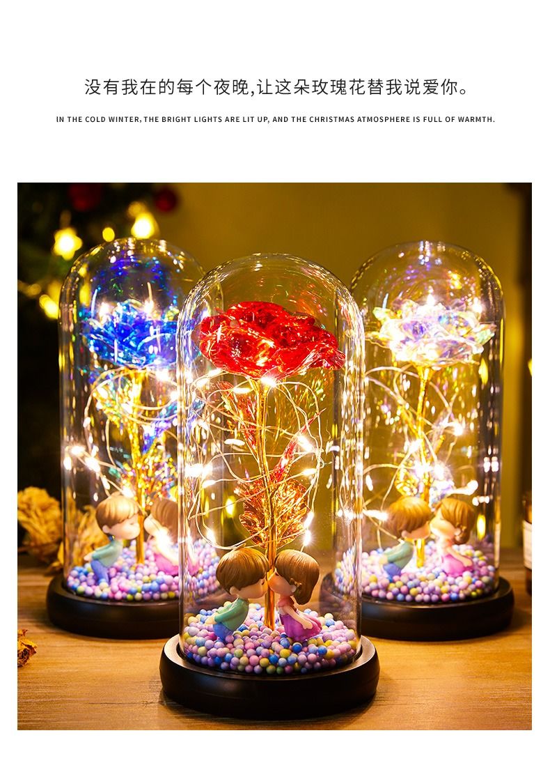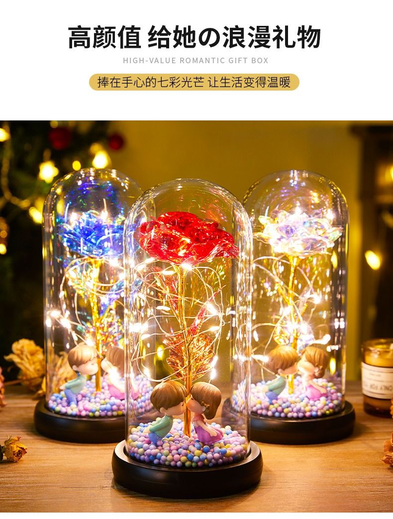玫瑰花永生花玻璃罩情人节生日礼物送女生女友老婆礼物花束成品