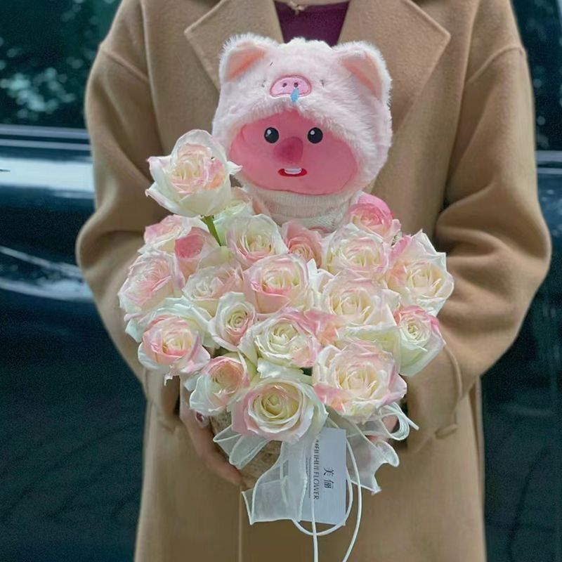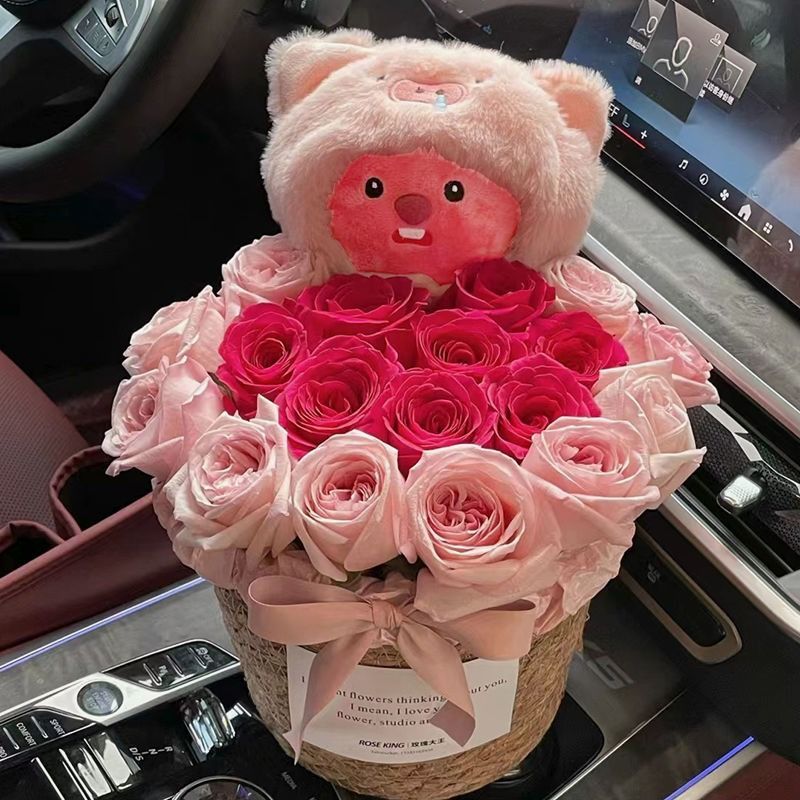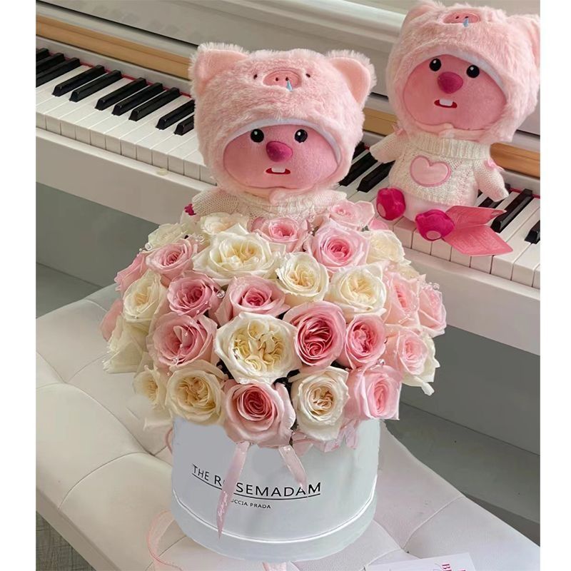 可爱海狸loopy抱花束玩偶生日礼物送女生闺蜜儿童礼物女孩妈妈