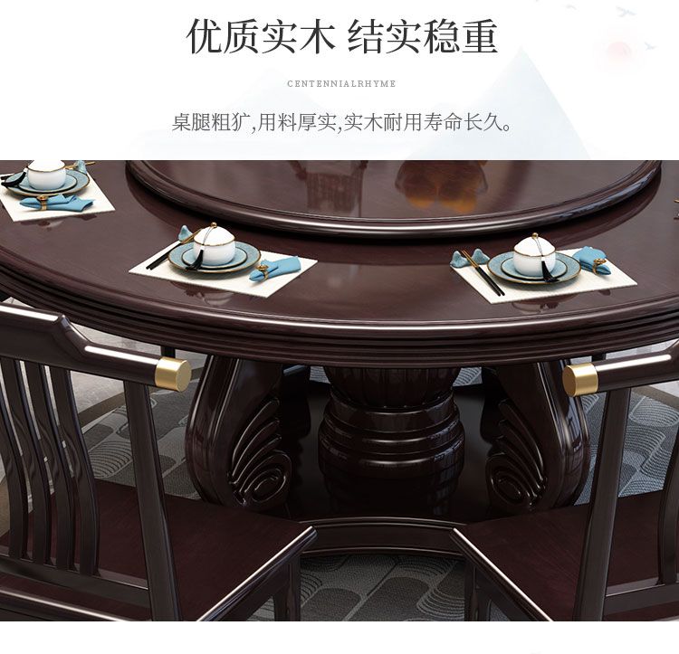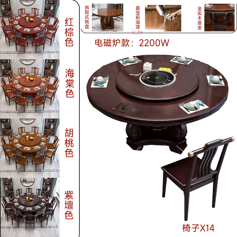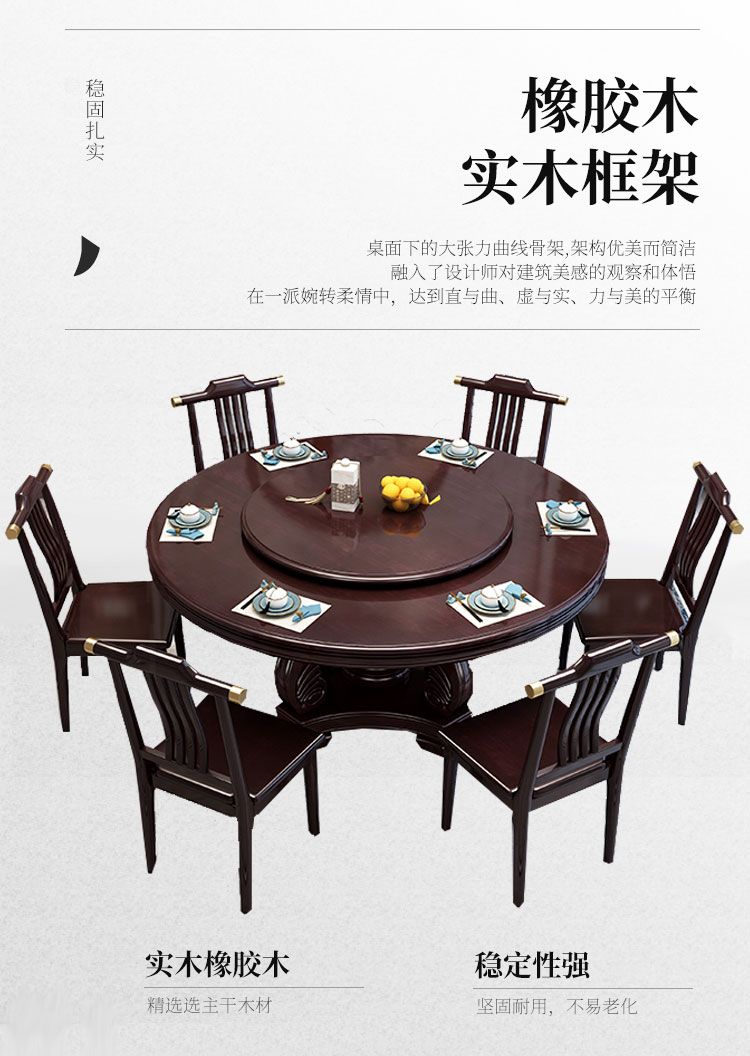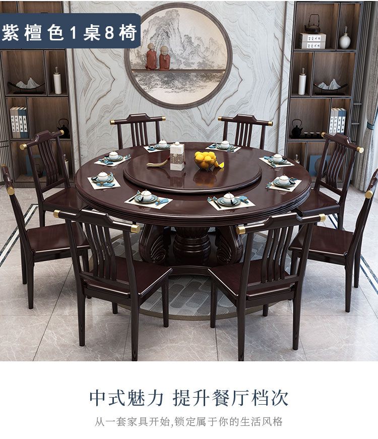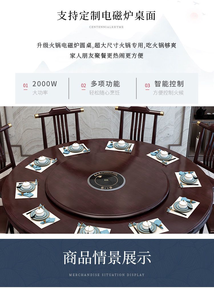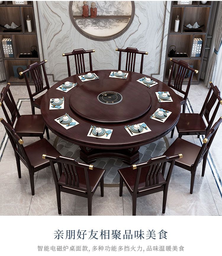 新中式实木餐桌椅组合家用圆桌带转盘圆形电磁炉吃饭桌饭店大圆桌