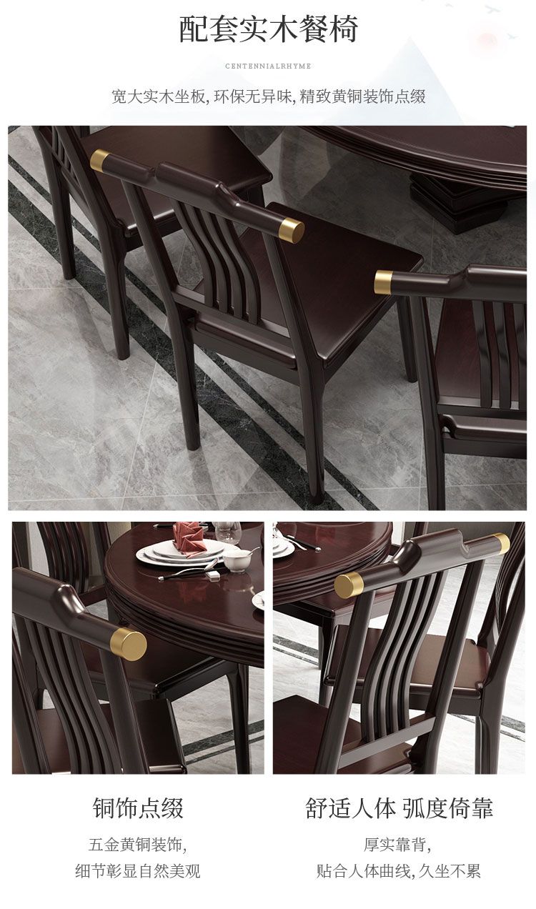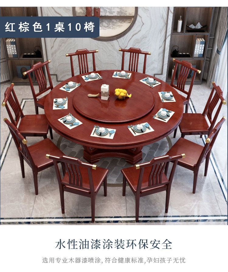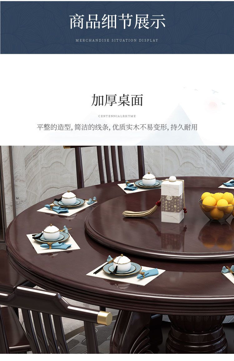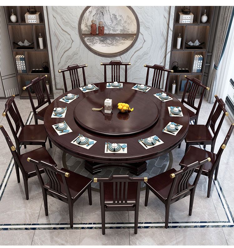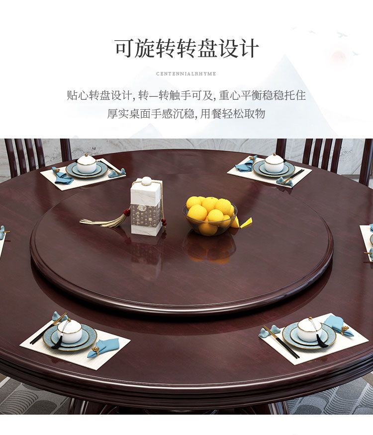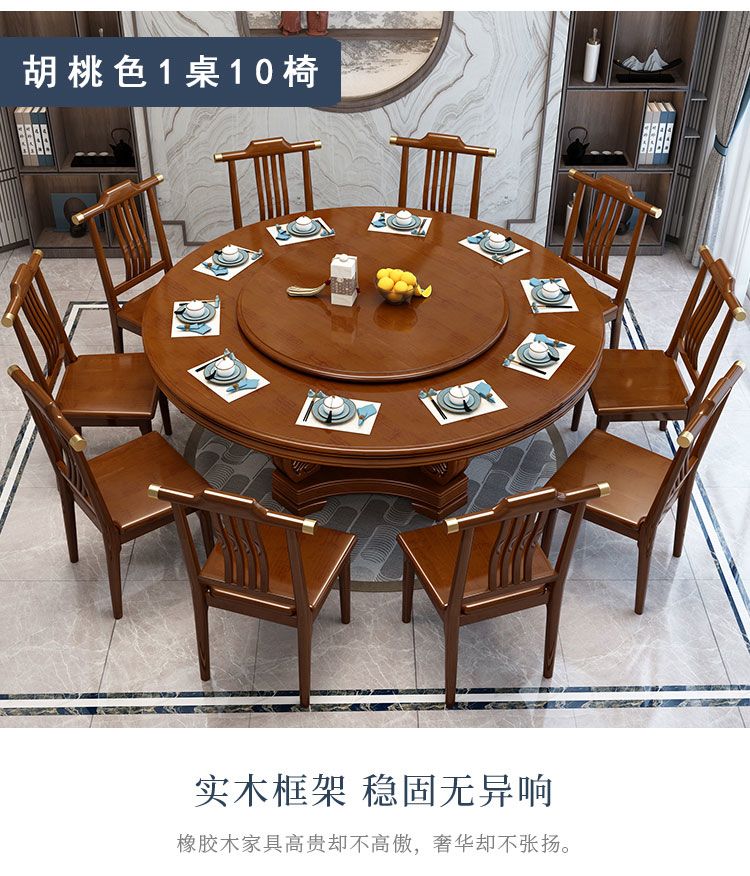 新中式实木餐桌椅组合家用圆桌带转盘圆形电磁炉吃饭桌饭店大圆桌