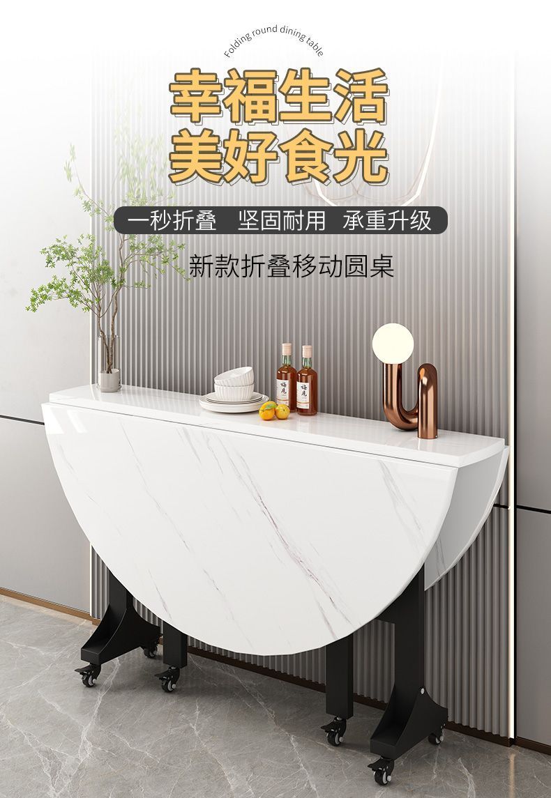 新款圆形小户型桌多功能折叠大圆桌特厚可折叠圆桌客厅折叠餐桌