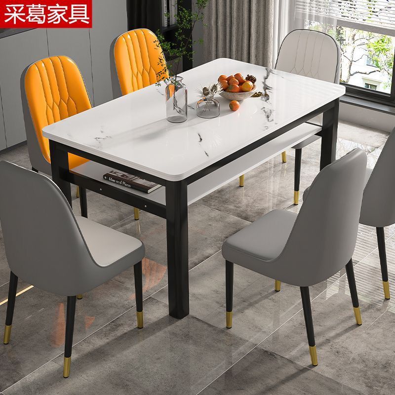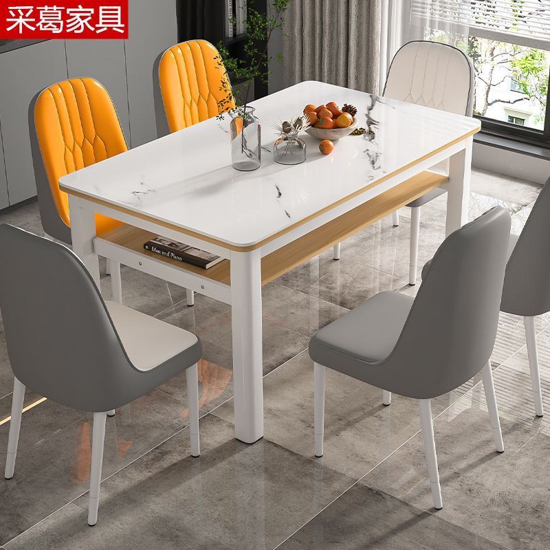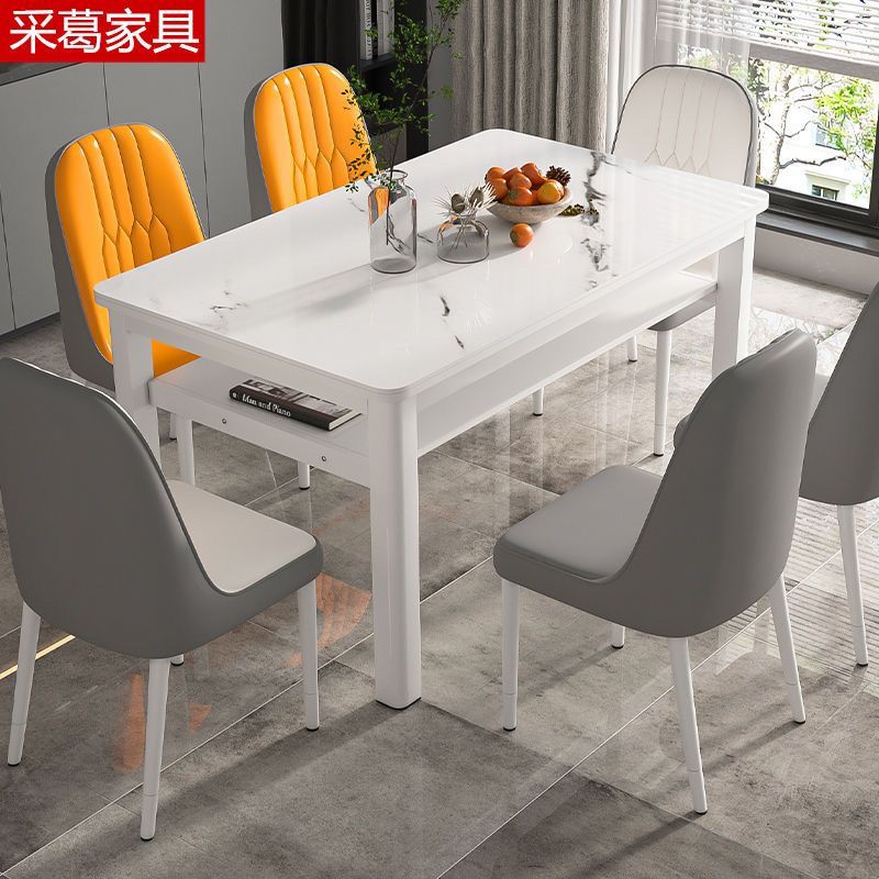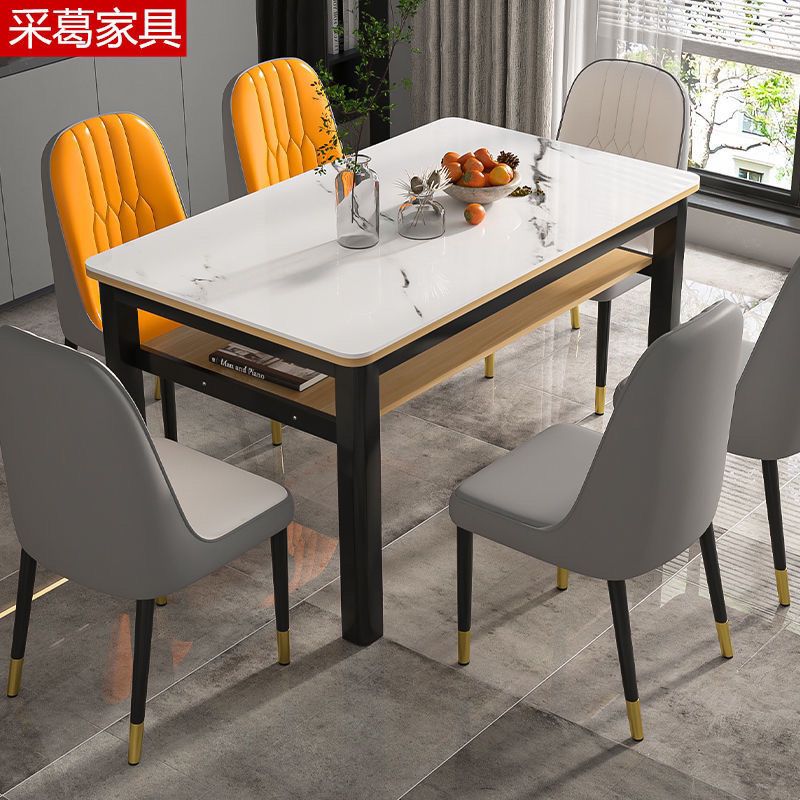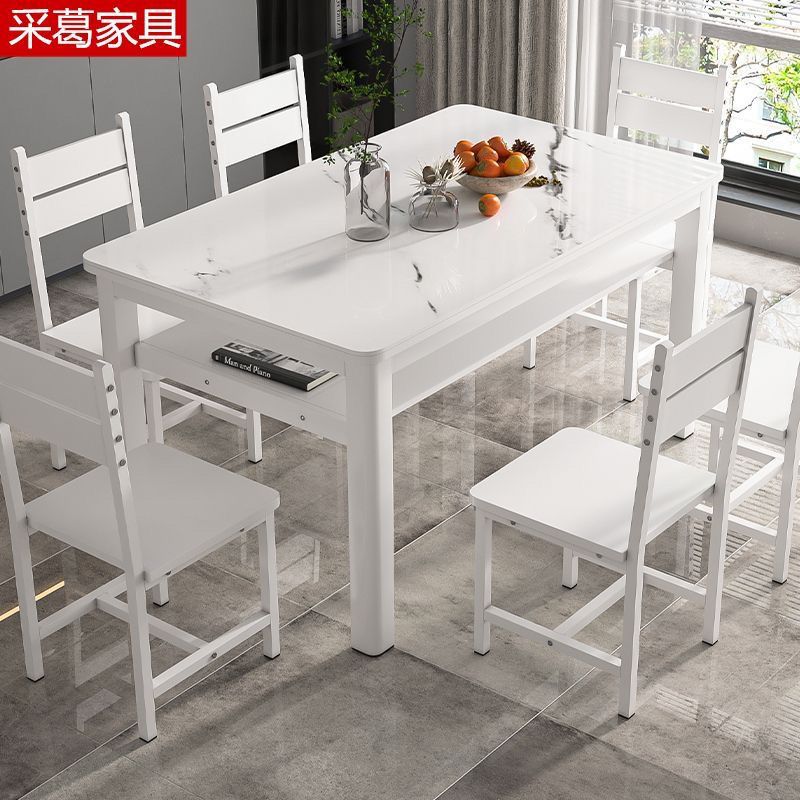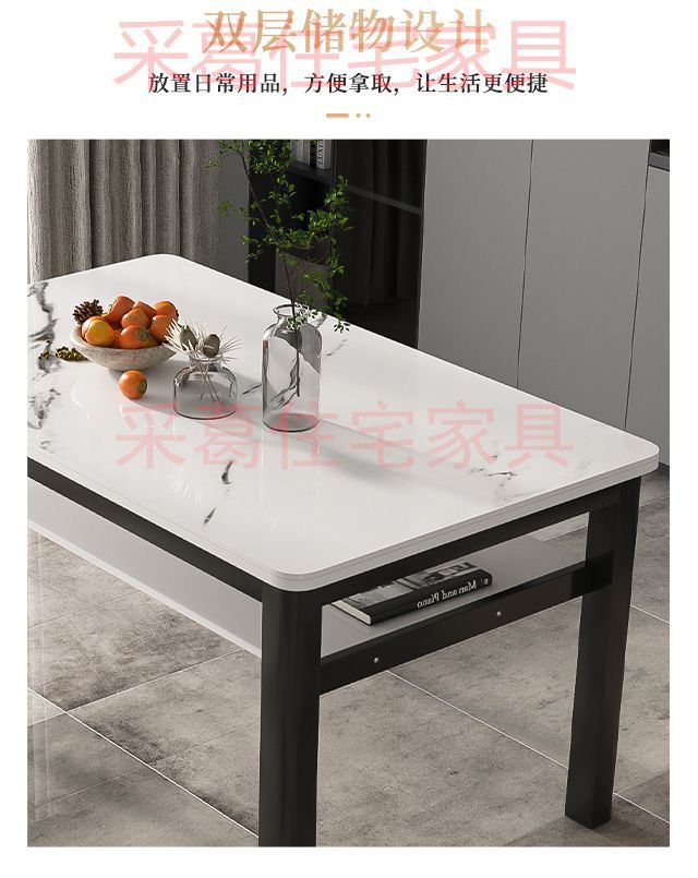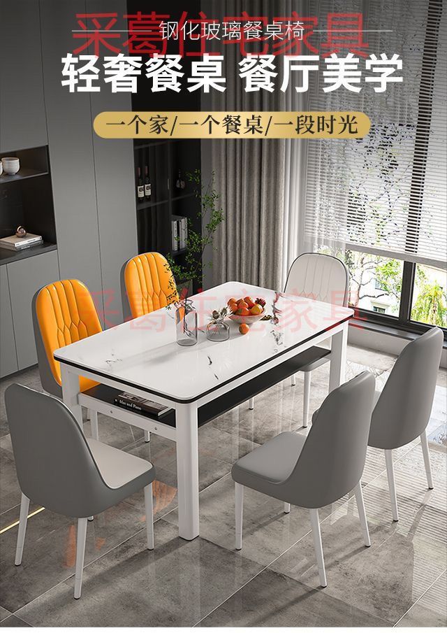现代钢化玻璃双层餐桌椅组合家用小户型吃饭桌子出租屋客餐厅桌椅