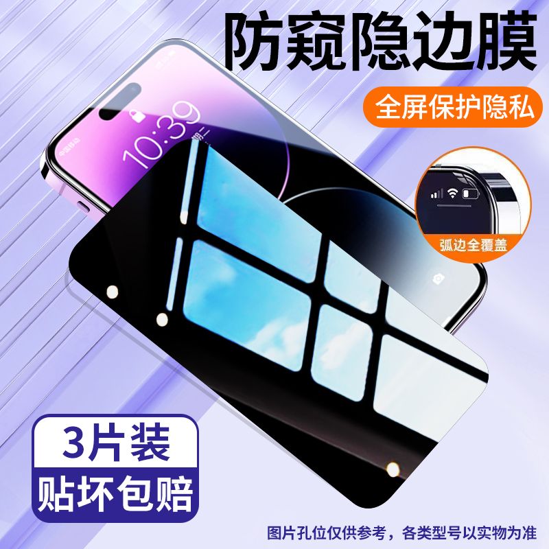 苹果14钢化膜iPhone13/12/11ProMax防窥xr/xs全屏16/15Plus手机膜