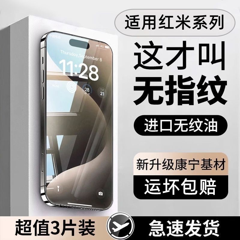 适用红米note13康宁钢化膜note12/11/10/9全屏note8/7Pro手机膜+