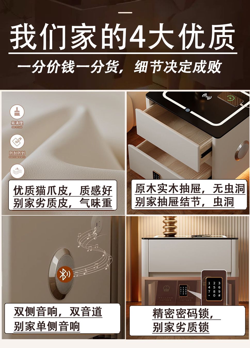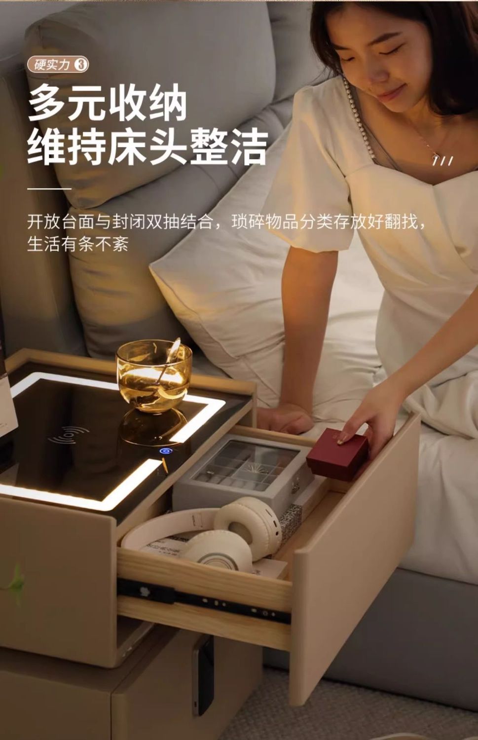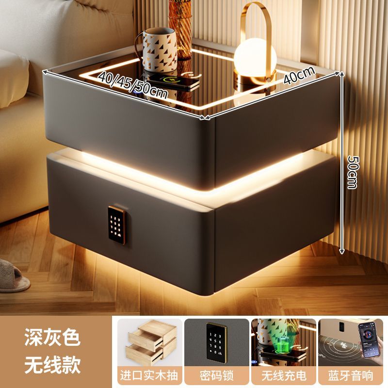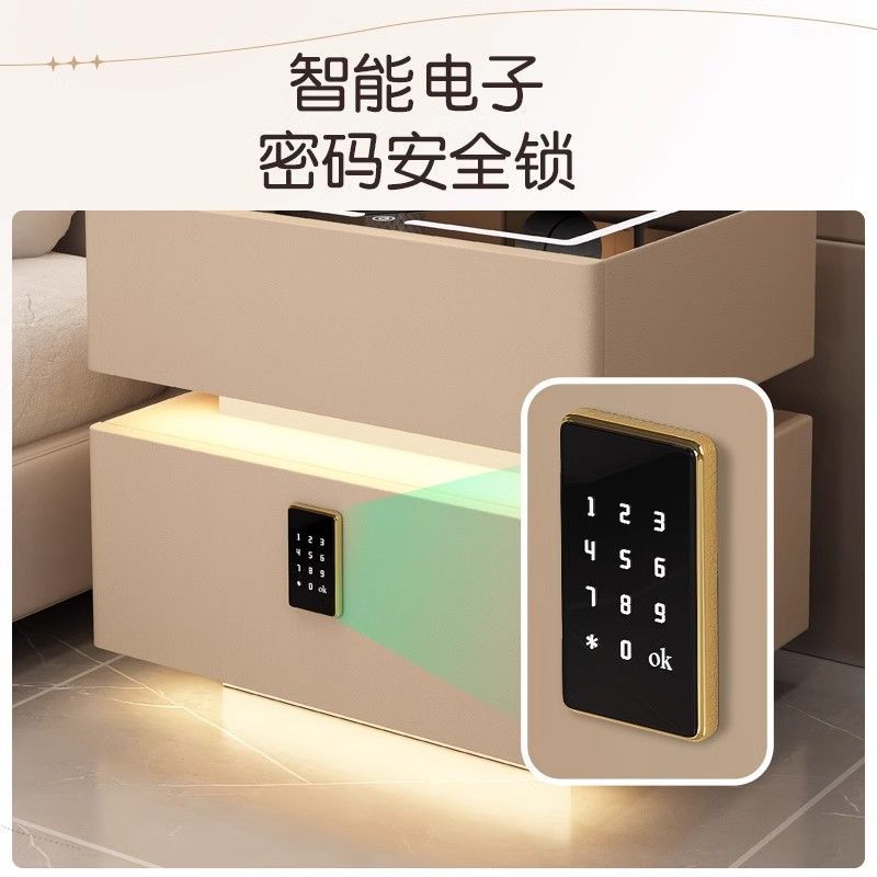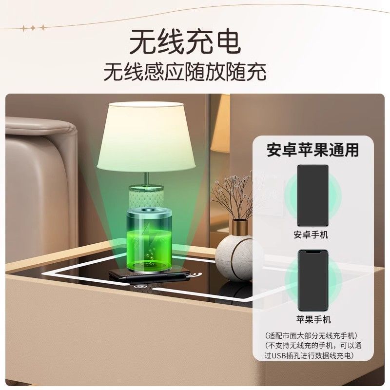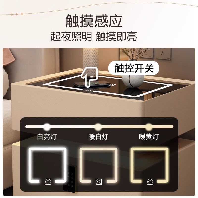 智能床头柜现代简约实木带灯卧室轻奢多功能无线充电蓝牙智能床柜
