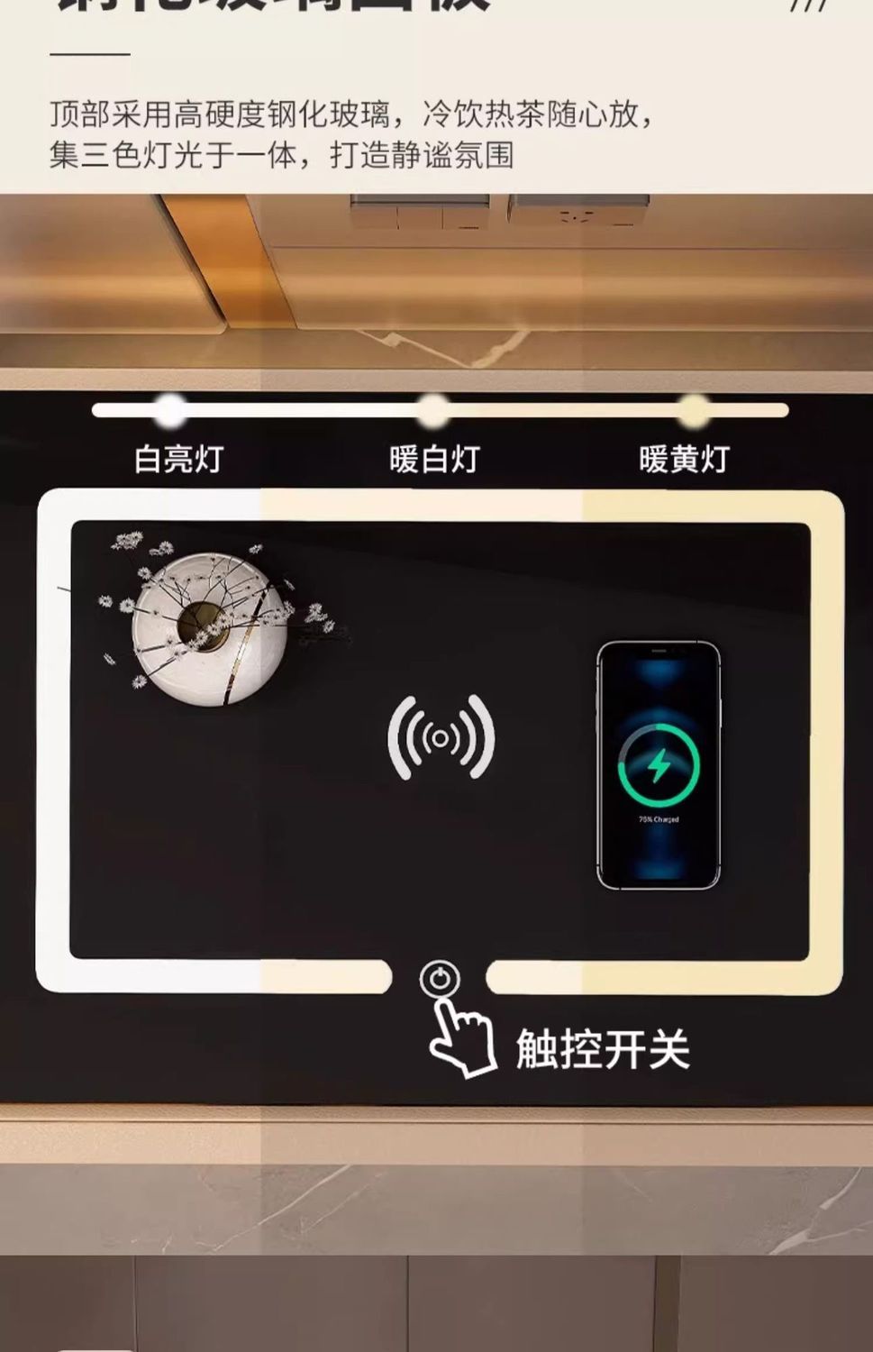 | light gray induction lamp + wireless charging + tricolour light(浅灰感应灯+无线充电+三色灯) | USD $71.1 | 999999 piece available |