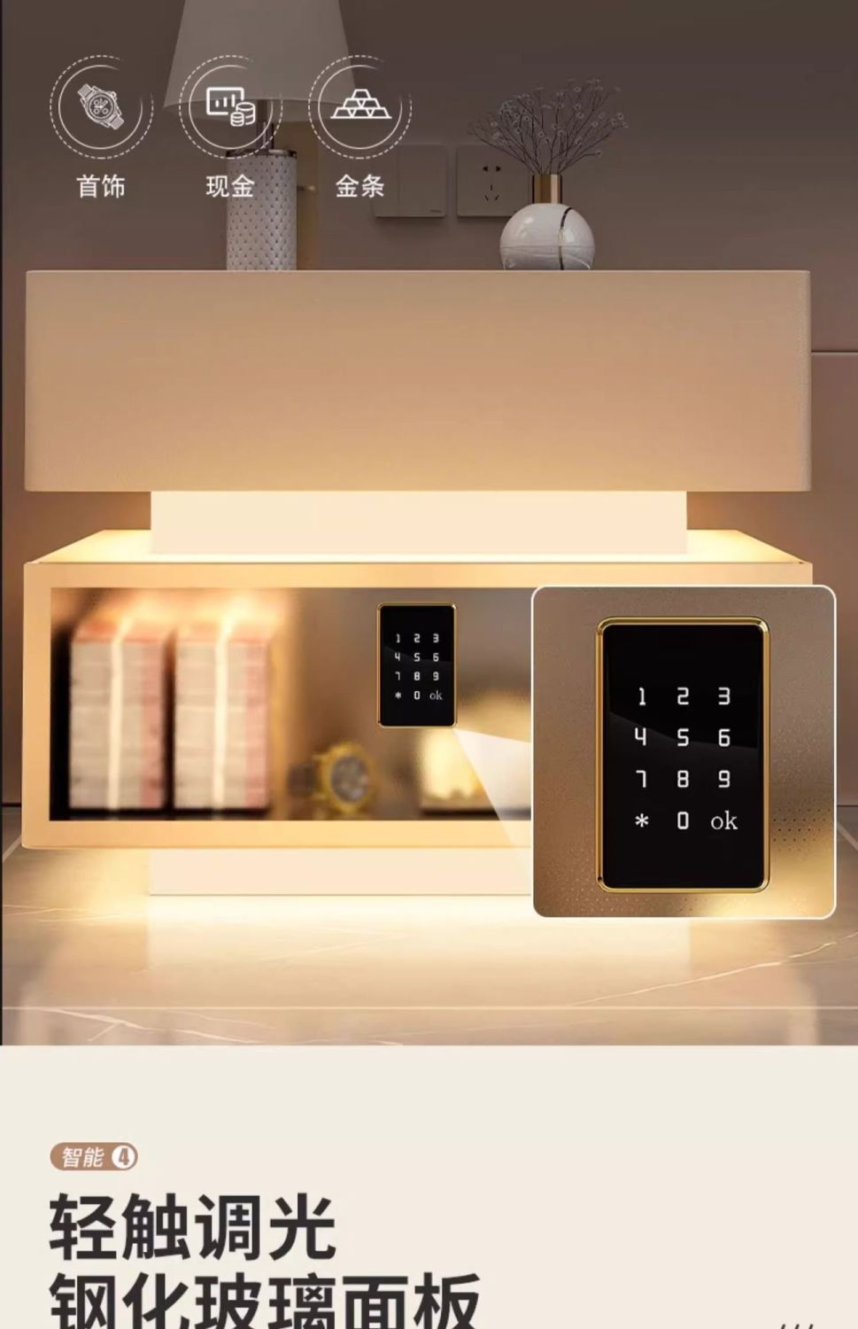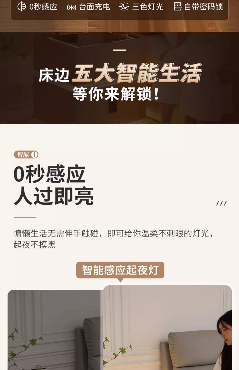 | khaki induction lamp + wireless charging + tricolour light + password lock(卡其色感应灯+无线充电+三色灯+密码锁) | USD $88.17 | 999999 piece available |
