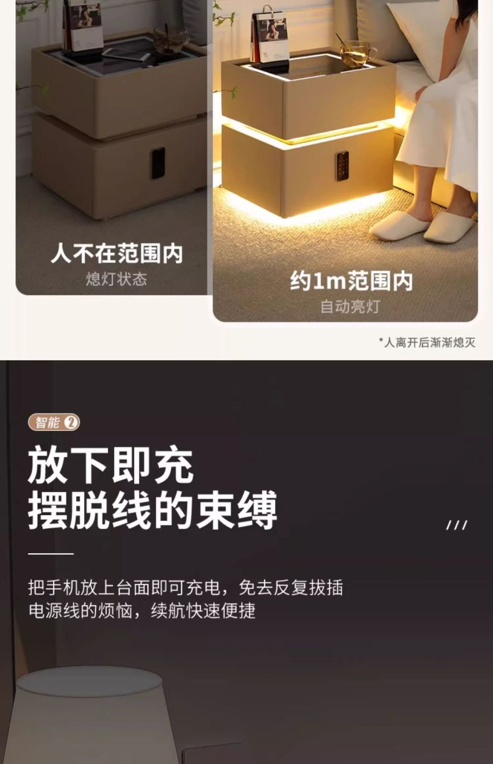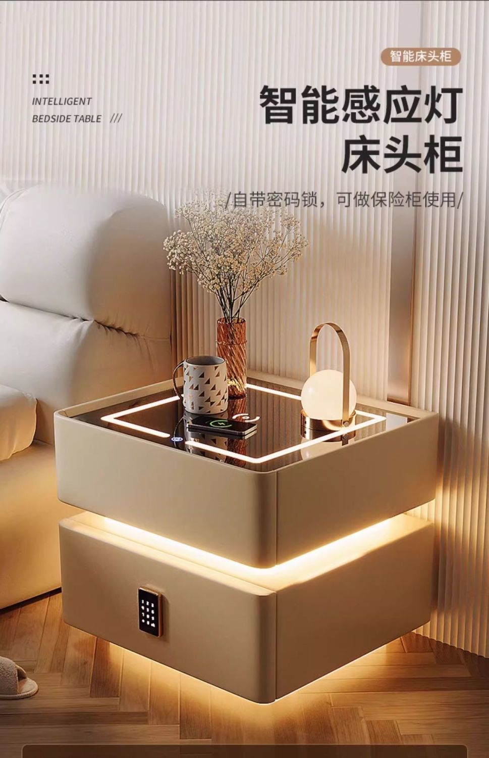 | light gray induction lamp + wireless charging + tricolour light + password lock(浅灰感应灯+无线充电+三色灯+密码锁) | USD $88.17 | 999999 piece available |