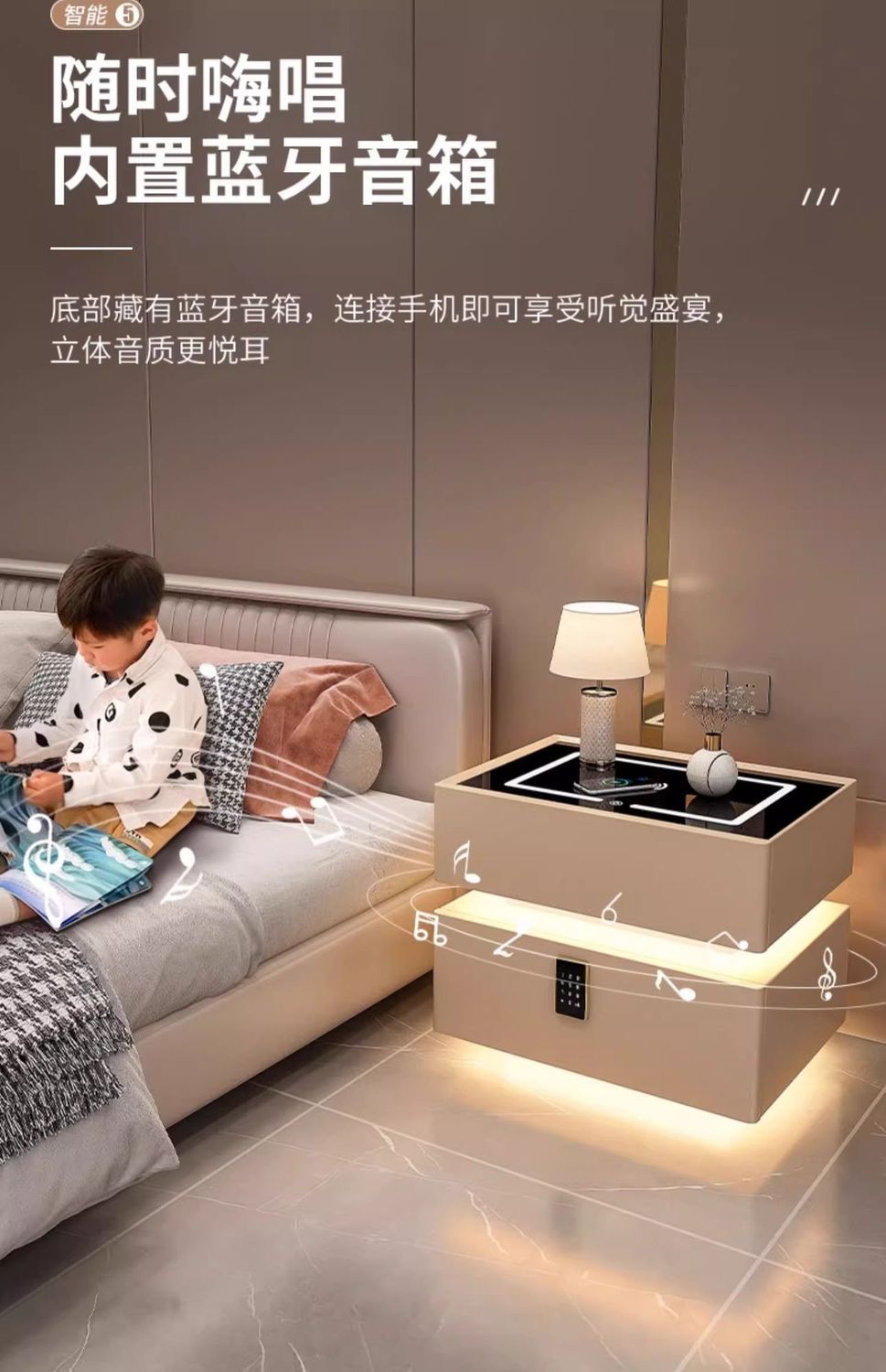 | light gray induction lamp + wireless charging + light + password lock + bluetooth audio(浅灰感应灯+无线充电+灯+密码锁+蓝牙音响) | USD $99.55 | 999999 piece available |