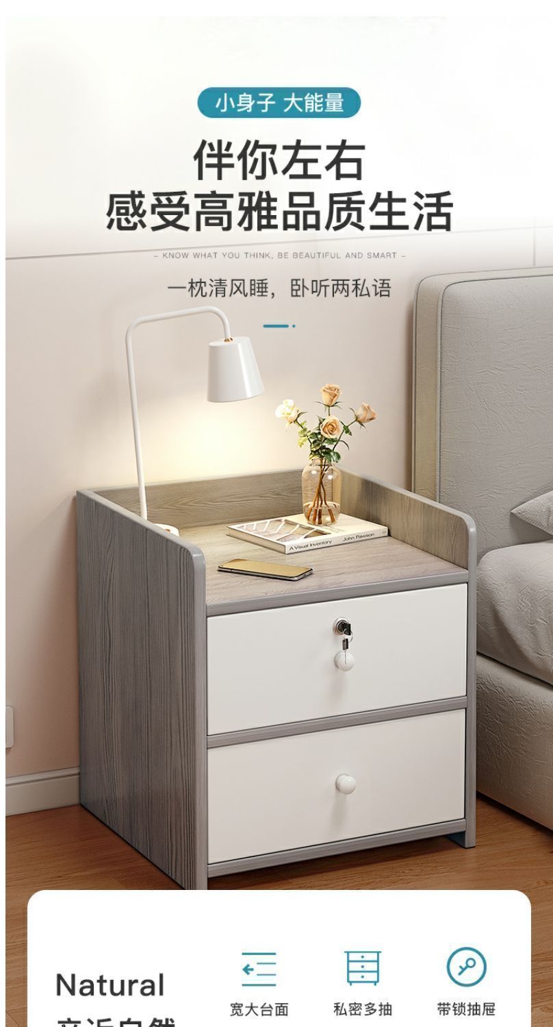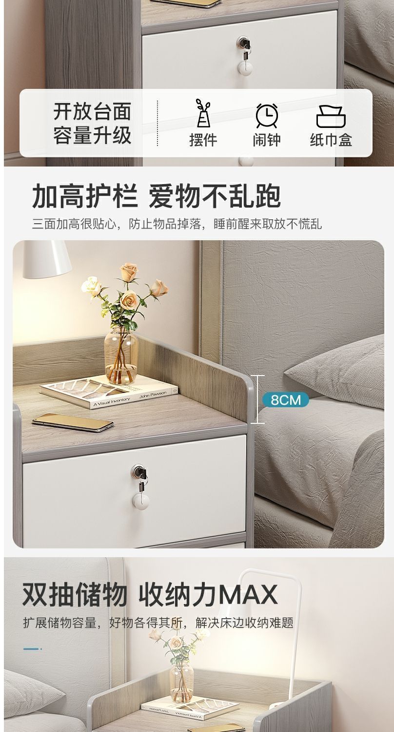 卧室家用床头柜简约现代简易收纳柜带锁迷你储物柜小型床边小柜子
