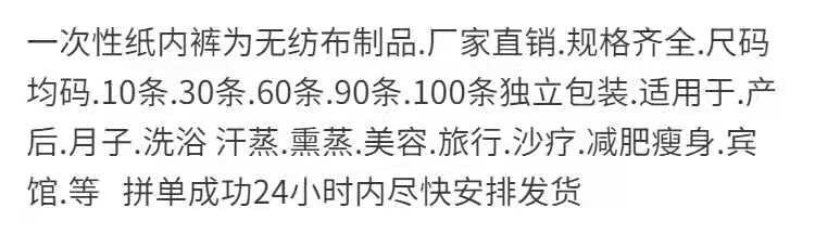 无纺布一次性男女内裤女产妇月子美容院汗蒸桑拿出差旅行男女通用