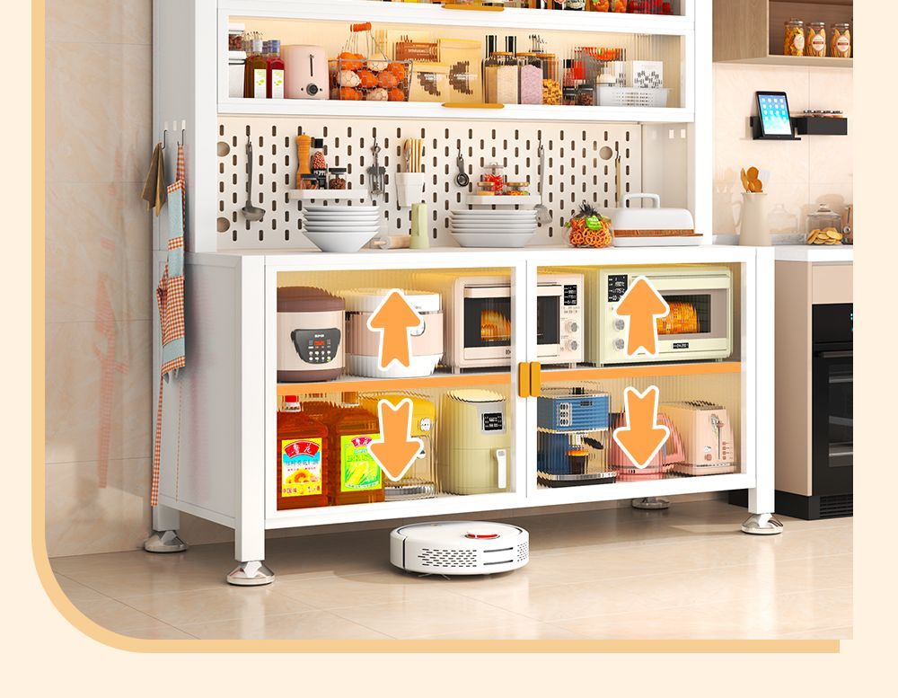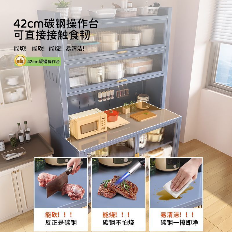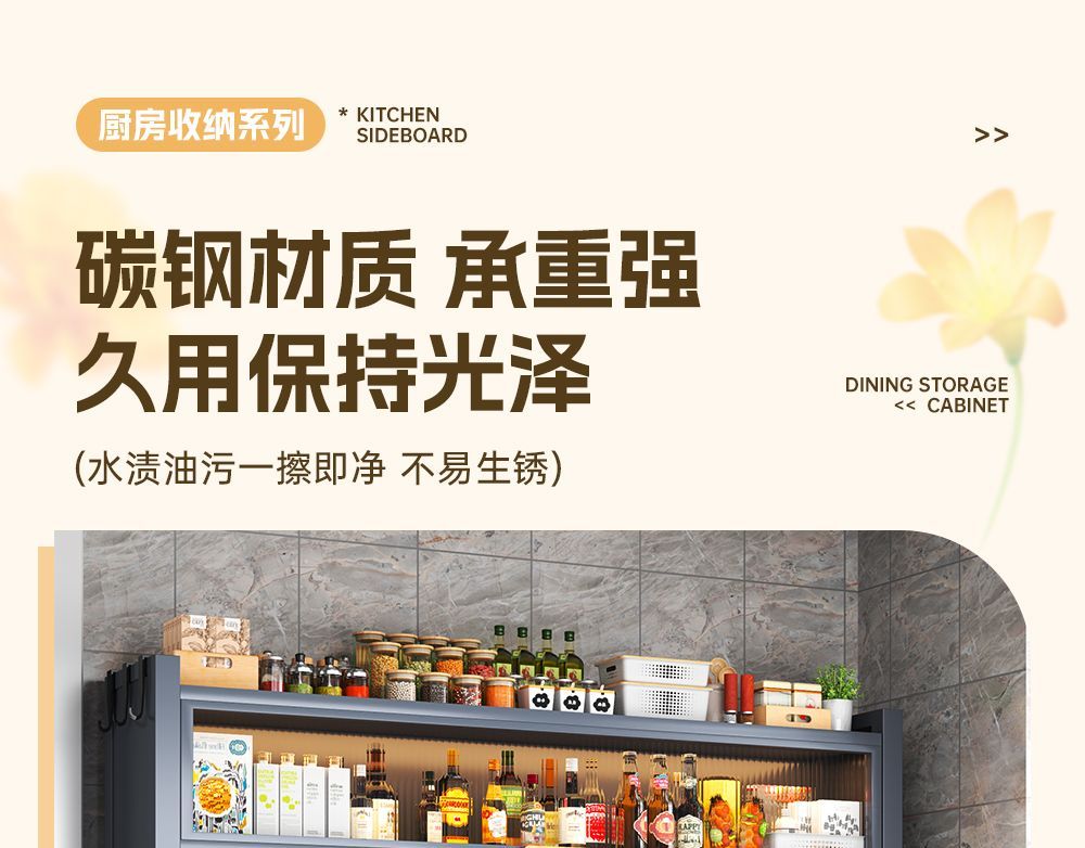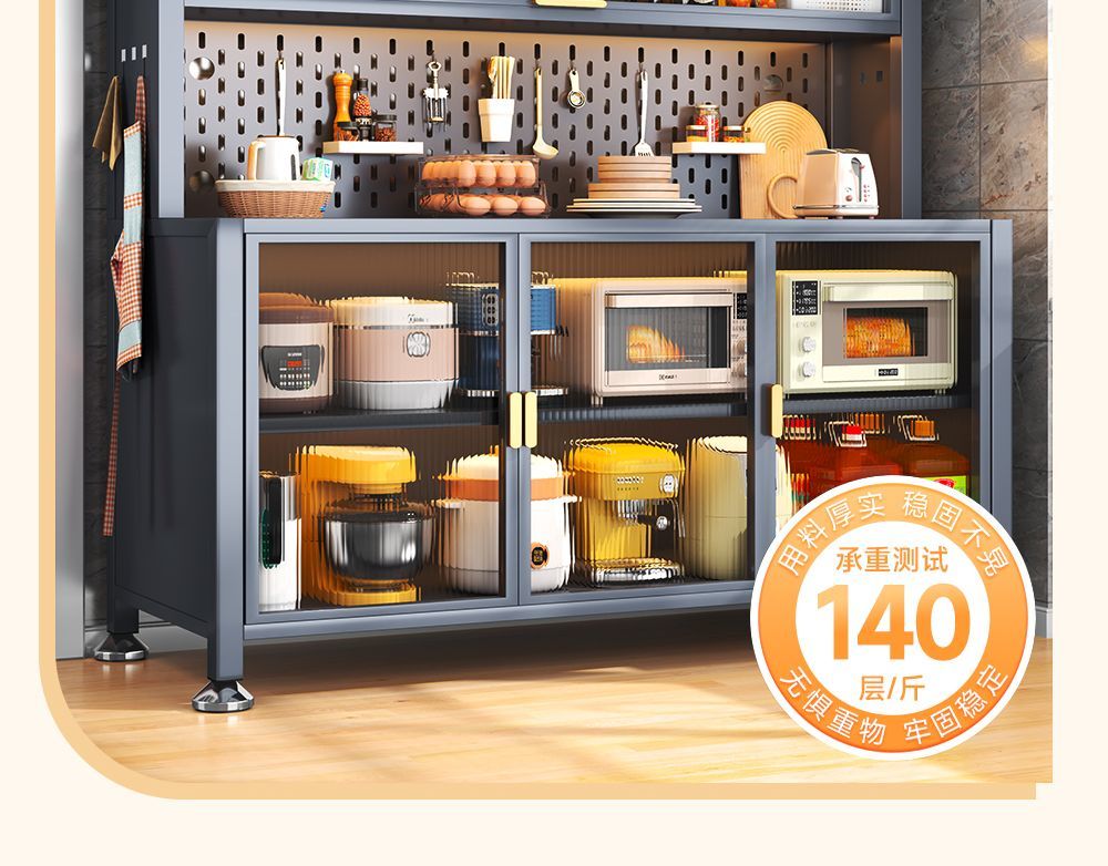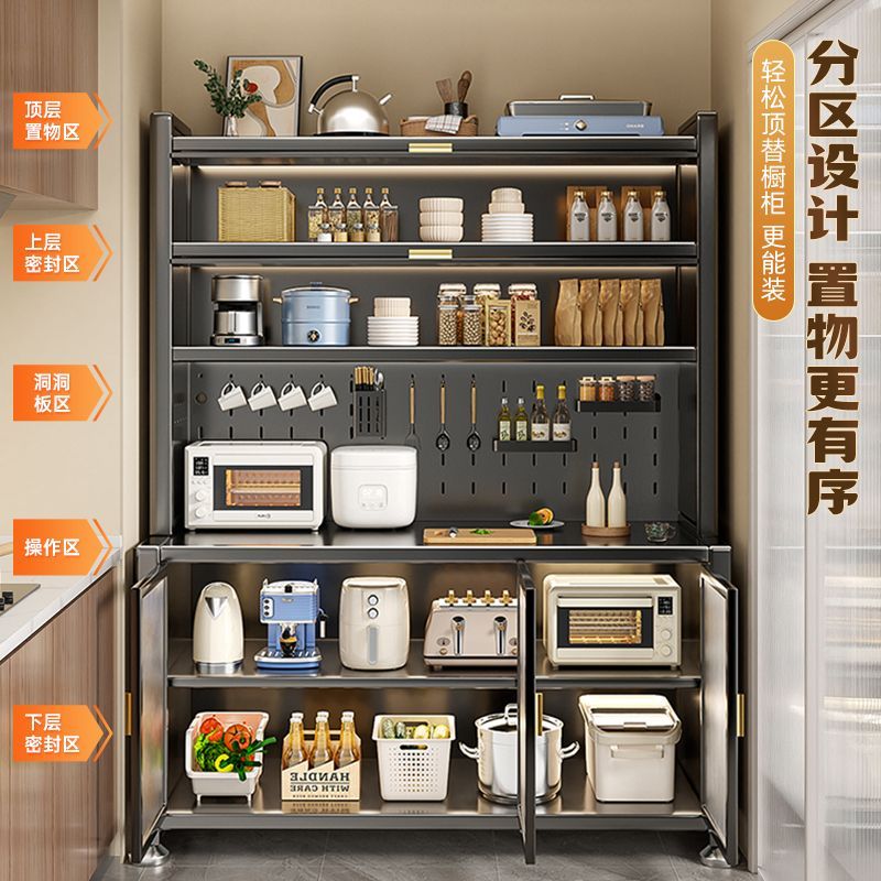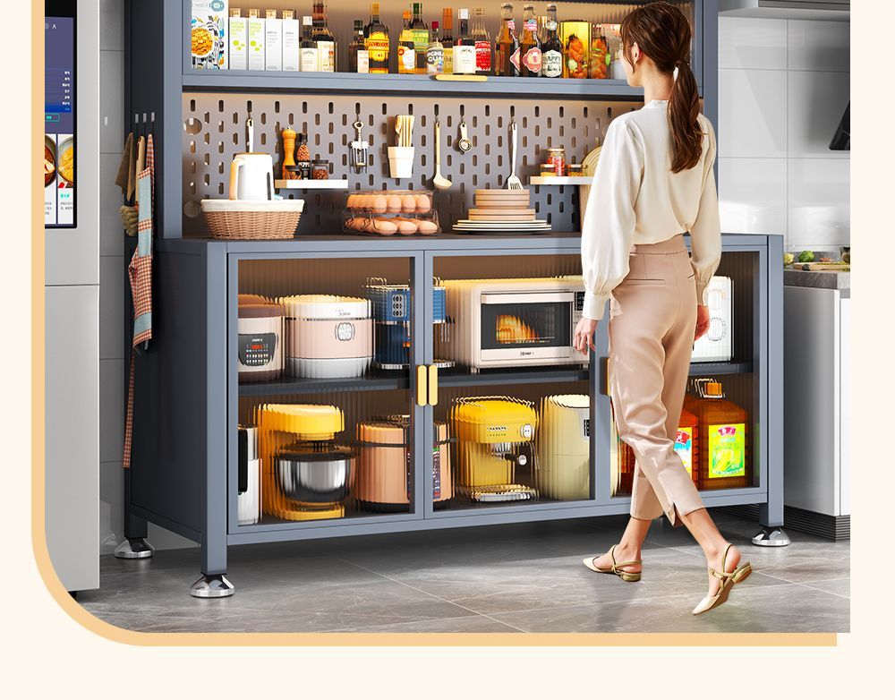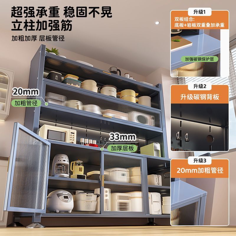 厨房多层餐边柜落地多功能置物架微波炉烤箱钢制收纳柜家用储物柜
