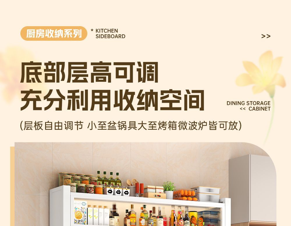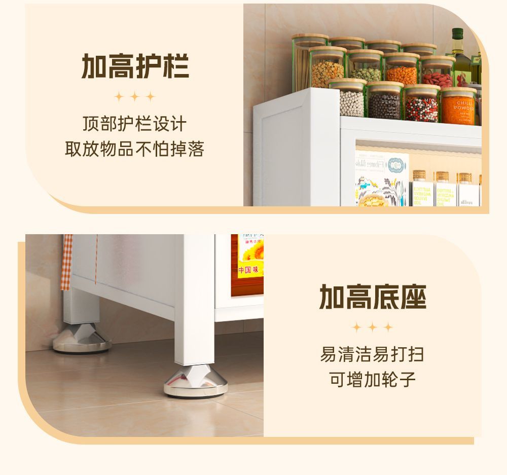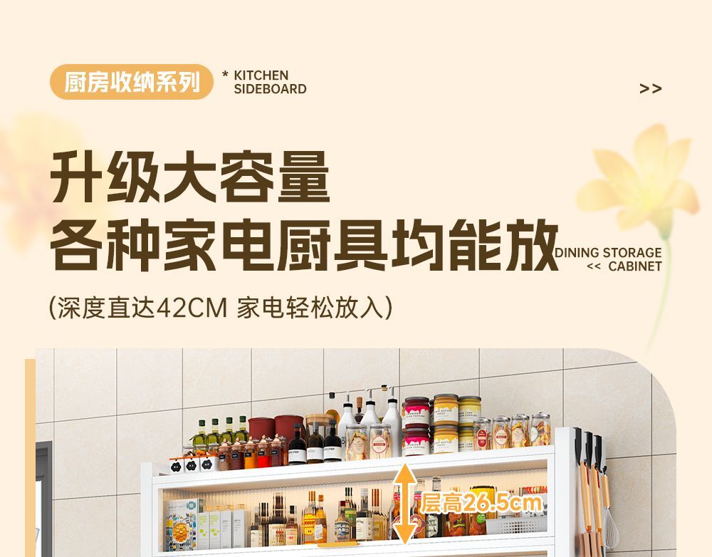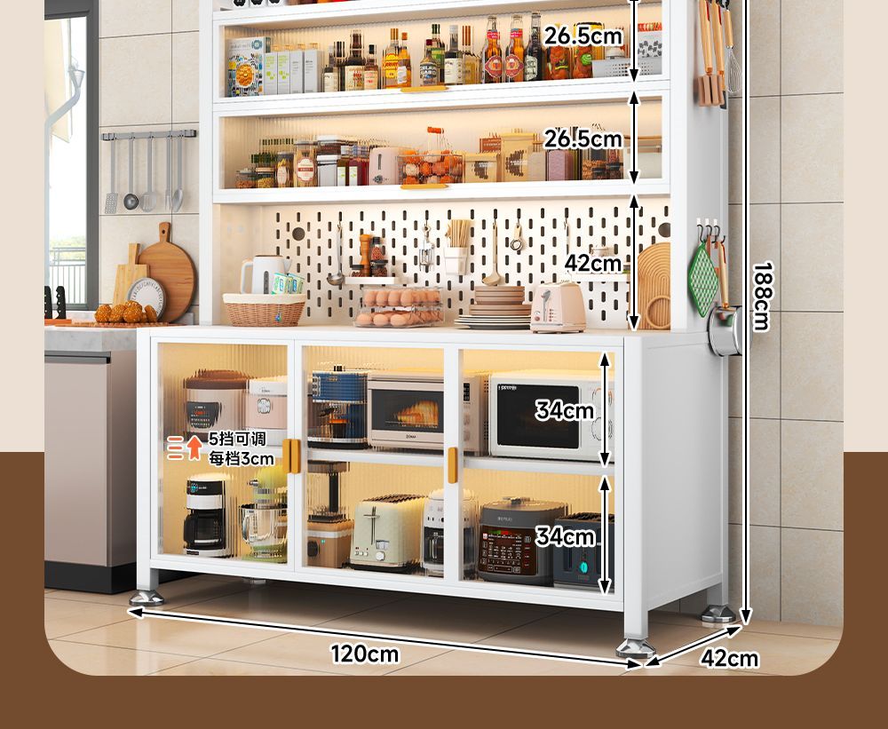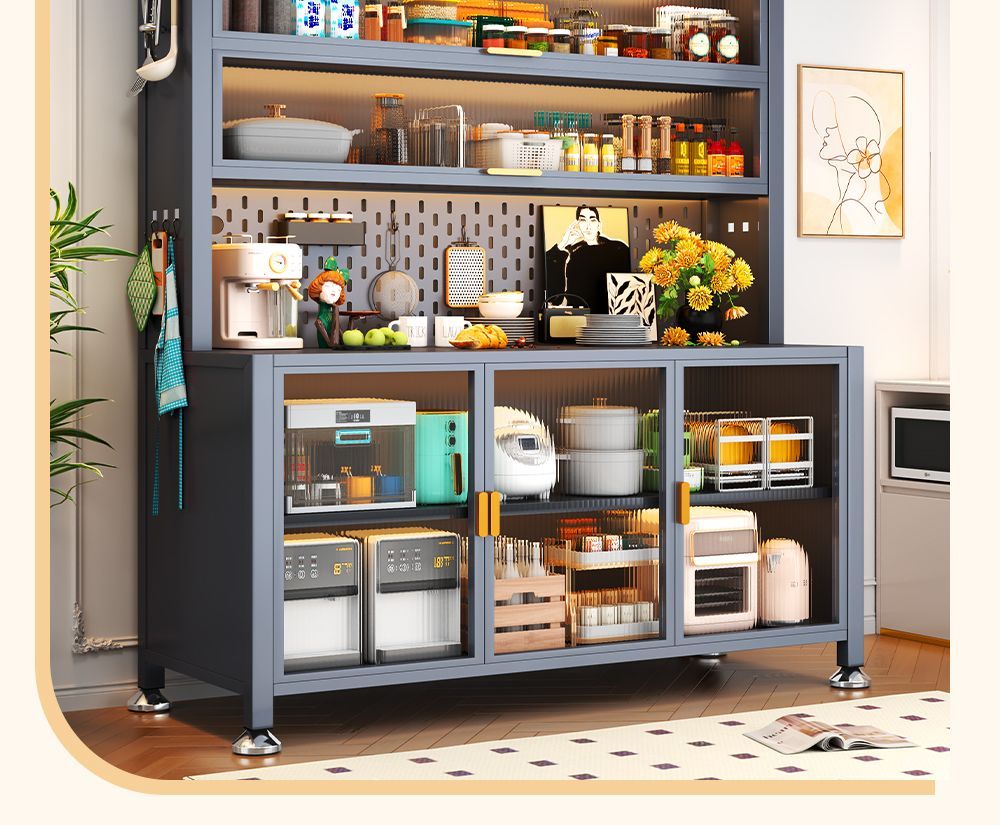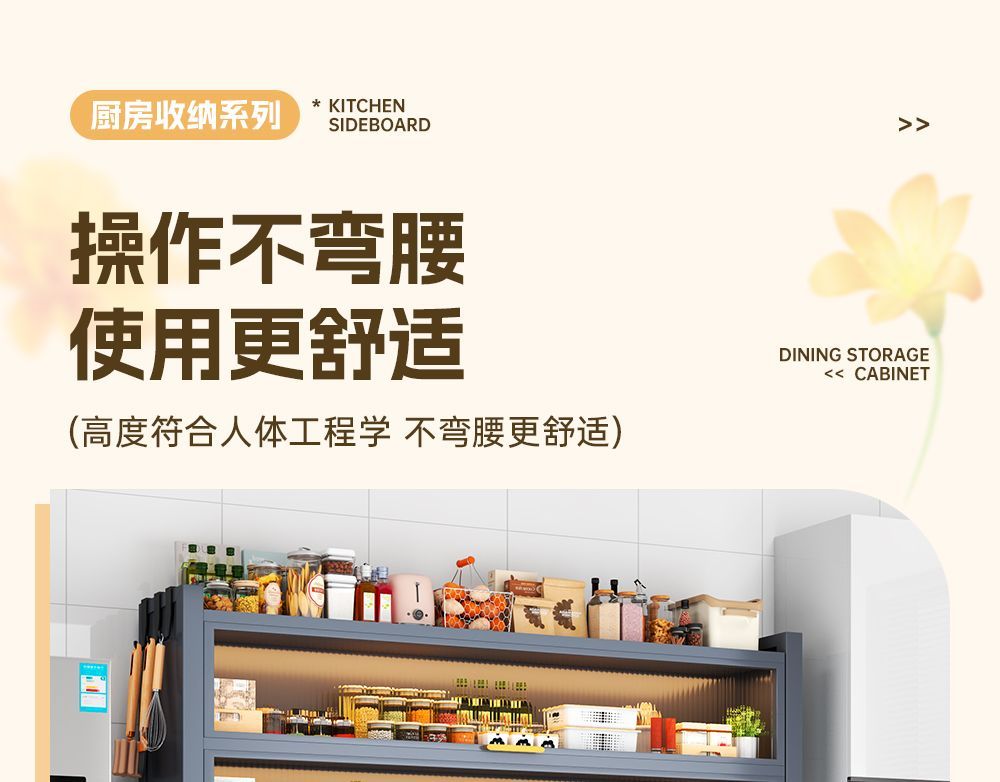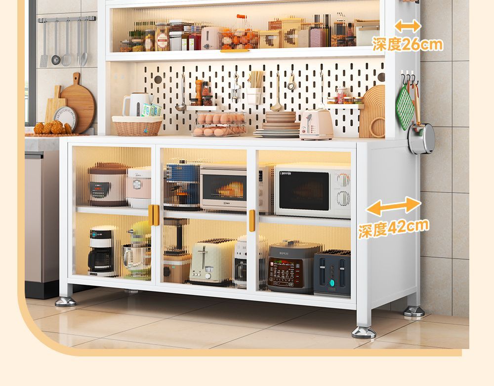 厨房多层餐边柜落地多功能置物架微波炉烤箱钢制收纳柜家用储物柜