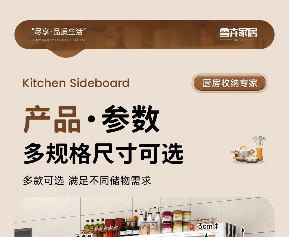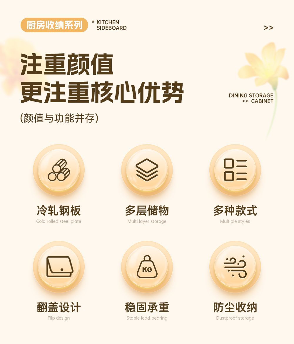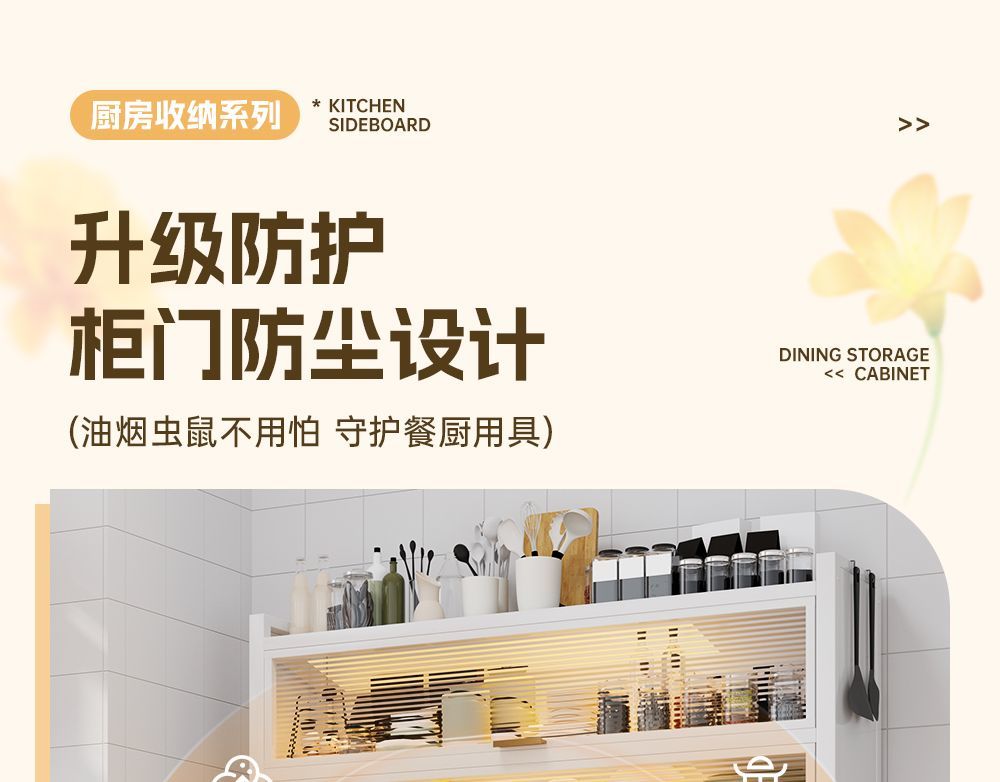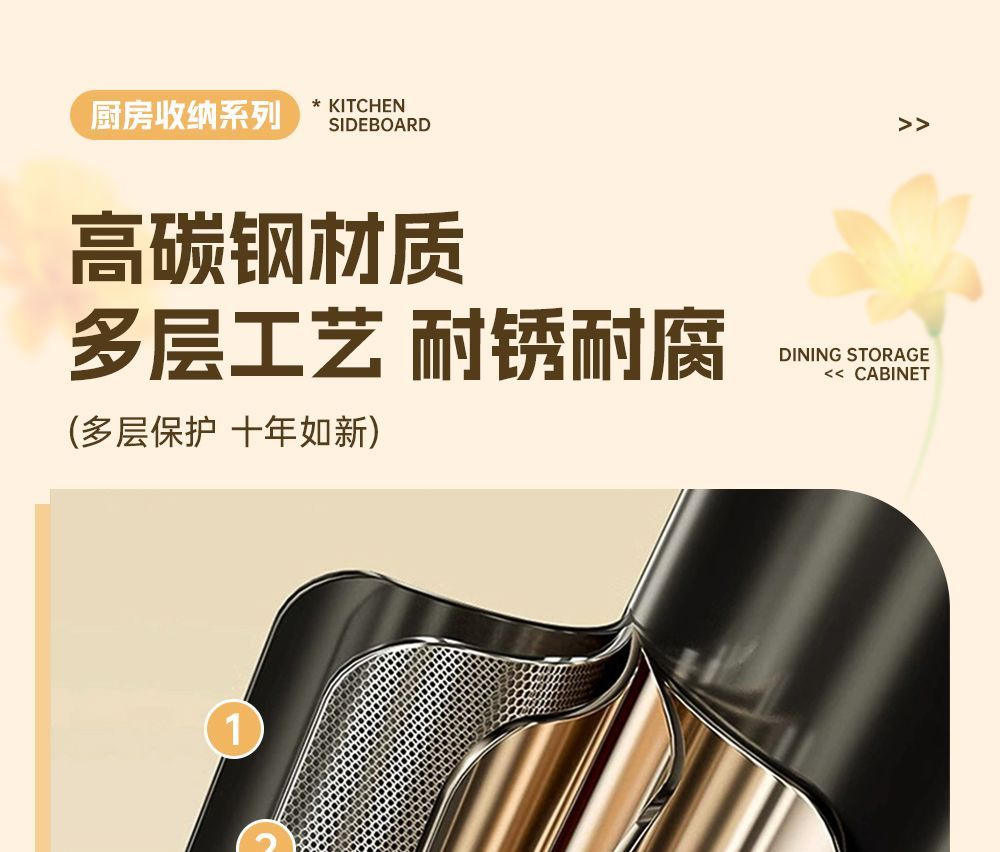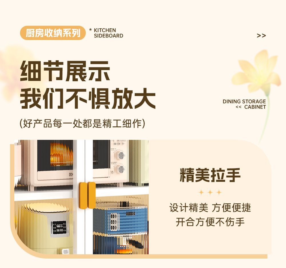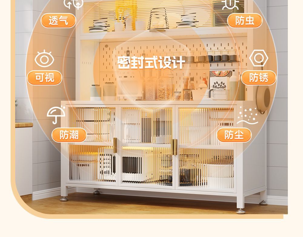 厨房多层餐边柜落地多功能置物架微波炉烤箱钢制收纳柜家用储物柜