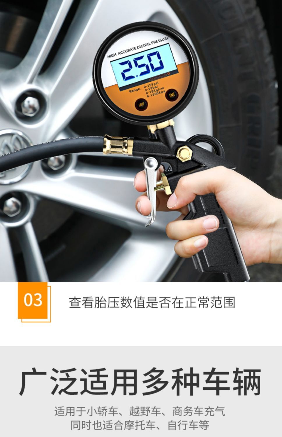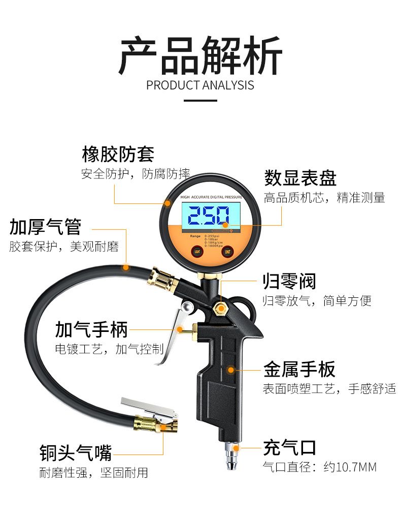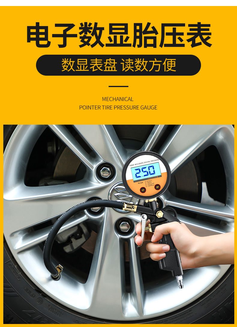 胎压表气压表高精度带充气头汽车轮胎测压监测器数显加气表打气枪