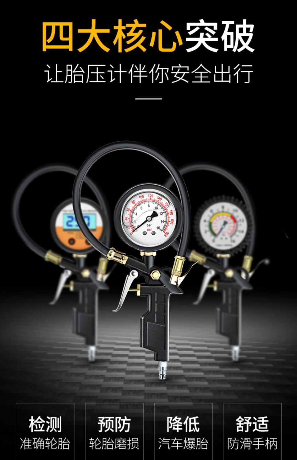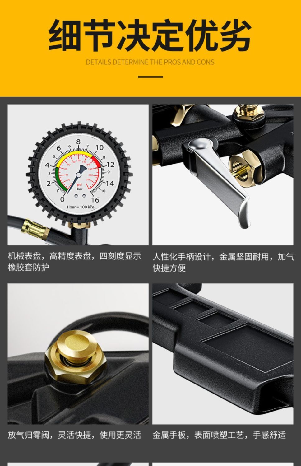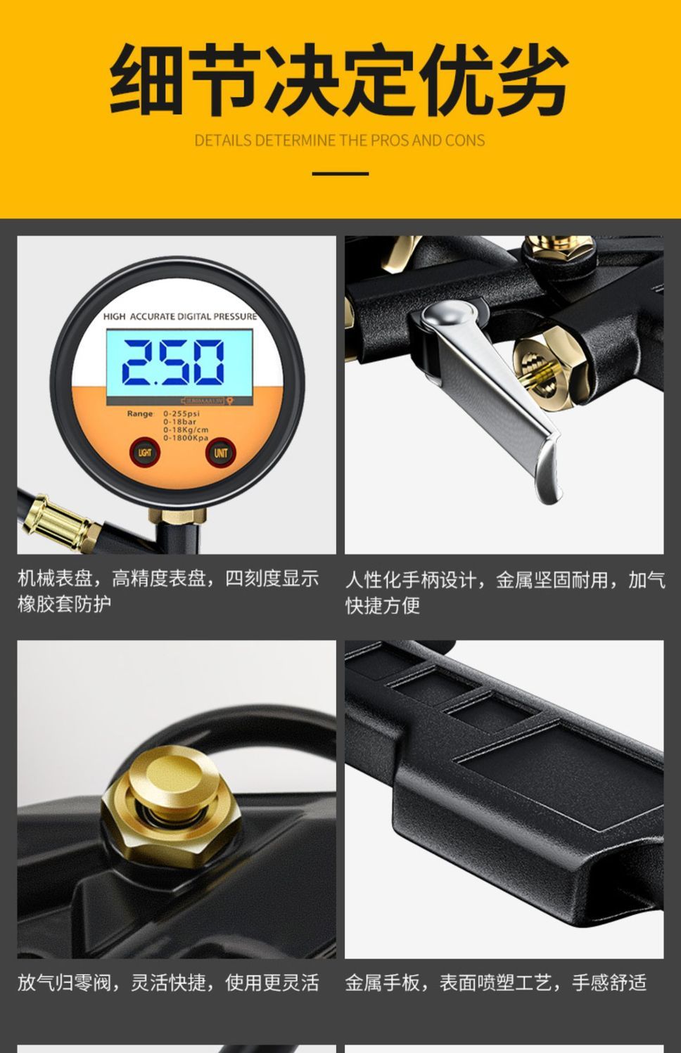 胎压表气压表高精度带充气头汽车轮胎测压监测器数显加气表打气枪