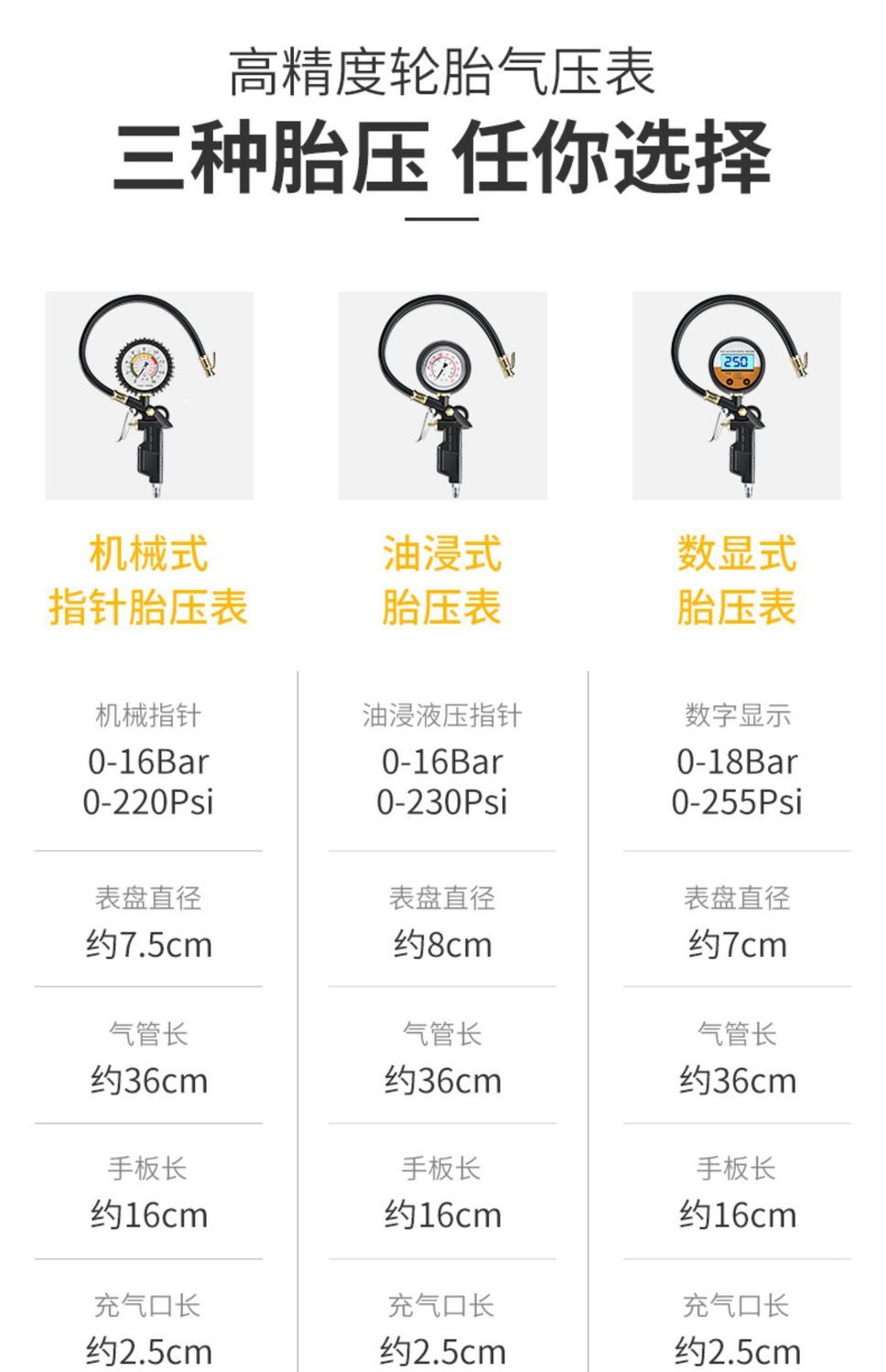| pure copper movement tire pressure gauge [oil immersed model] one-year warranty(纯铜机芯胎压表【油浸款】质保一年) | USD $14.85 | 999999 piece available |