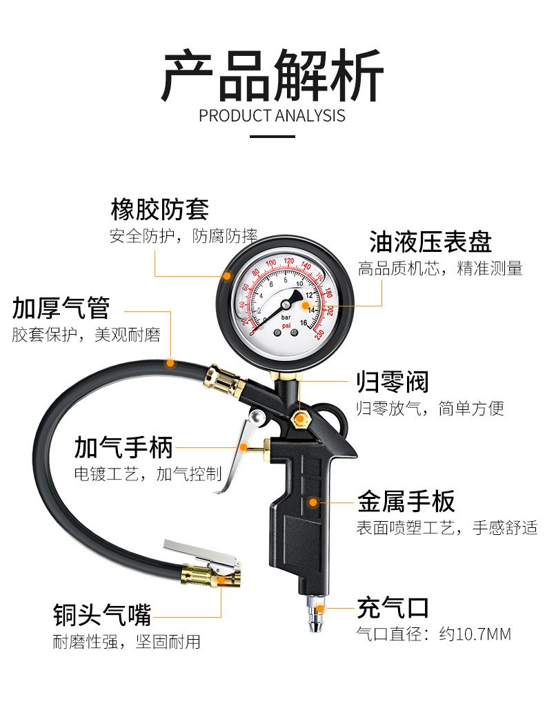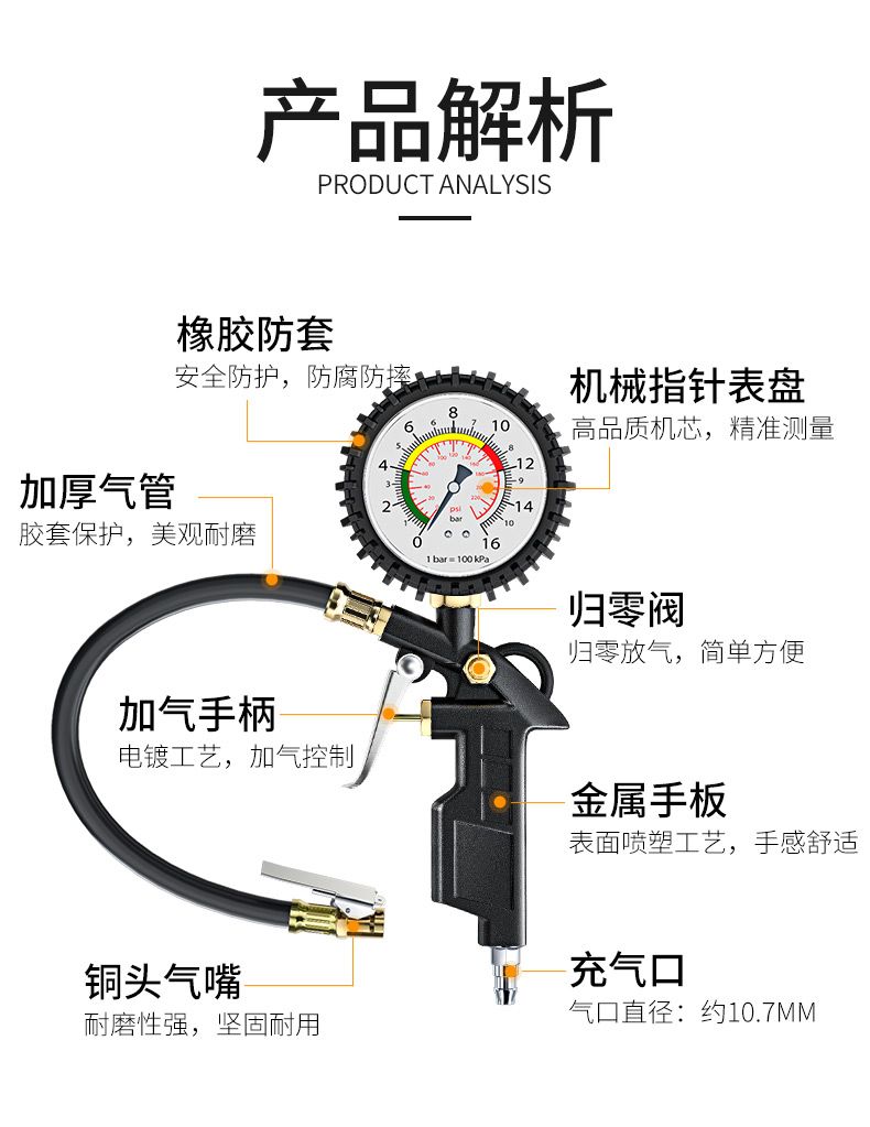| pure copper movement tire pressure gauge [pointer type] one-year warranty(纯铜机芯胎压表【指针款】质保一年) | USD $10.51 | 999999 piece available |