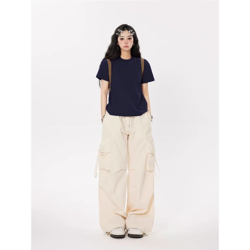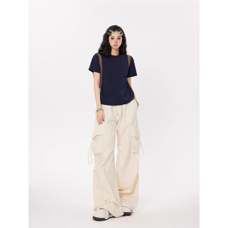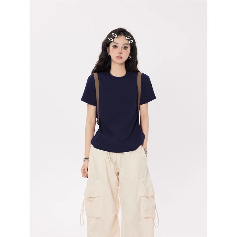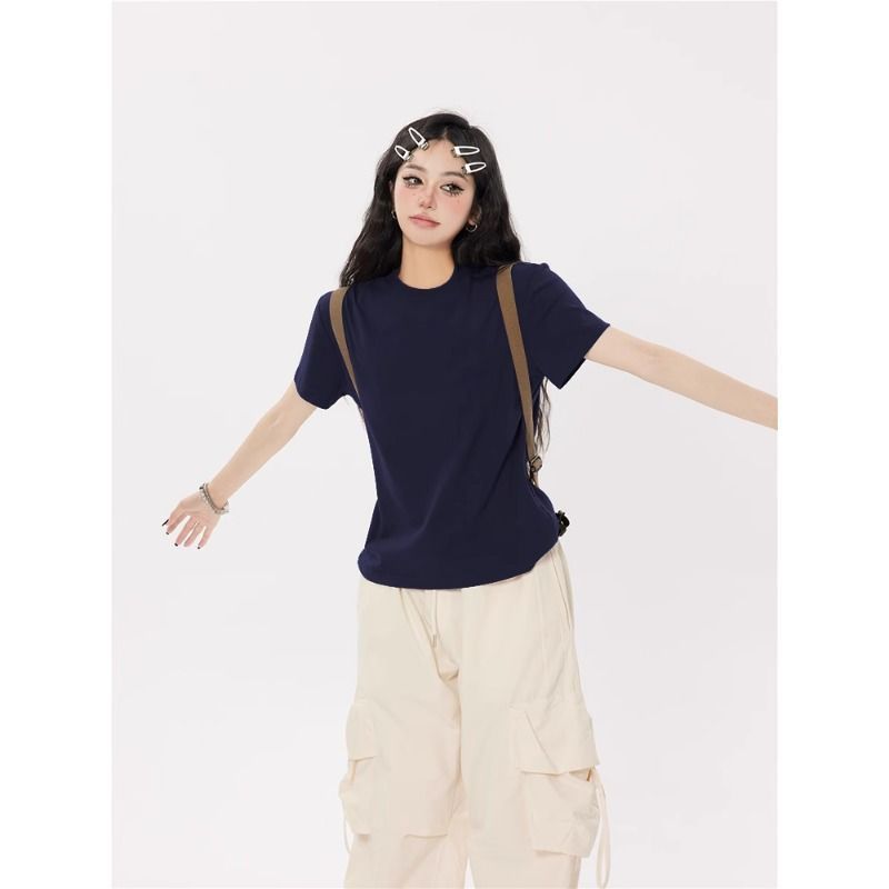 纯棉短袖正肩T恤夏季新款圆领藏青色修身显瘦外穿爆款上衣潮流ins