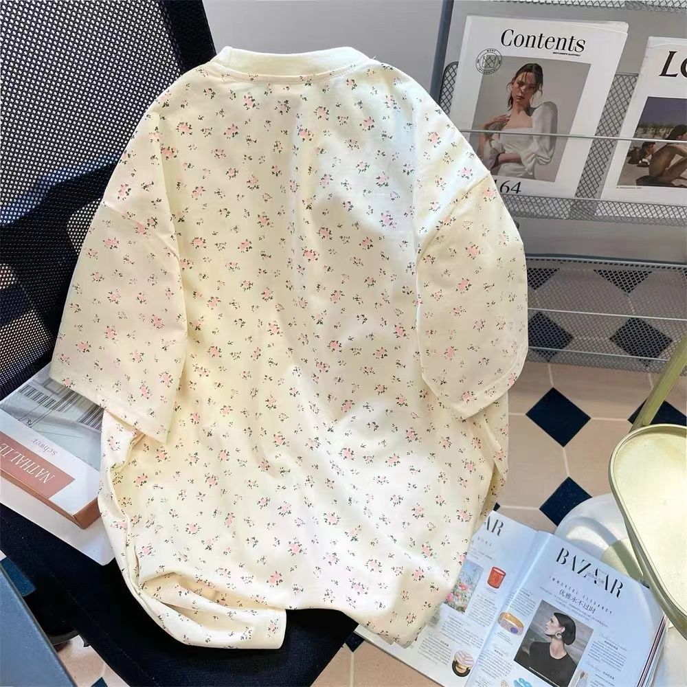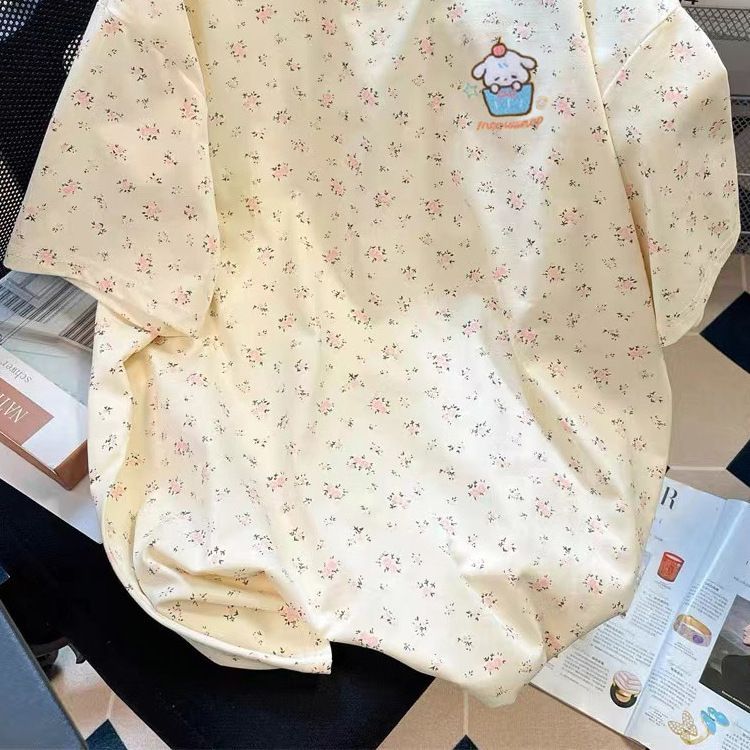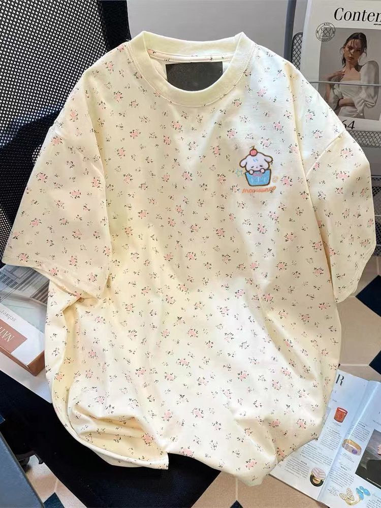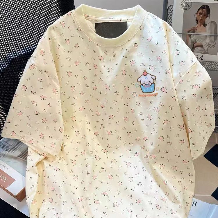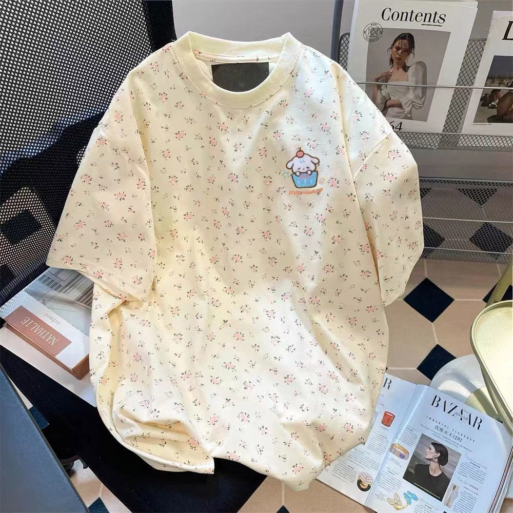 印花小狗宽松T恤女夏季小碎花甜妹休闲韩系可爱印花小众短袖上衣