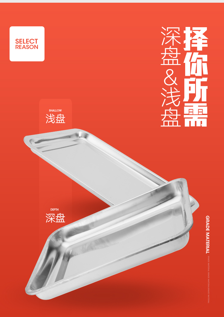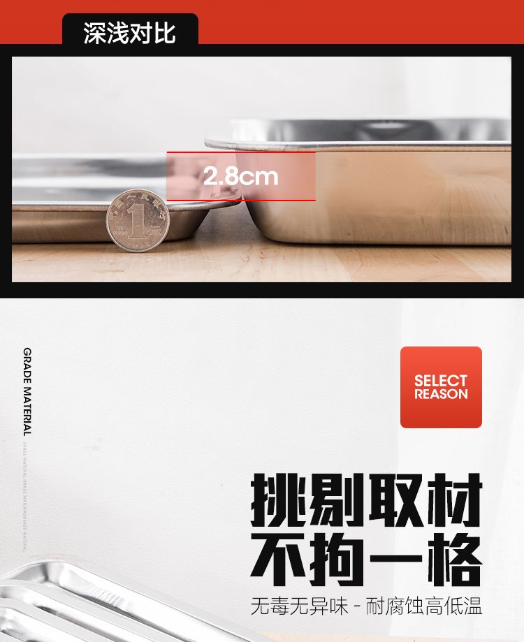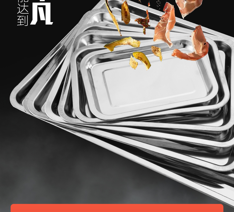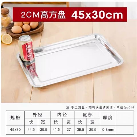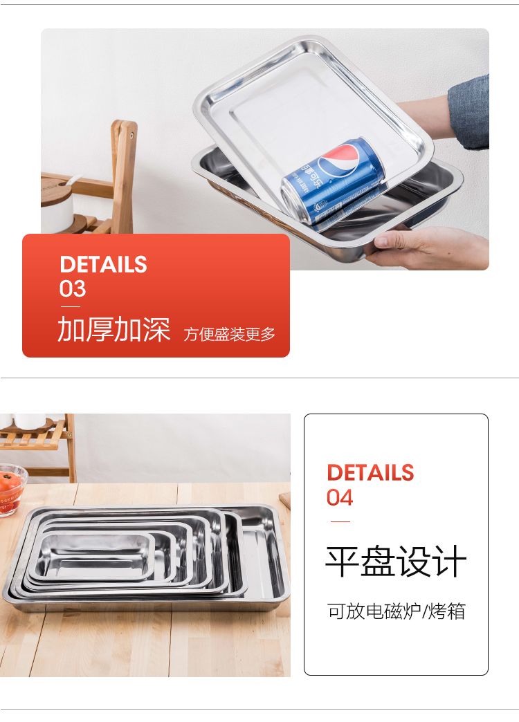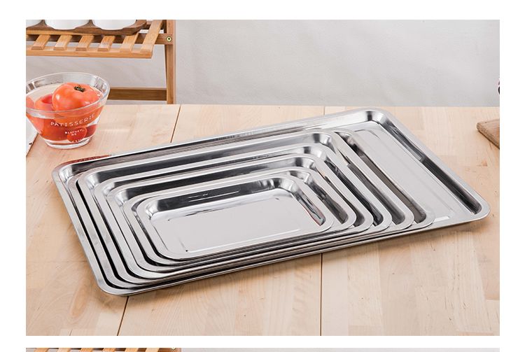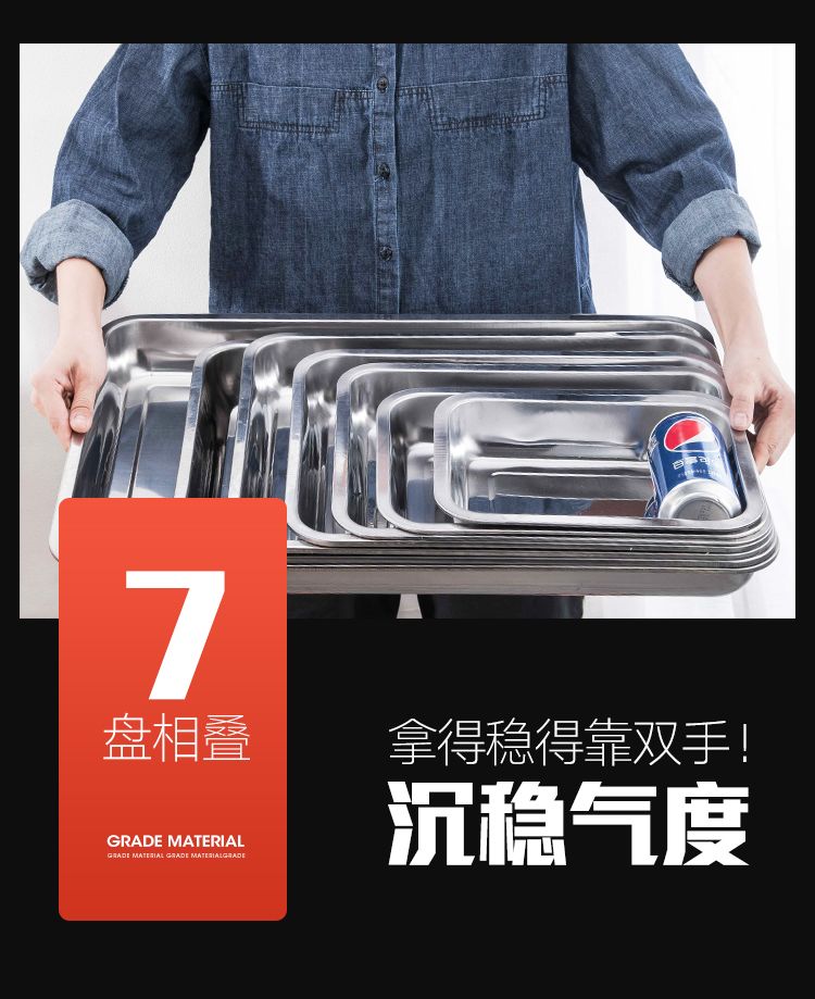 加厚不锈钢大方盘托盘菜餐盘烧烤盘蒸饭盘加大盘子长方形铁盘