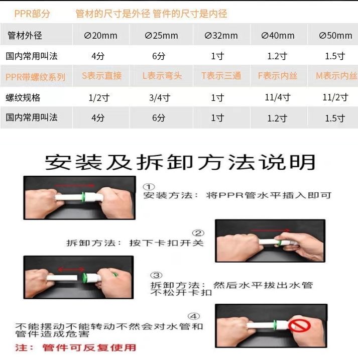 PPR免热熔快速接头4分6分1寸变径直插快接球阀PPR免热熔水管配件