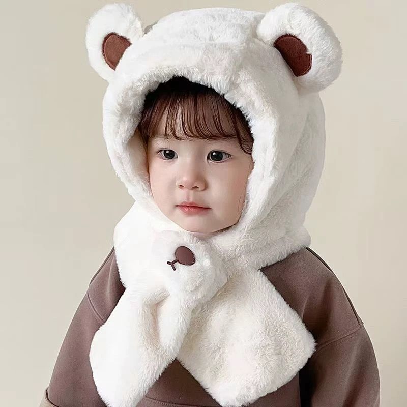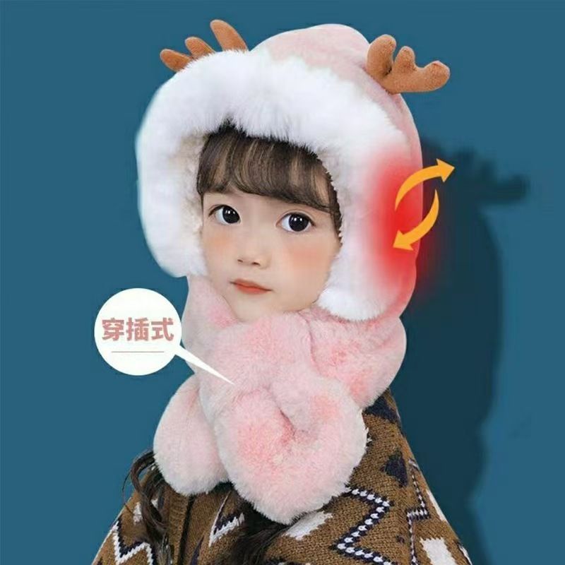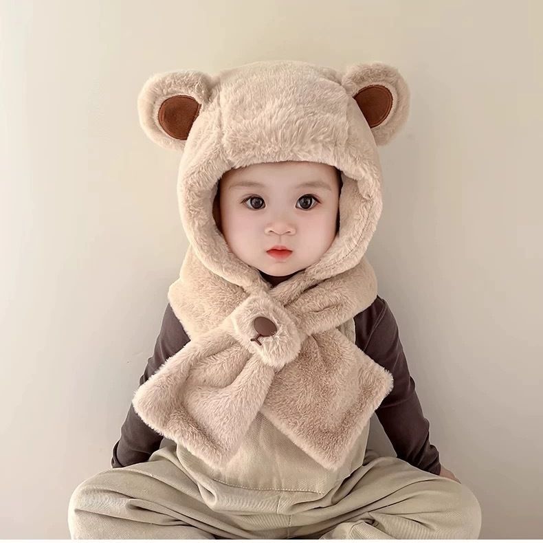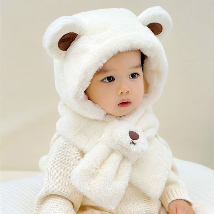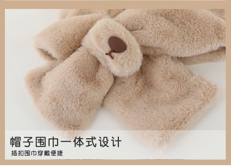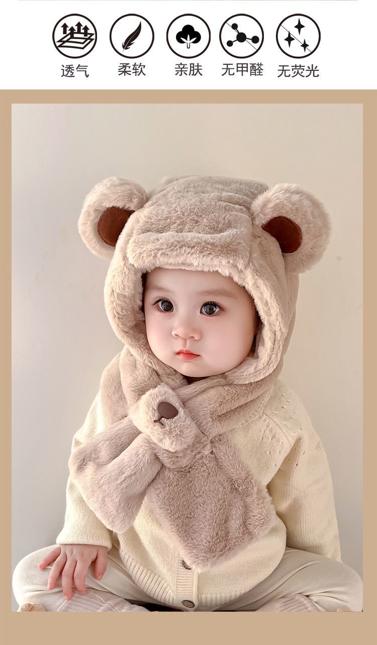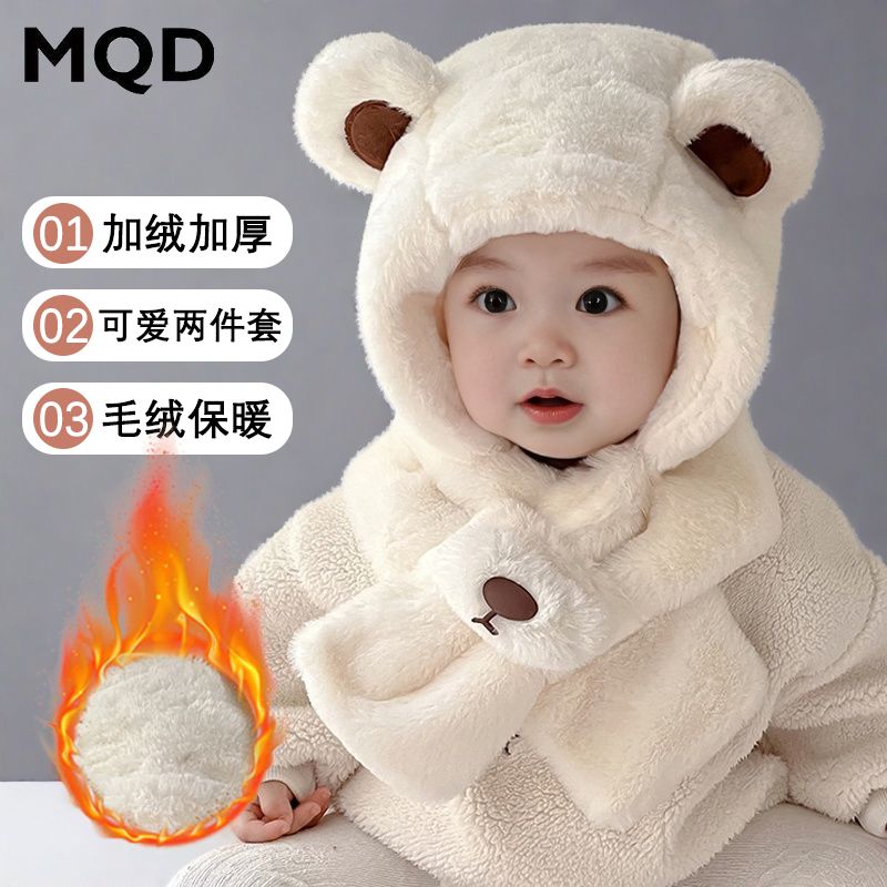 MQDMINI儿童秋冬帽子围巾一体宝宝护耳可爱两件套超萌男女童保暖