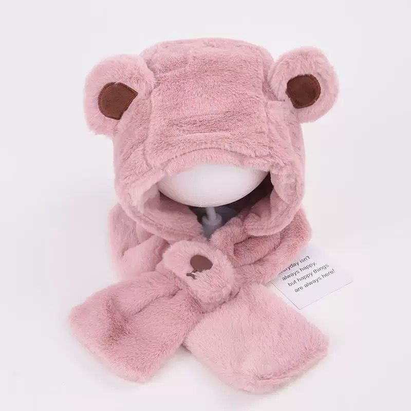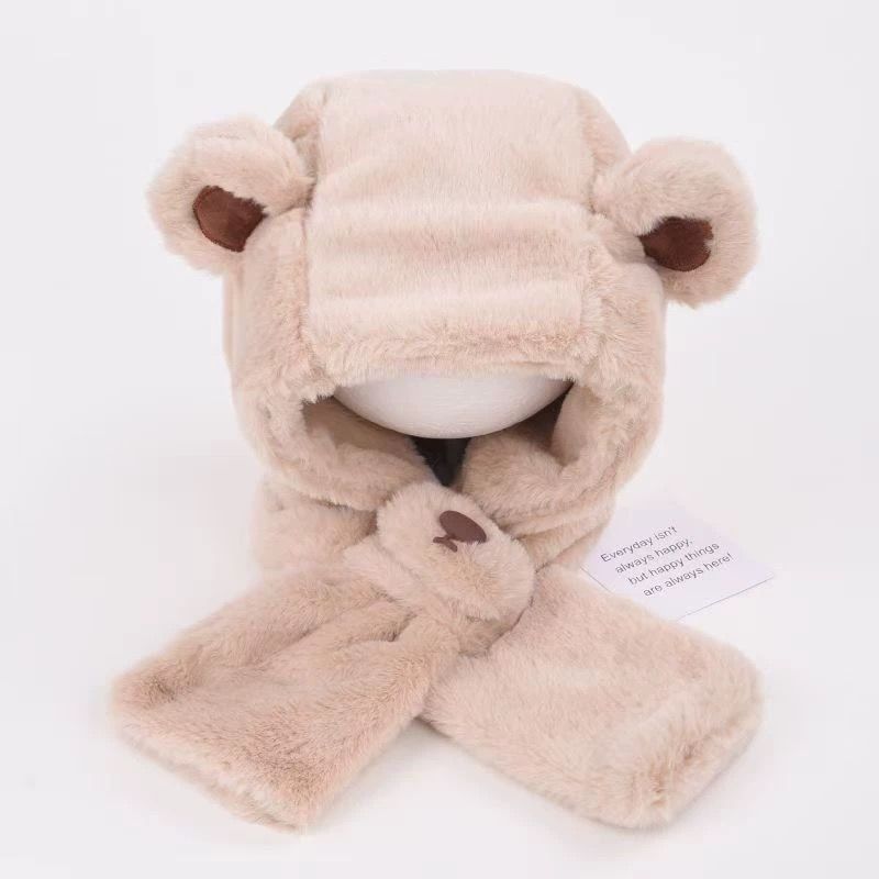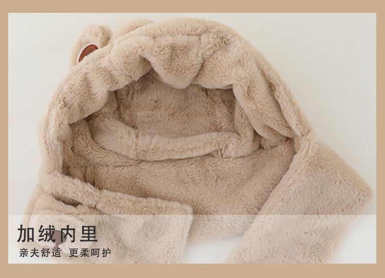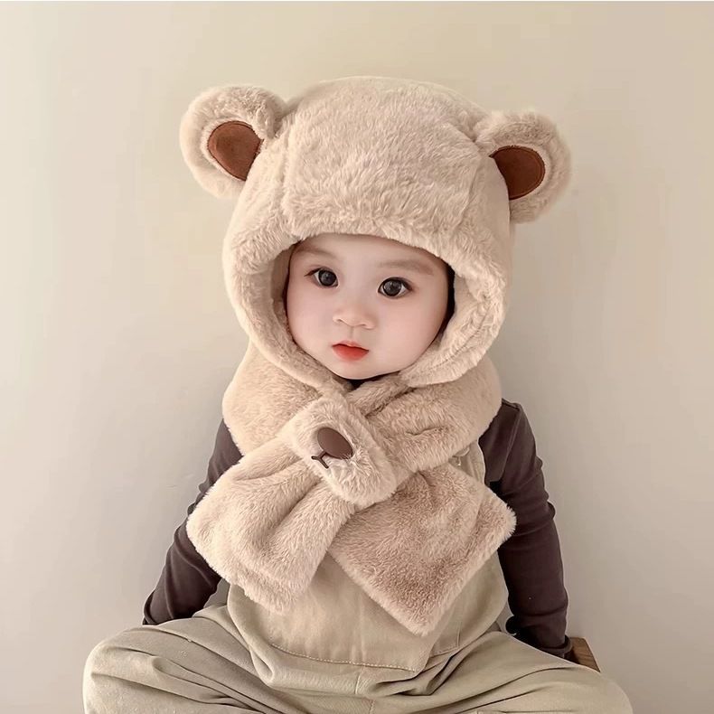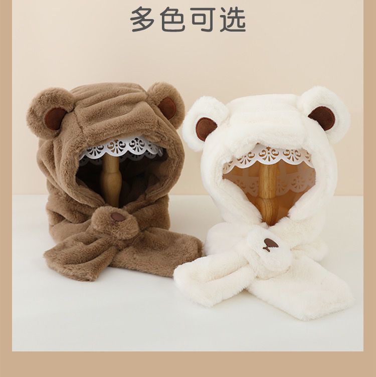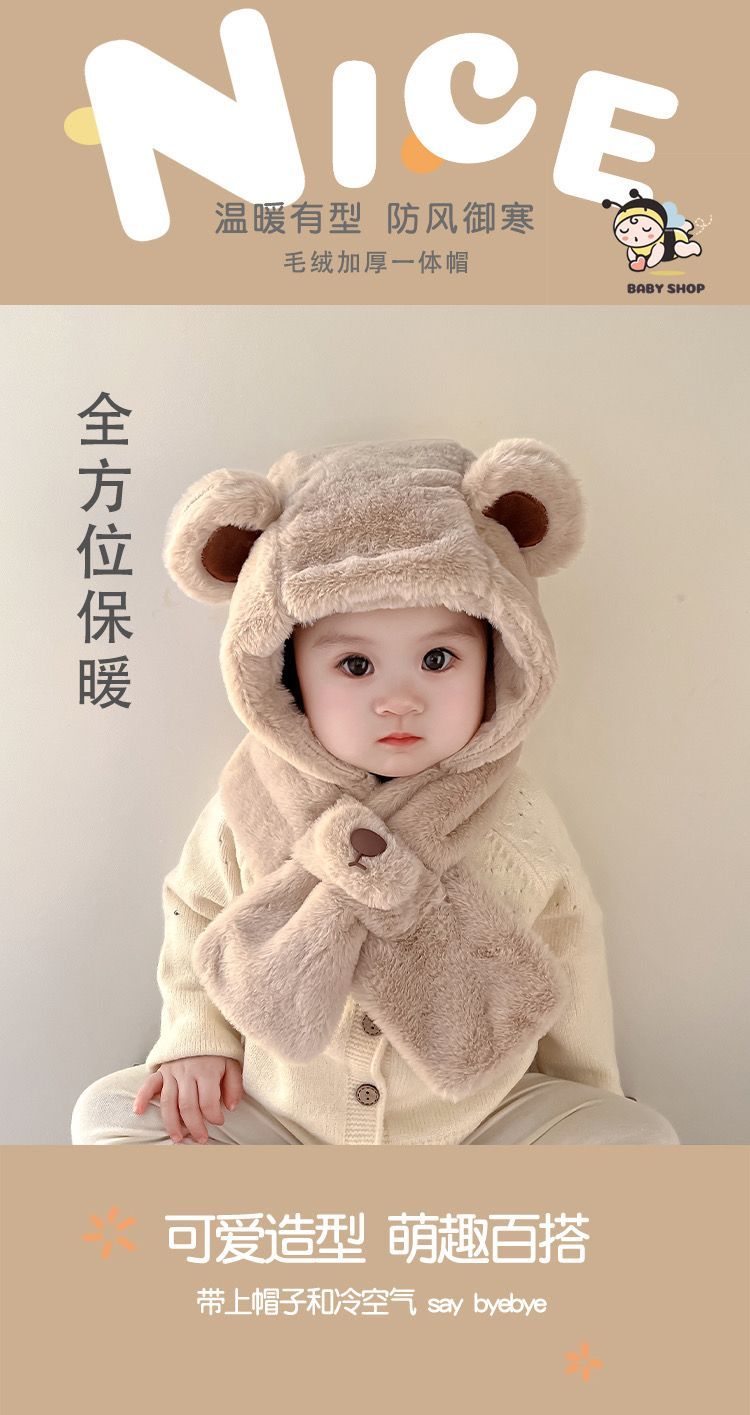 MQDMINI儿童秋冬帽子围巾一体宝宝护耳可爱两件套超萌男女童保暖