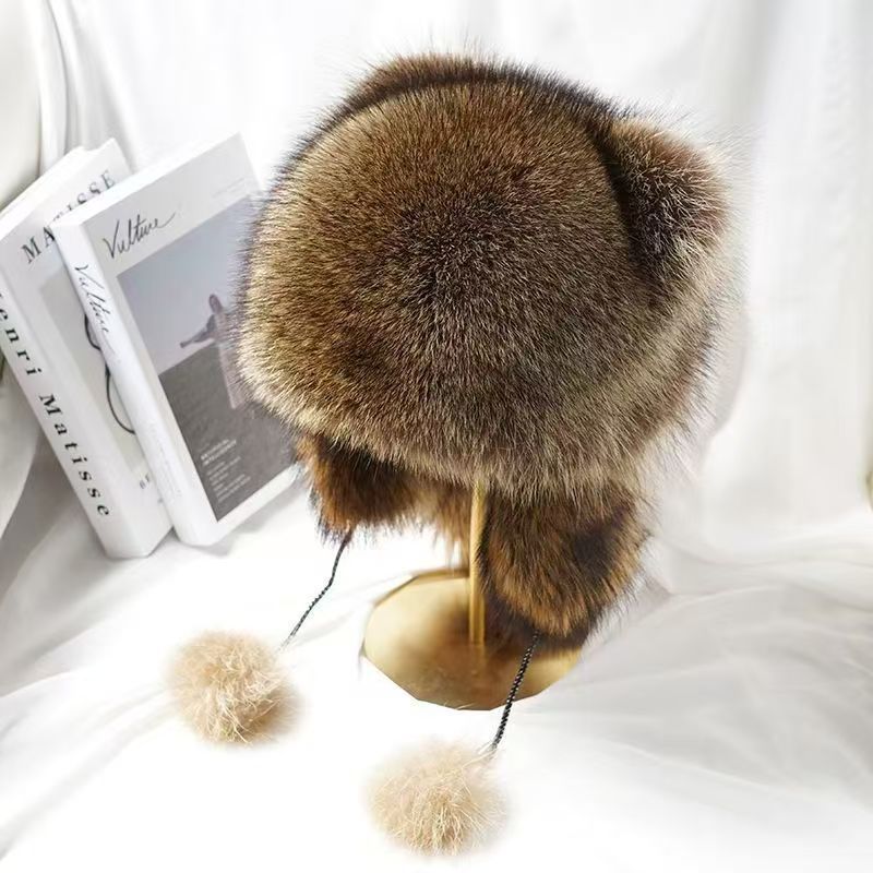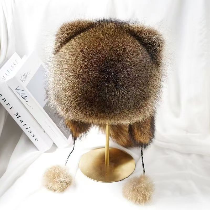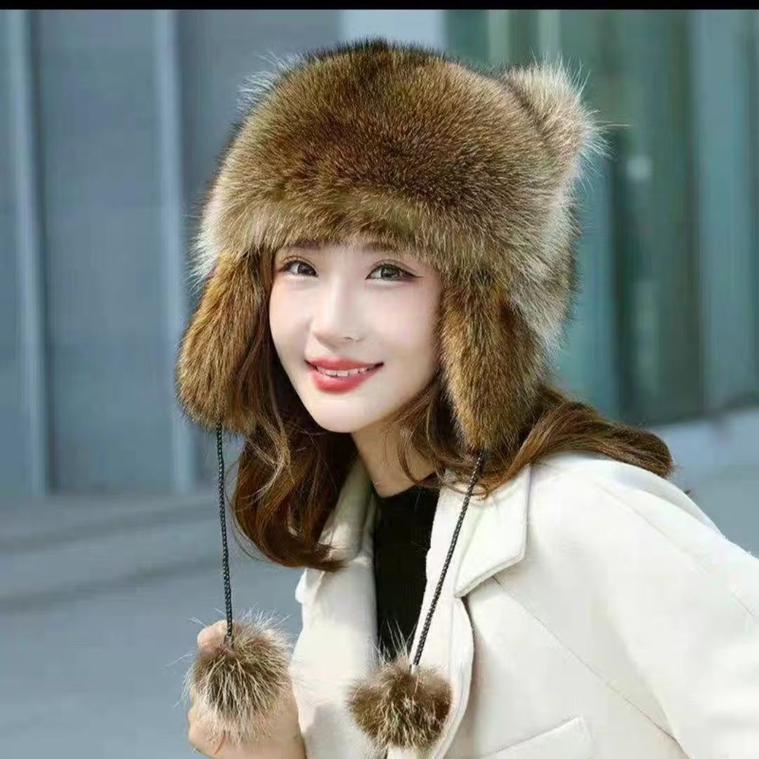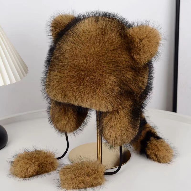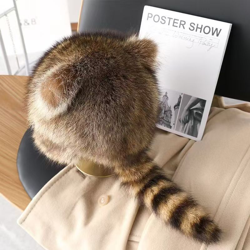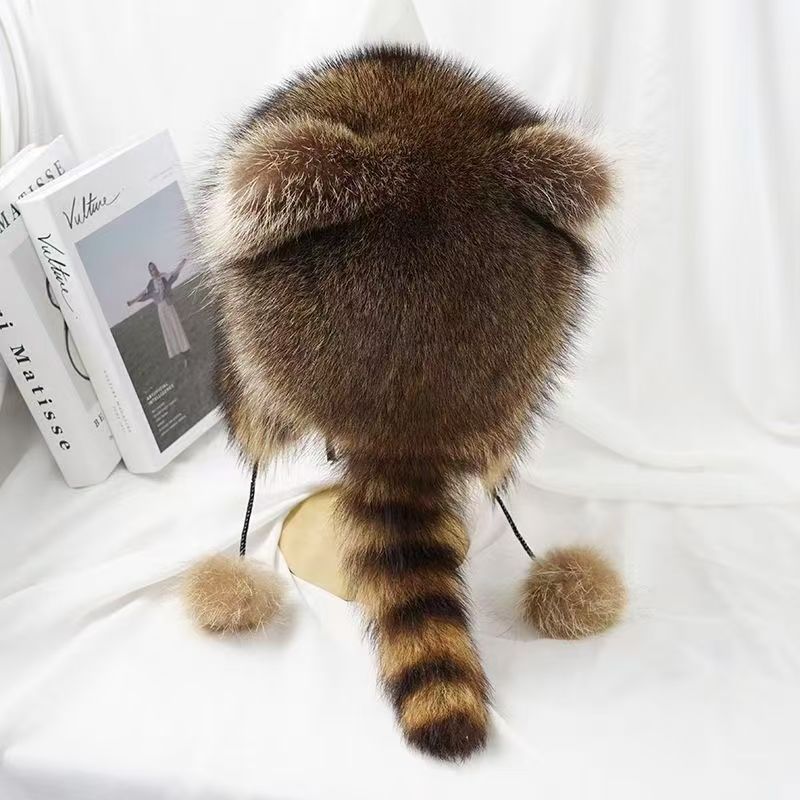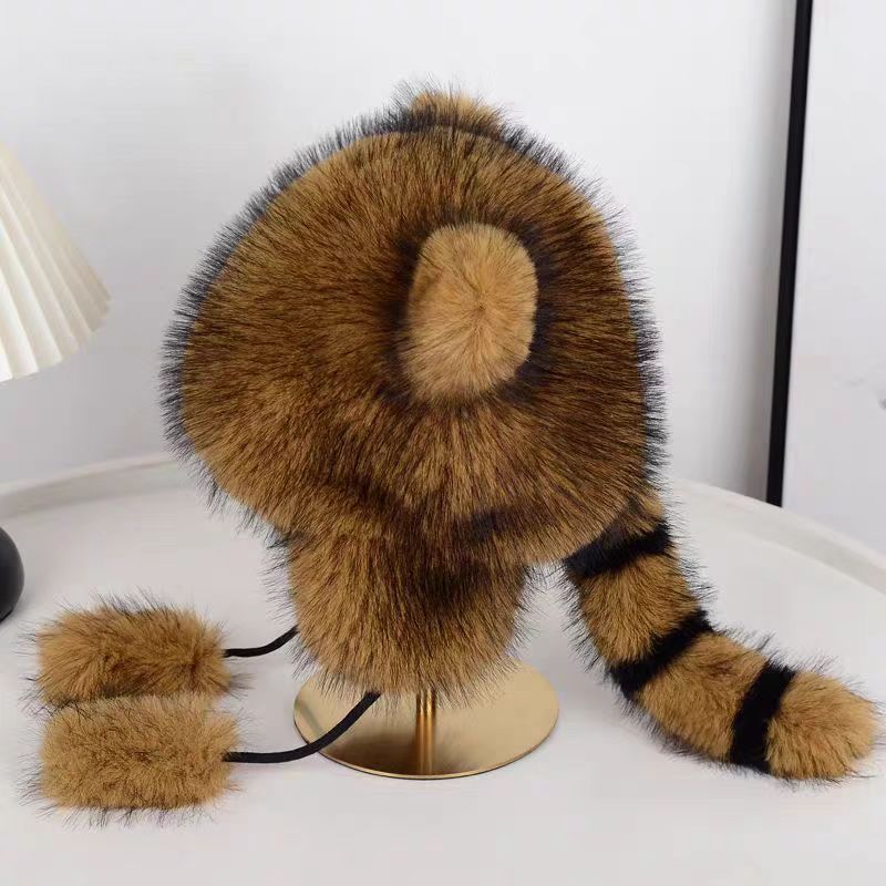 冬季保暖小浣熊帽子美洲仿貉小猫帽儿童亲子男女帽子护耳毛毛狸猫