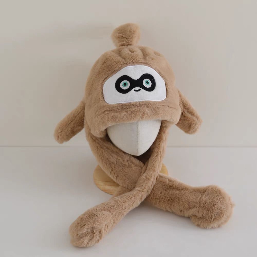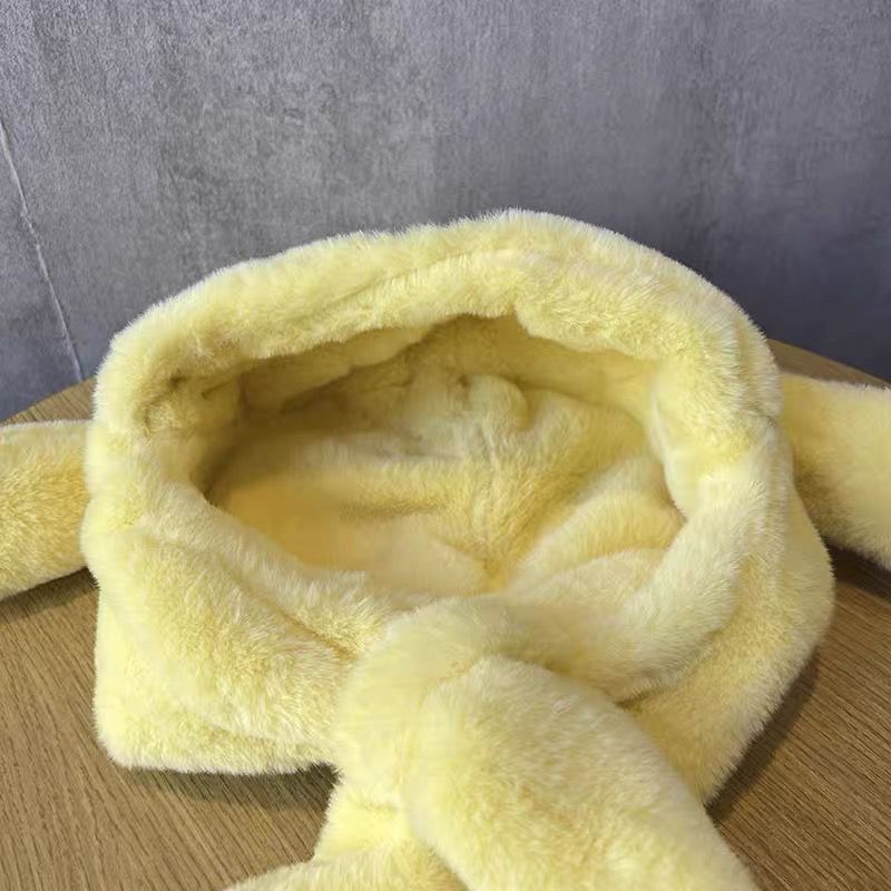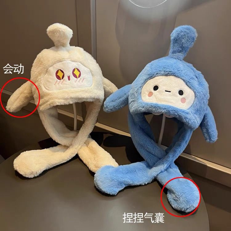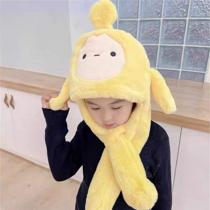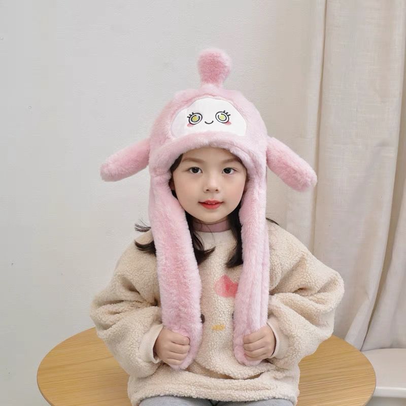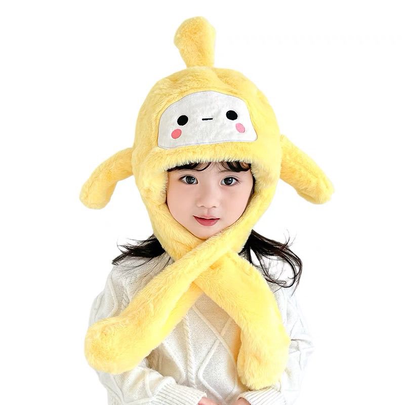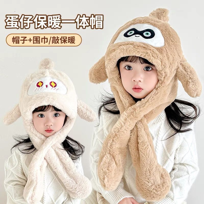 韩国耳朵会动毛绒儿童二合一帽子围巾一体加绒加厚宝宝卡通护耳帽