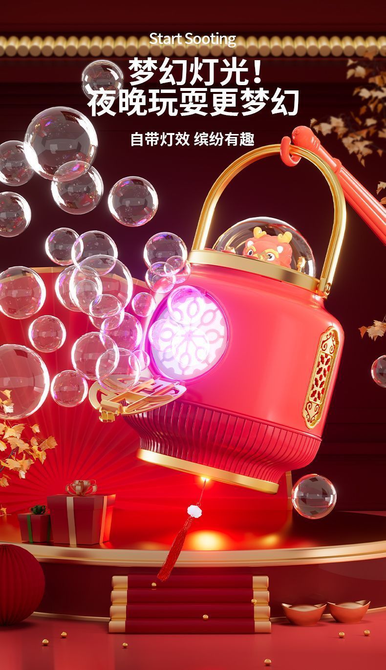 皇恩蛇年新款自动手提灯笼灯儿童泡泡发光灯笼过家家仿真灯笼玩具