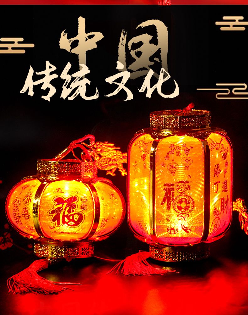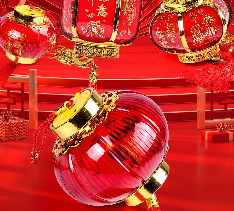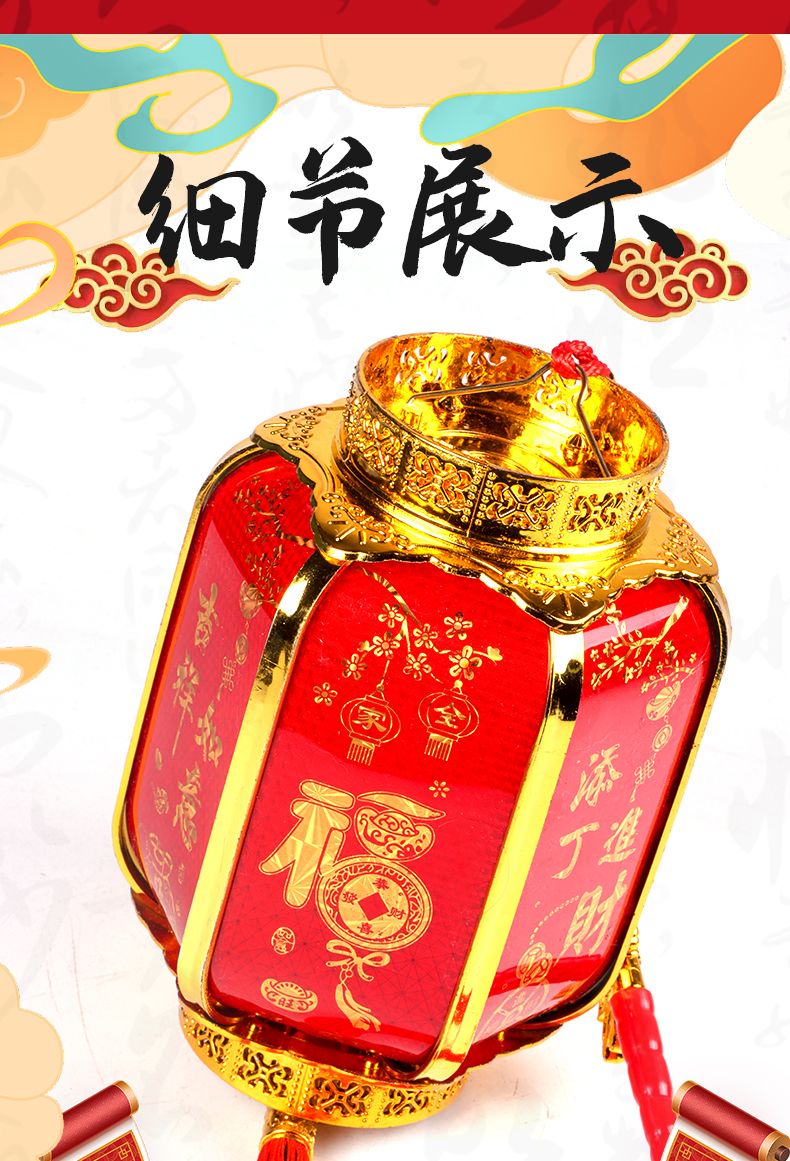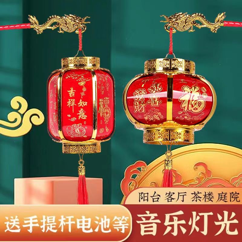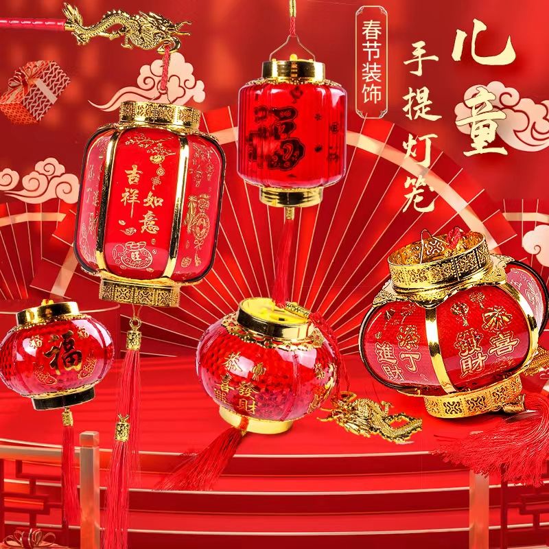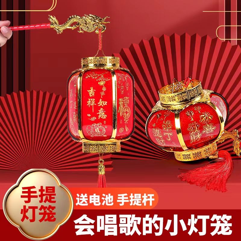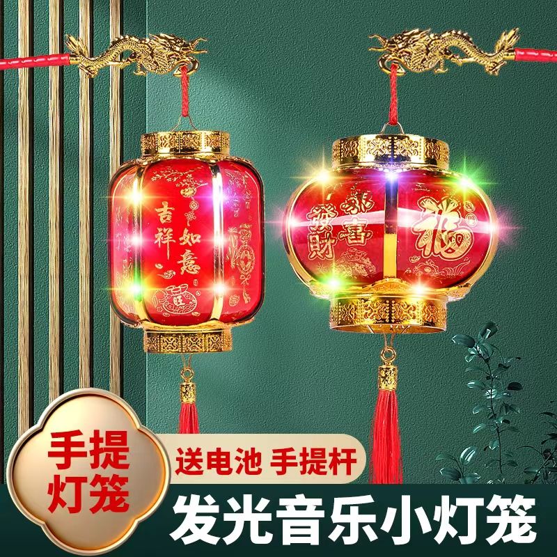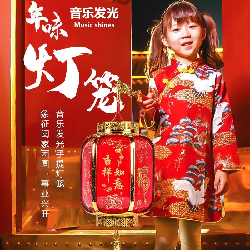 新年儿童手持小灯笼春节新款手提发光音乐复古烫金灯笼灯饰挂件