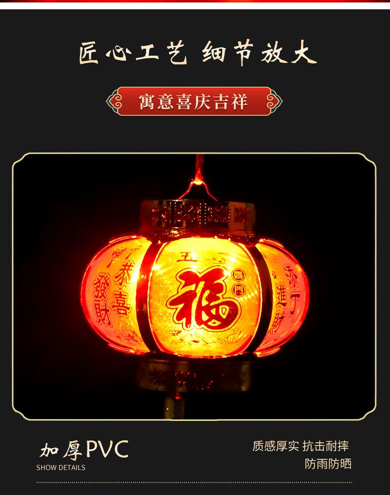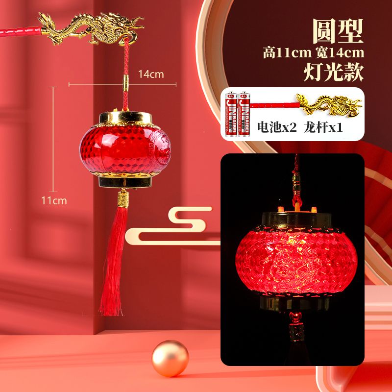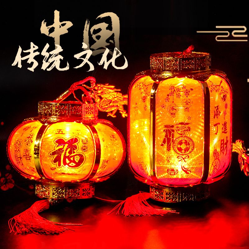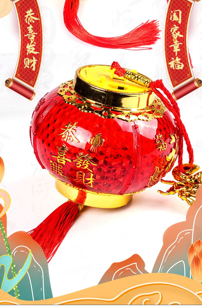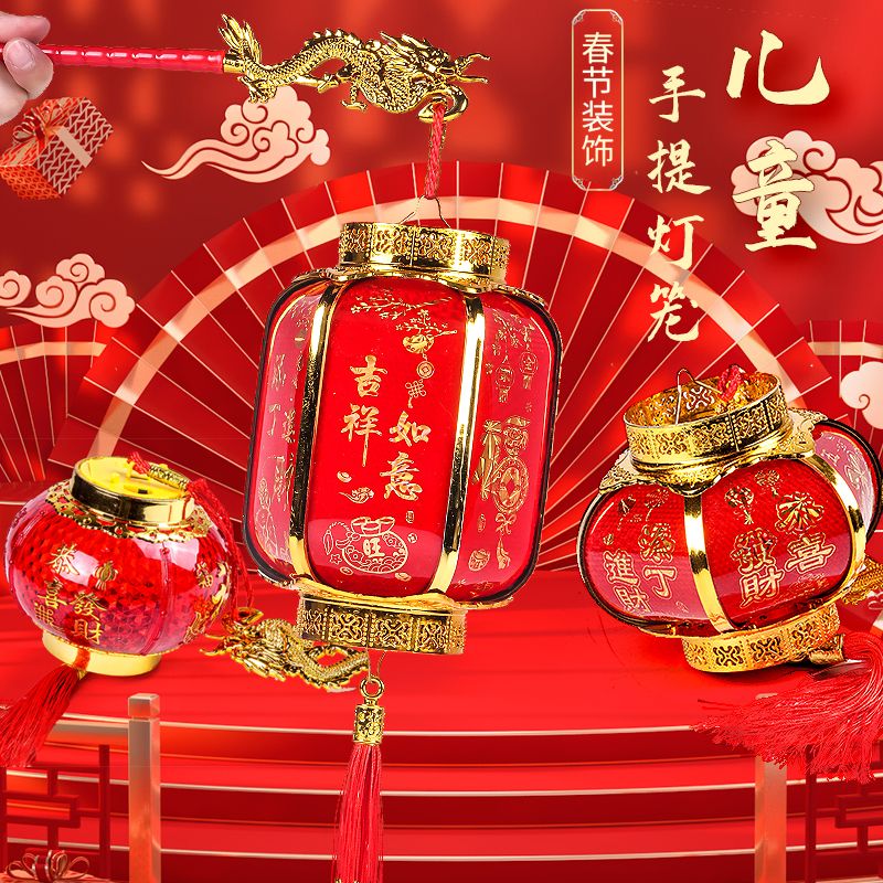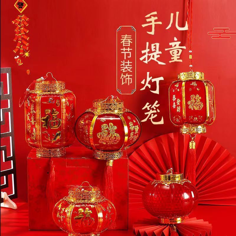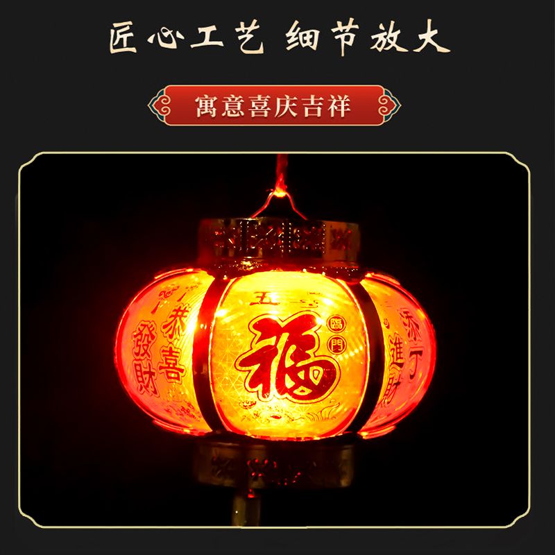 新年儿童手提发光小灯笼复古烫金福字灯笼元旦元宵灯饰传统挂件