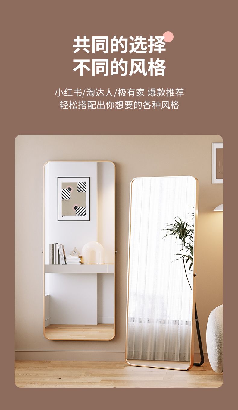 全身镜落地家用女生卧室少女网红ins风大镜子挂墙壁挂试衣穿衣镜