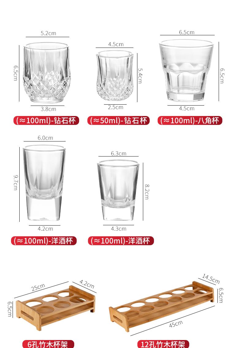 | [100ml] 100.00g star diamond cup * 6 + cup holder(【100ml】二两星钻杯*6只+杯架) | USD $7.67 | 999999 piece available |