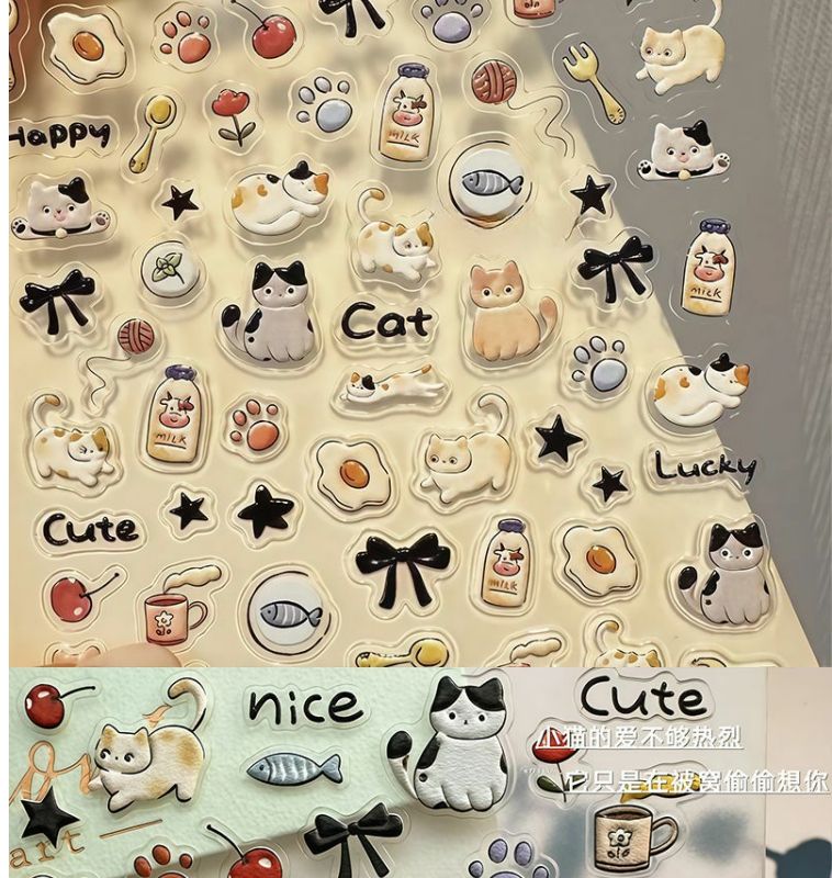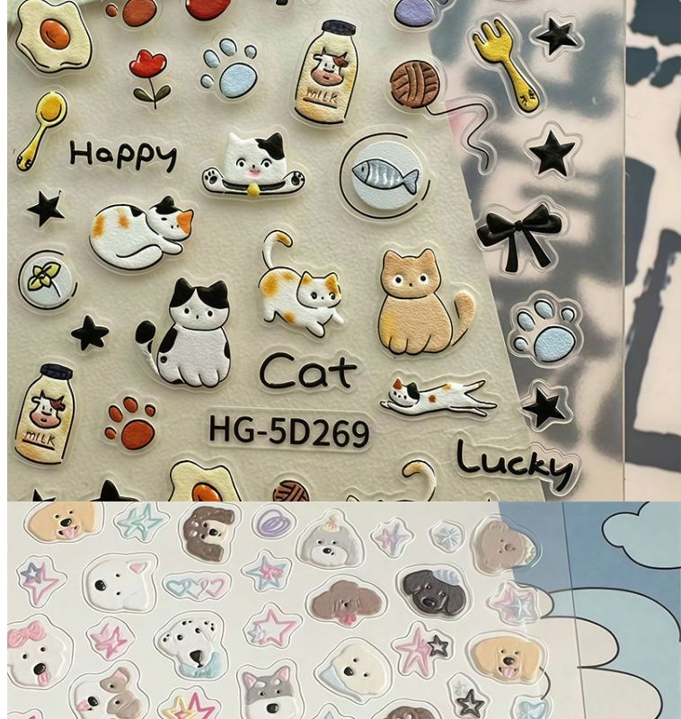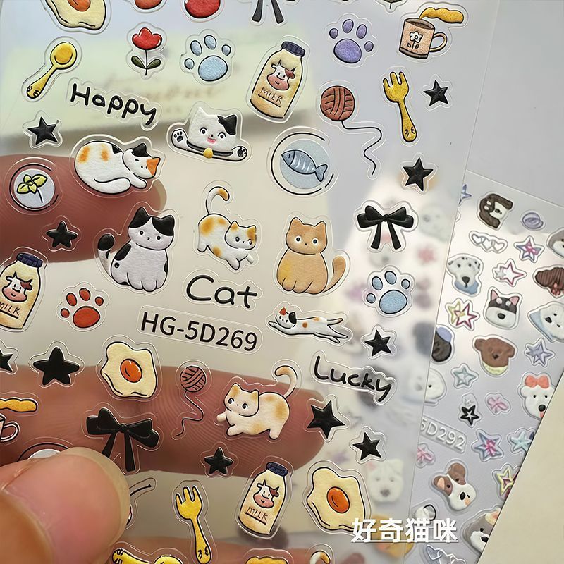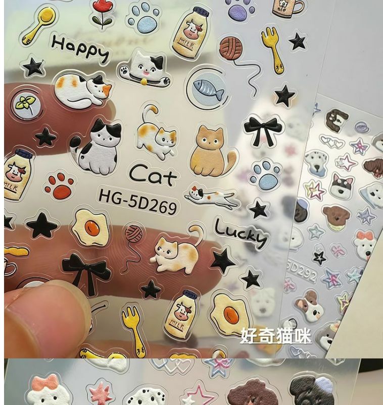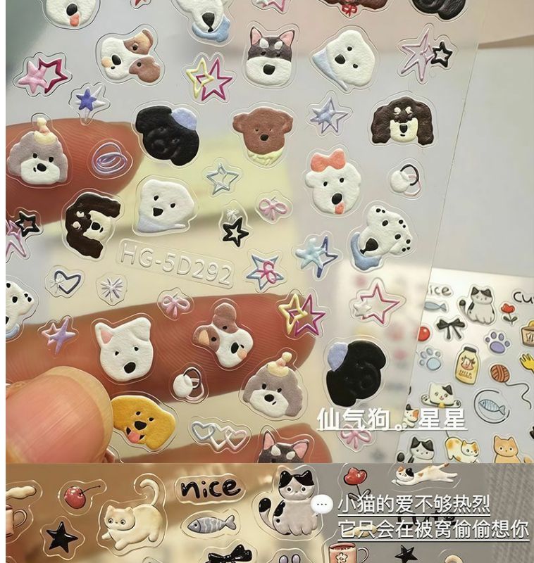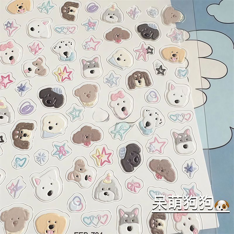 浮雕立体美甲贴纸ins爱心呆萌狗狗可爱猫咪图案指甲diy日系卡通3d
