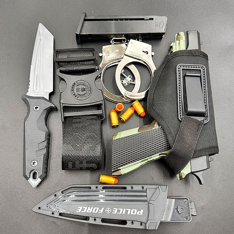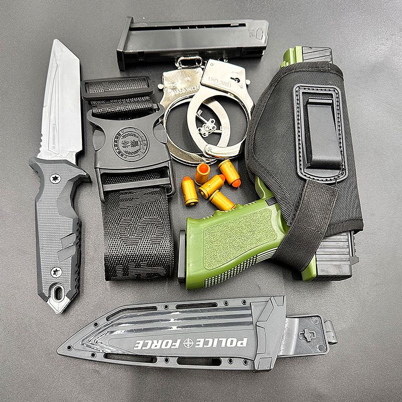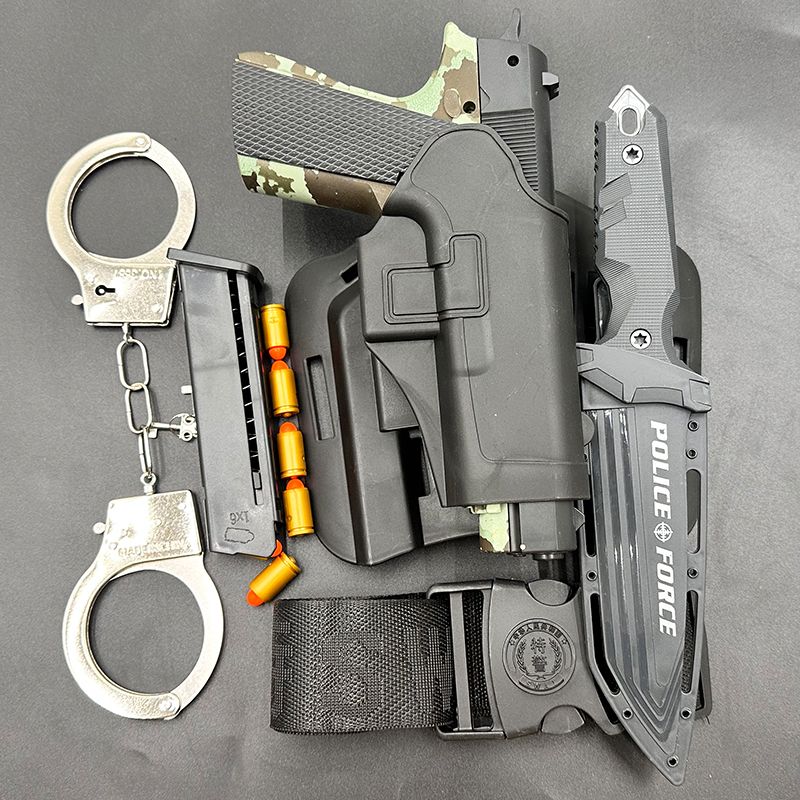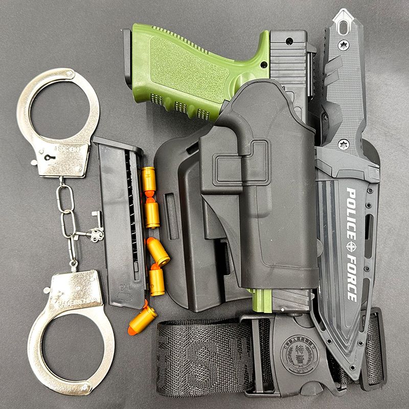 | continuous hair army green pistol + belt + holster + iron cuff(连发军绿手枪+腰带+枪套+匕+铁铐) | USD $7.74 | 999999 piece available |