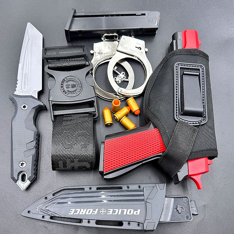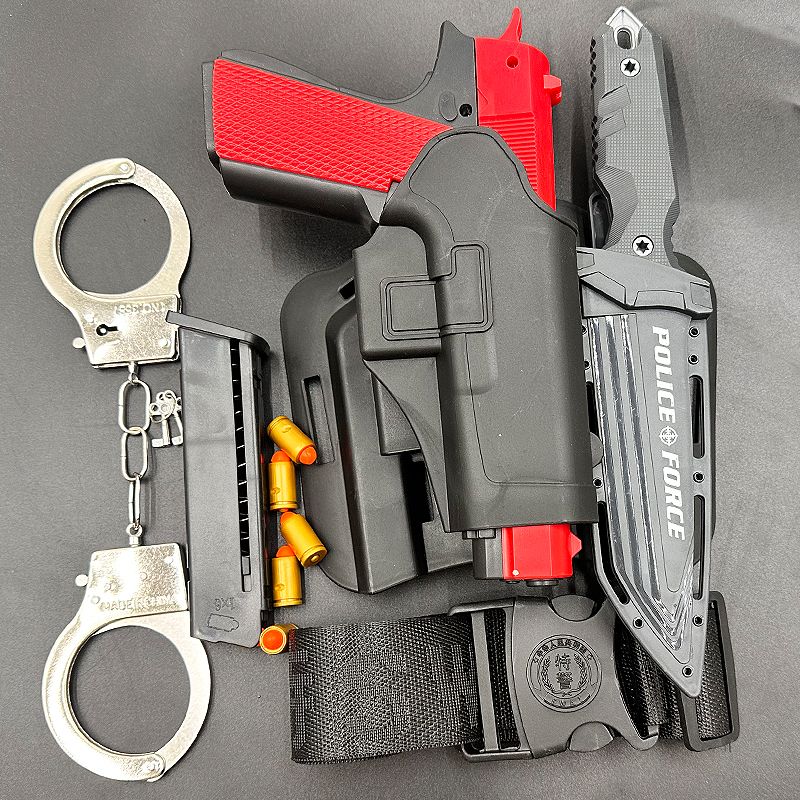 | continuous hair black and red pistol + belt + holster + iron cuff(连发黑红手枪+腰带+枪套+匕+铁铐) | USD $7.74 | 999999 piece available |